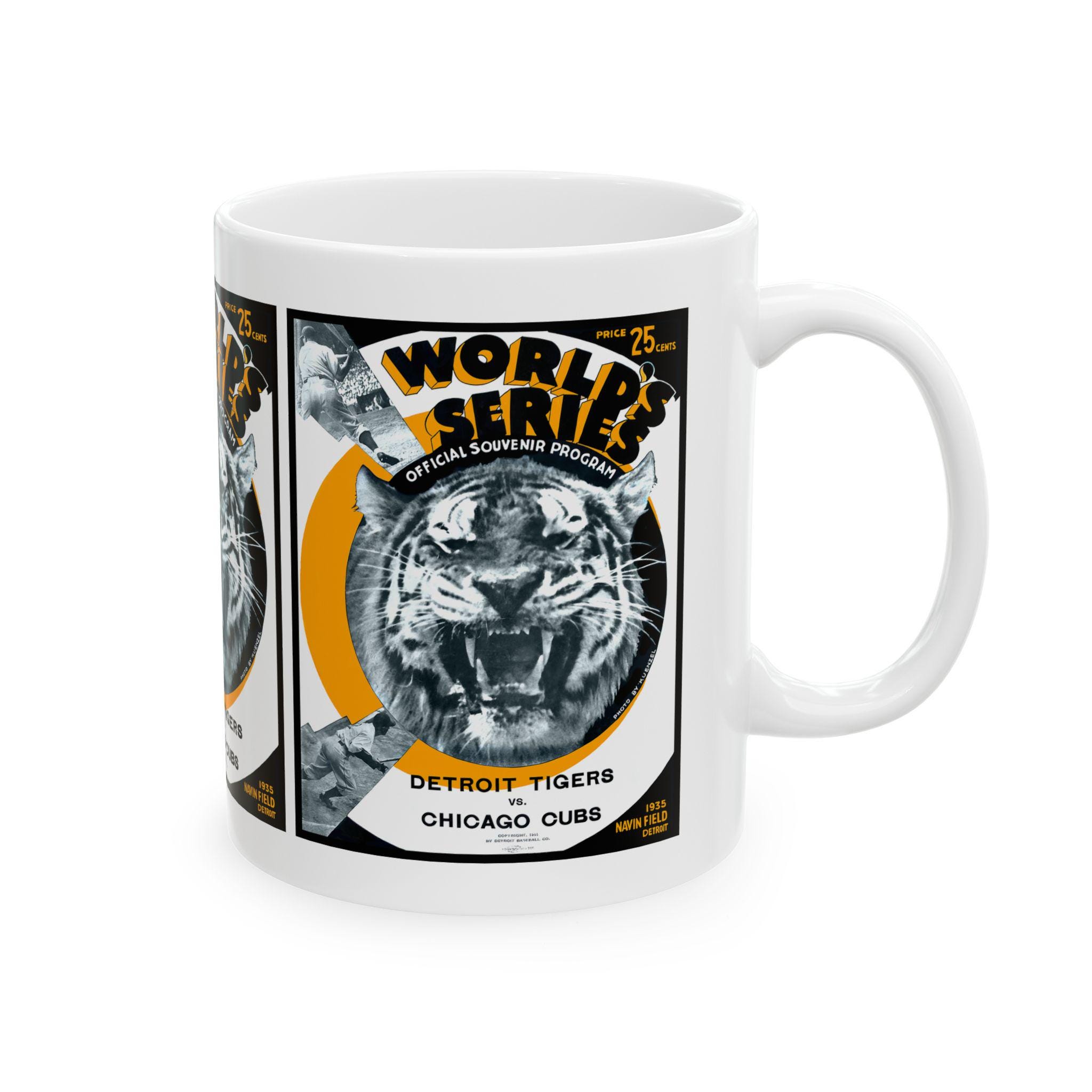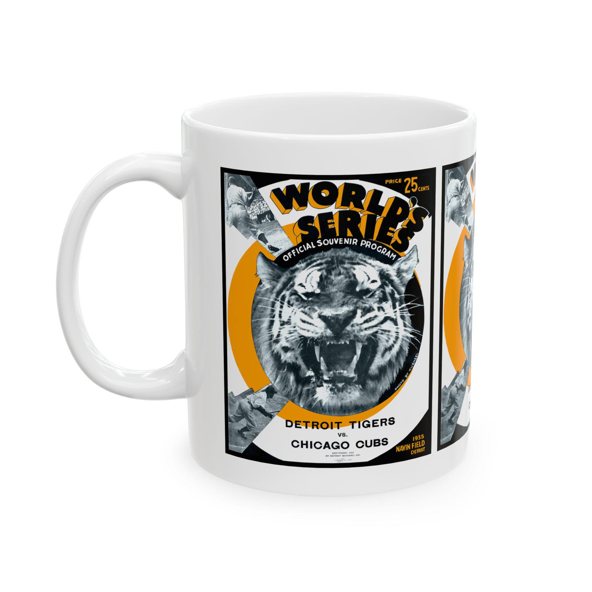 This ceramic mug featuring the 1935 Baseball World Series Tigers Cubs design is perfect for sports enthusiasts and baseball fans. It brings a vintage vibe and nostalgia, making it a great addition to your morning coffee routine or an afternoon tea break. Ideal for gifting on birthdays, Father's Day, or as a special treat for yourself.