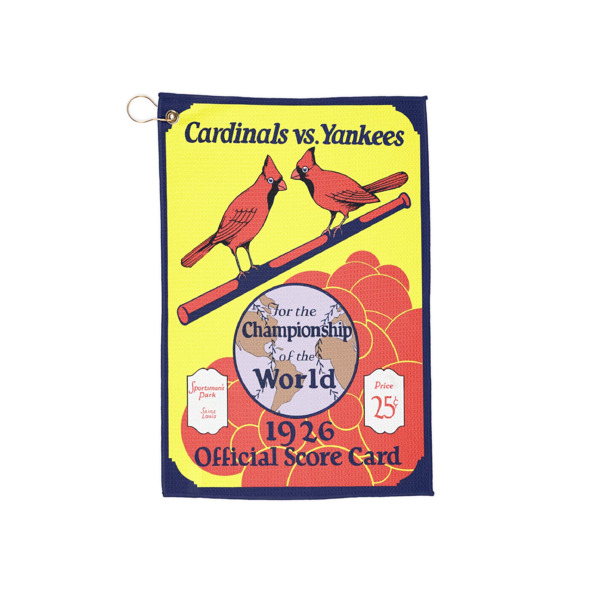 This Golf Towel featuring the 1926 Baseball World Series Cardinals - Yankees design is a perfect accessory for sports enthusiasts who enjoy golfing. The vintage baseball theme adds a retro and nostalgic vibe to your golfing experience. Ideal for golf lovers or as a gift for Father's Day, birthdays, or sports-themed occasions.