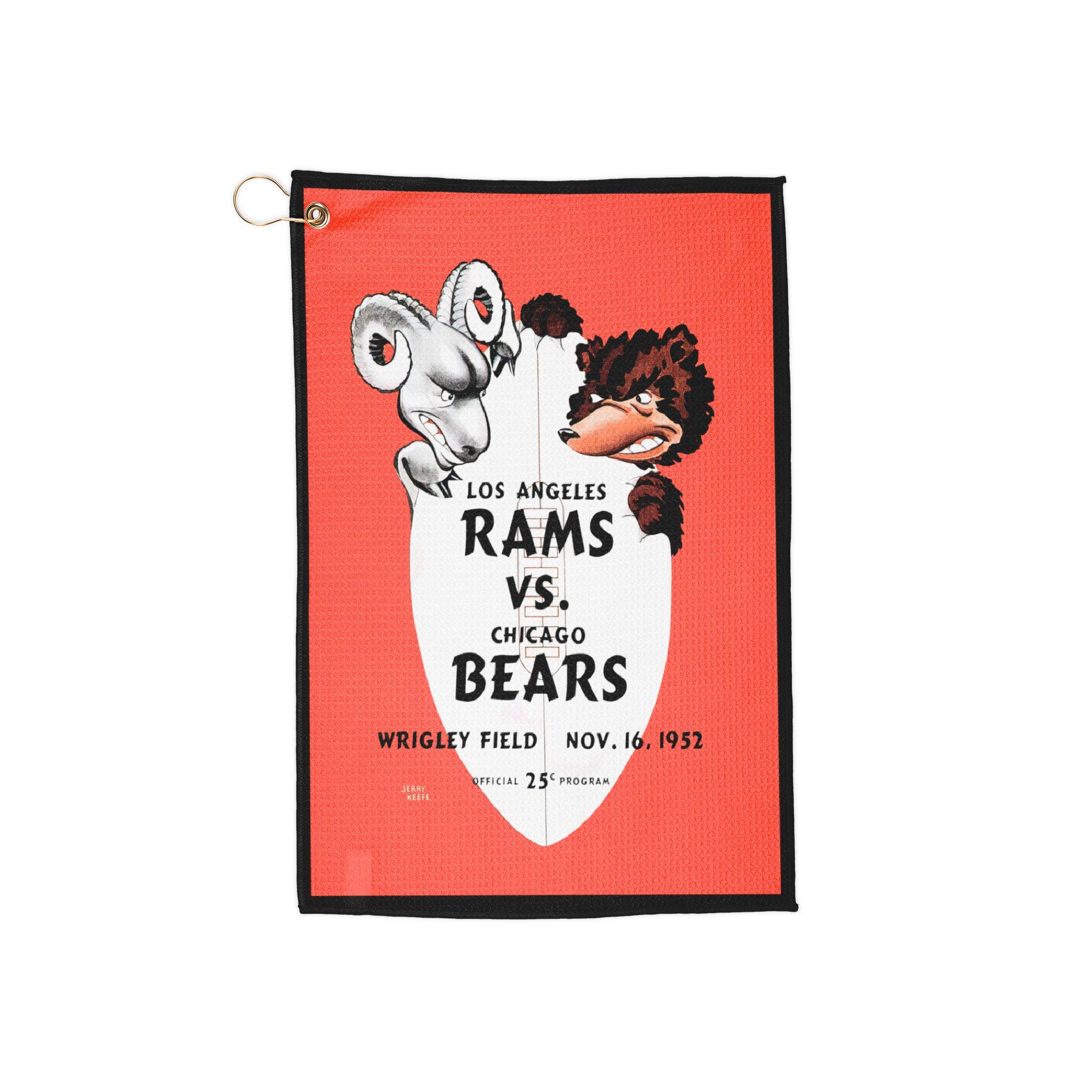 Vintage 1952 Chicago Bears - Los Angeles Rams Football golf towels are perfect for sports enthusiasts and fans. The design gives a nostalgic and classic vibe, making it a great addition to any golf game or sports event. It is ideal for gifting during football season or for Father's Day.