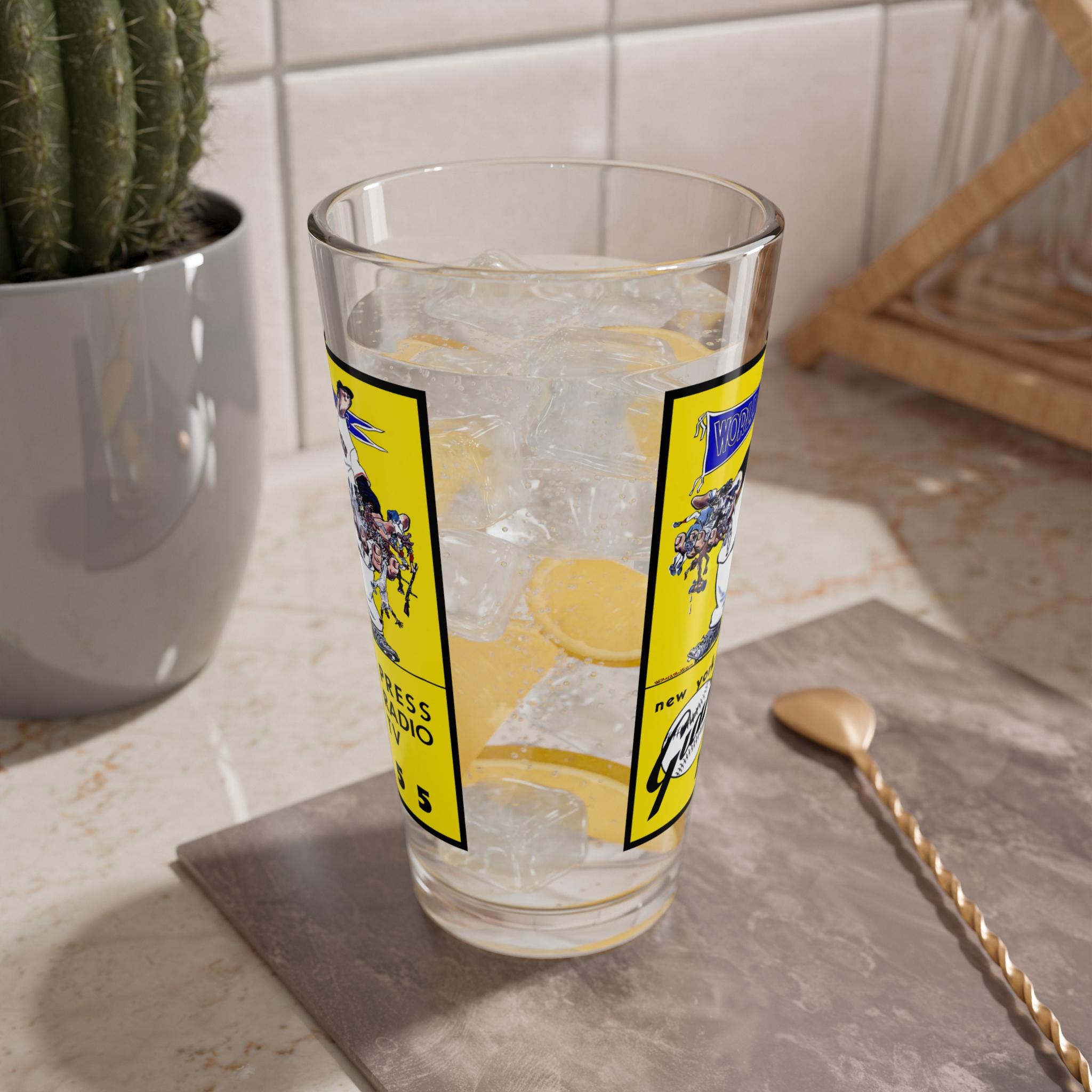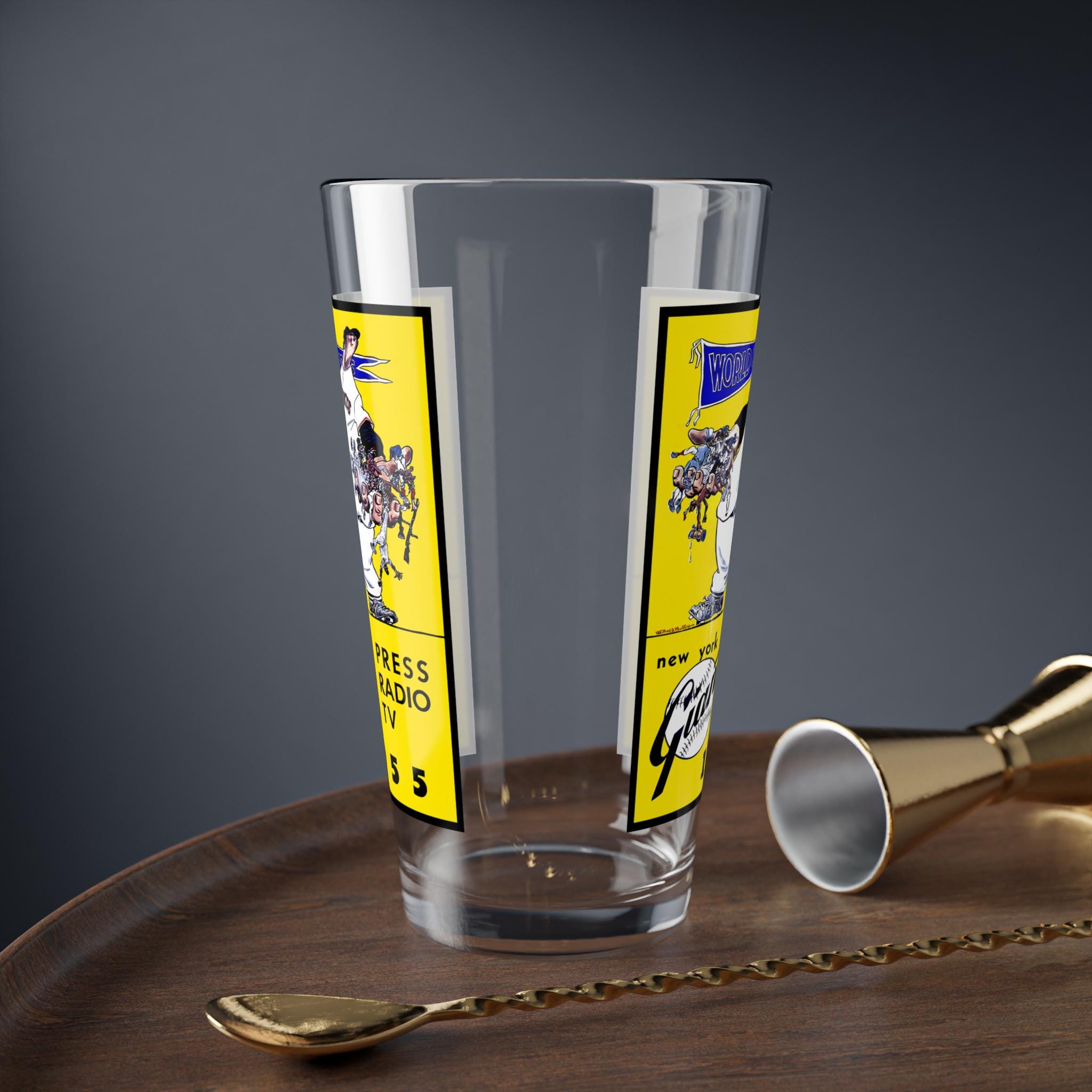 This 16oz mixing glass features a vintage design of the 1955 Baseball New York Giants, giving off a nostalgic and classic vibe. Perfect for sports enthusiasts and baseball fans, this glass is ideal for enjoying a cold beverage while watching games or gatherings with friends. Great for Father's Day, birthdays, or sports-themed parties.
