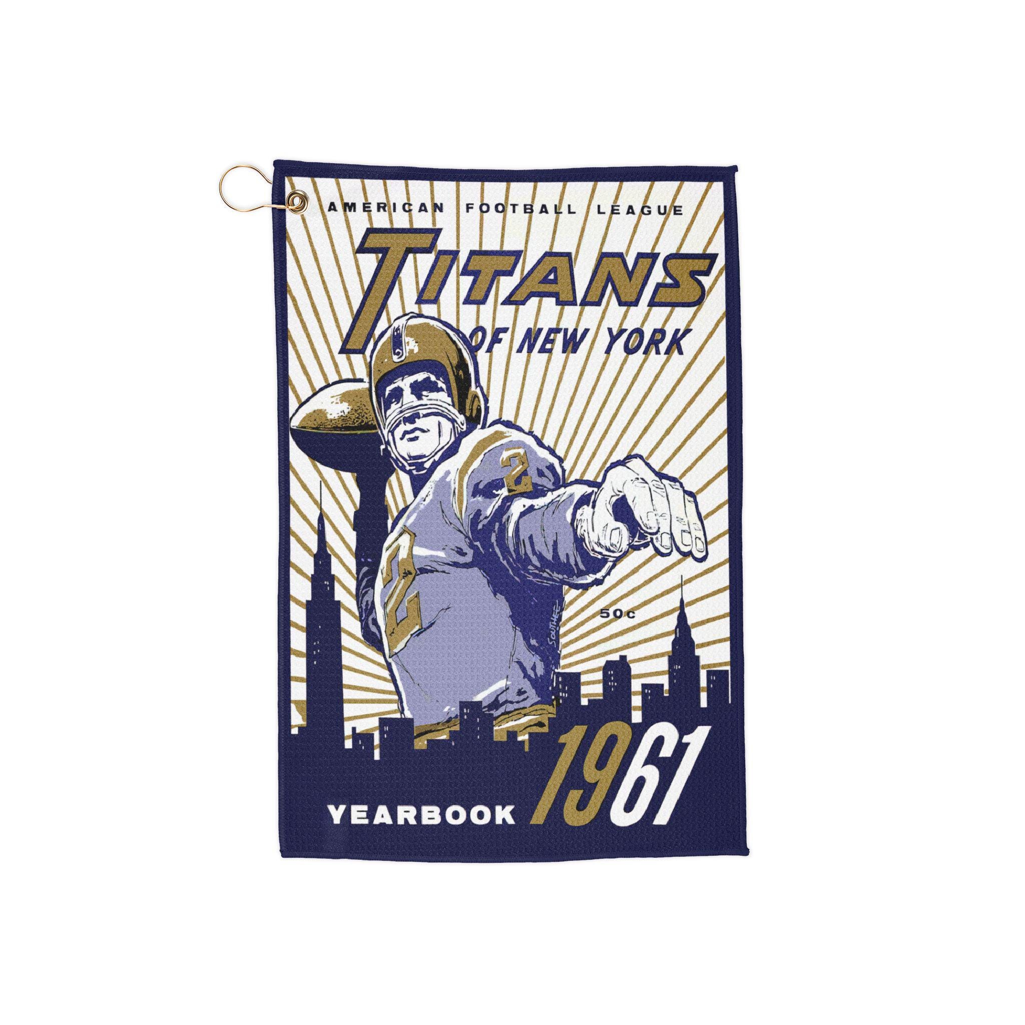 This Golf Towel featuring the 1961 Football New York Titans design gives off a retro and sporty vibe. Perfect for golf enthusiasts and sports fans, this towel can be used for traveling, camping, the gym, and more. Ideal for Father's Day, birthdays, and sports-themed occasions.