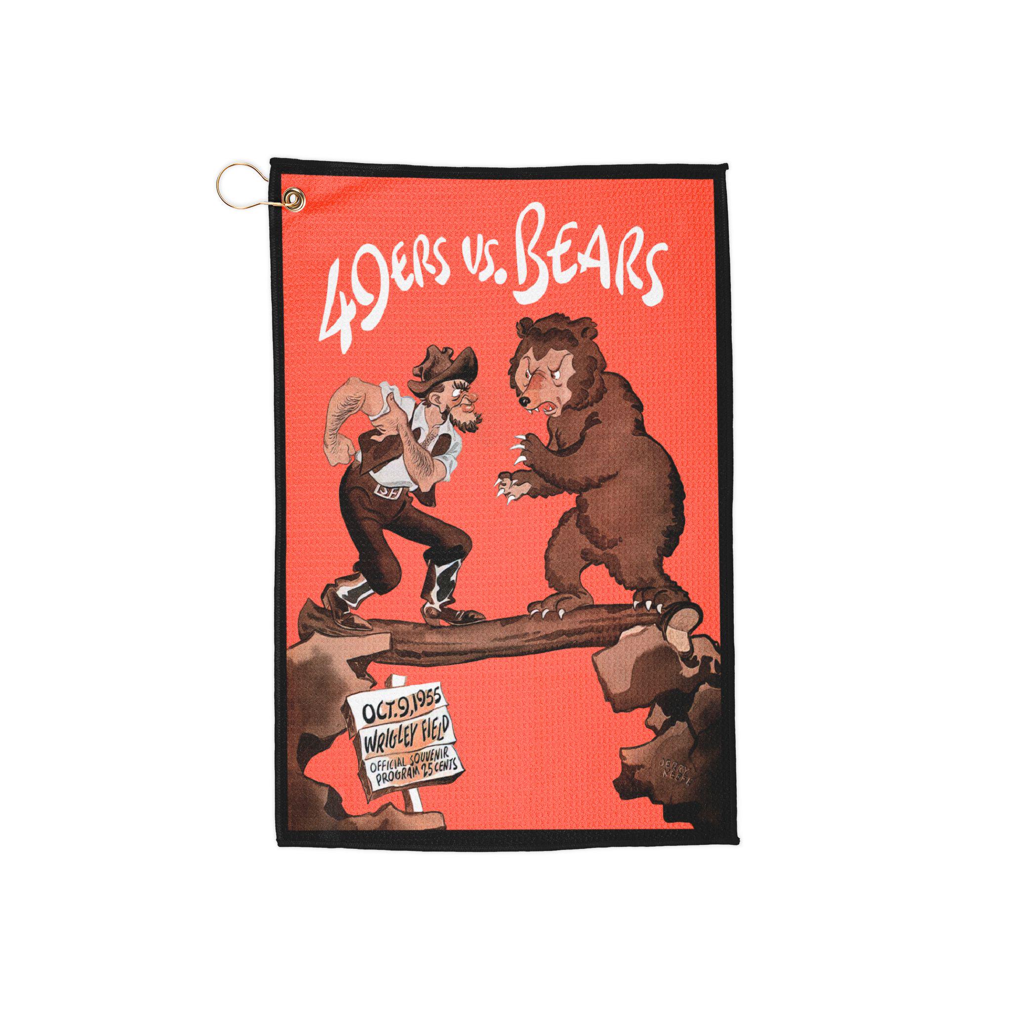 This vintage-inspired football towel featuring the 1955 matchup between the Chicago Bears and San Francisco 49ers gives off a nostalgic sports vibe. Perfect for sports enthusiasts or those who appreciate retro memorabilia. Ideal for the football season, game nights, or sports-themed parties.