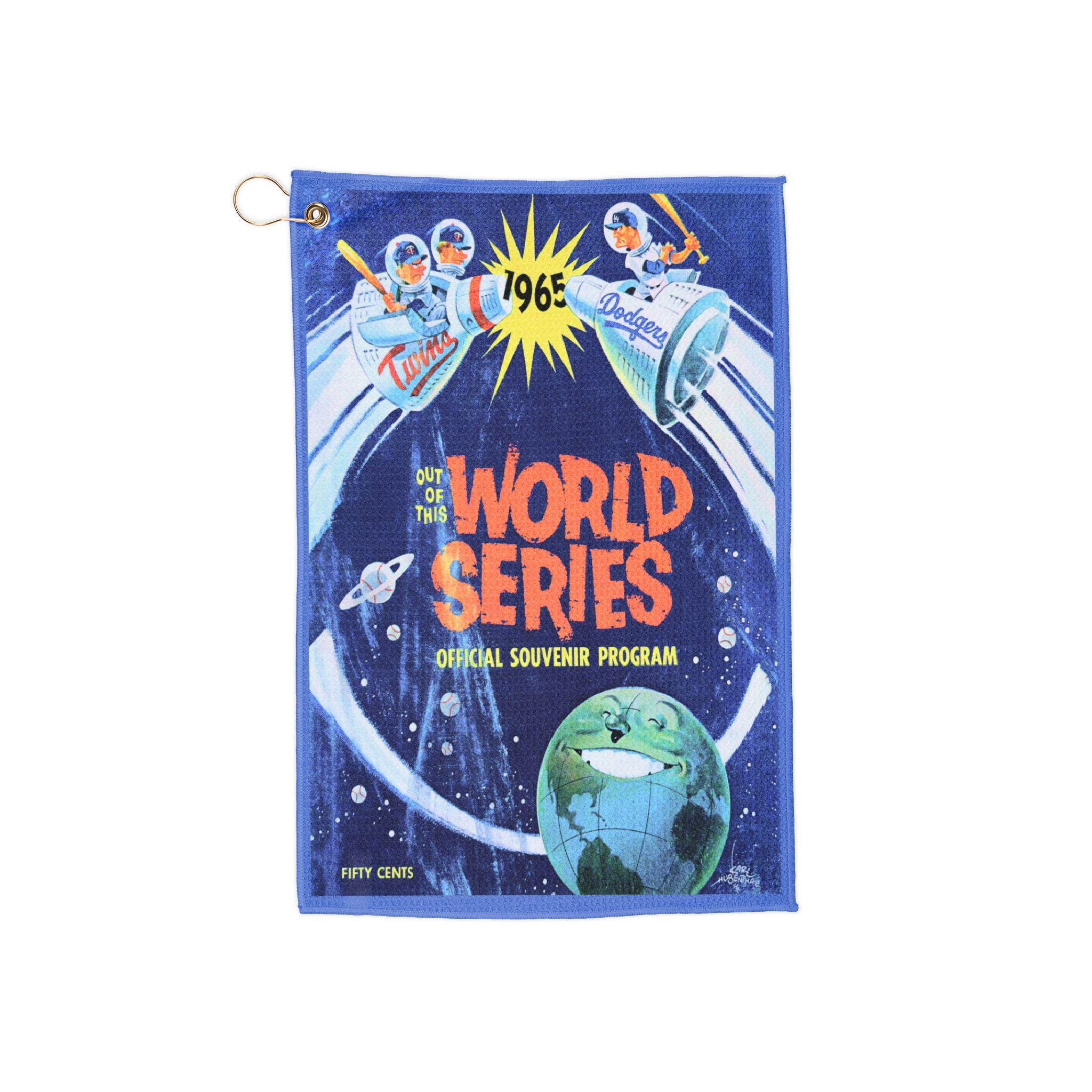 This 1965 Baseball World Series Dodgers-Twins towel brings a vintage sports vibe to your everyday life. Perfect for sports enthusiasts and history buffs, this towel is ideal for traveling, camping, boating, and more. It is absorbent, multifunctional, and features a unique print on one side.