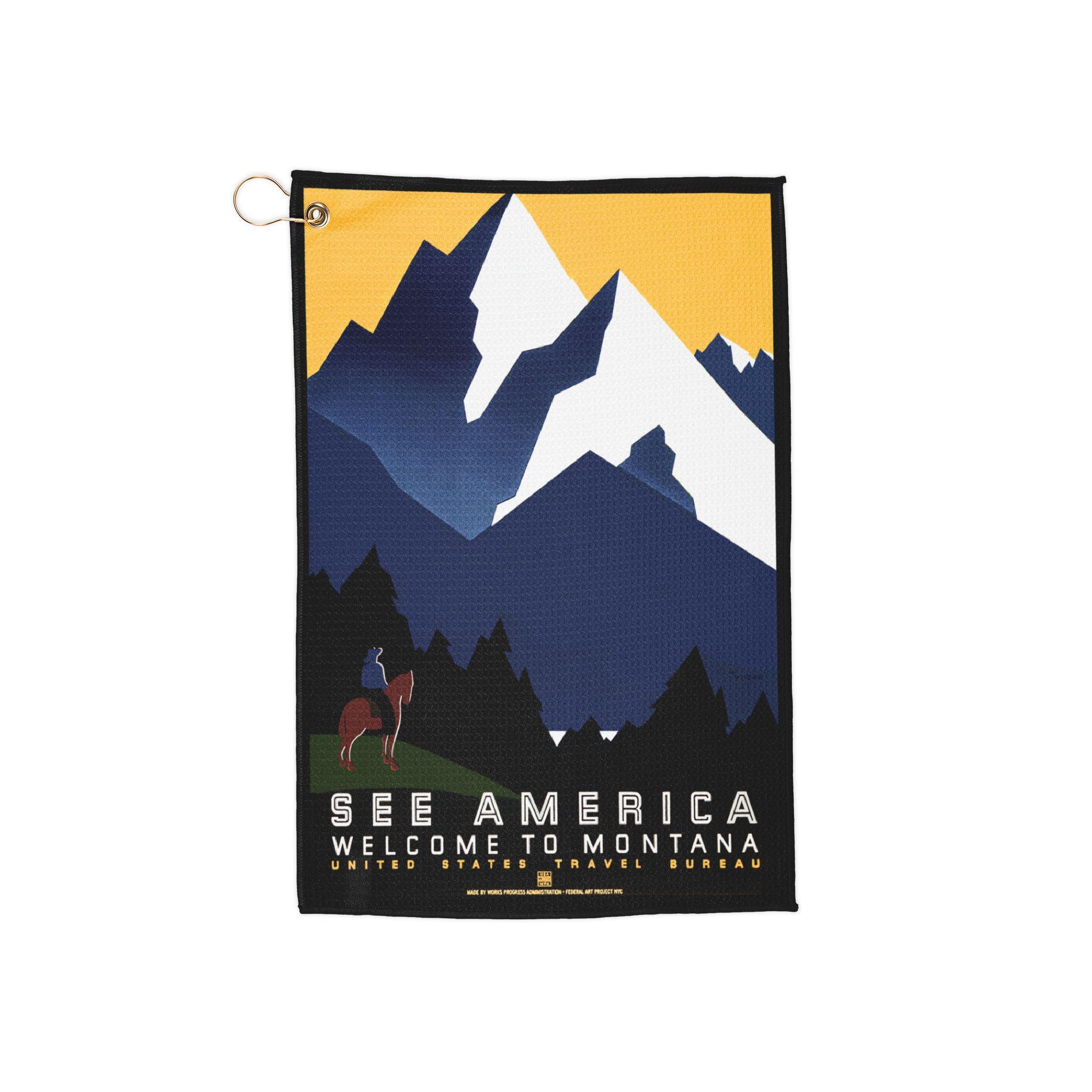 This WPA See America - Welcome to Montana towel is perfect for outdoor enthusiasts and travelers who love exploring national parks. The design gives off a vintage, adventurous vibe, making it a great addition to your hiking gear or beach essentials. Ideal for those who enjoy camping, hiking, or road trips. Perfect for gifting during National Park Week or to commemorate a special trip to Montana.