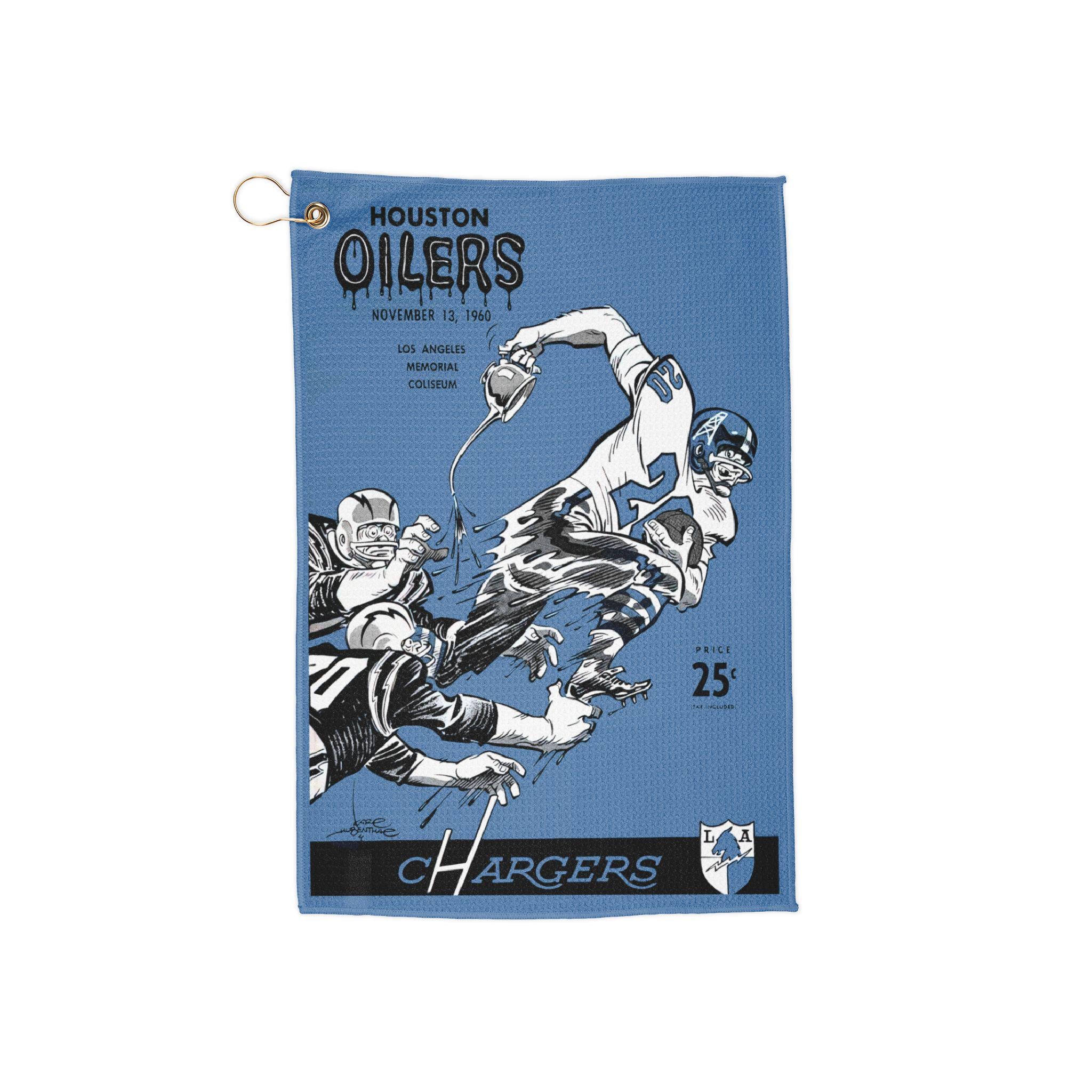 This vintage-inspired football towel featuring the 1960 Houston Oilers - Los Angeles Chargers design is perfect for sports enthusiasts and history buffs. Its absorbent microfiber material makes it ideal for traveling, camping, the gym, and more. Great for football season and sports-themed events.