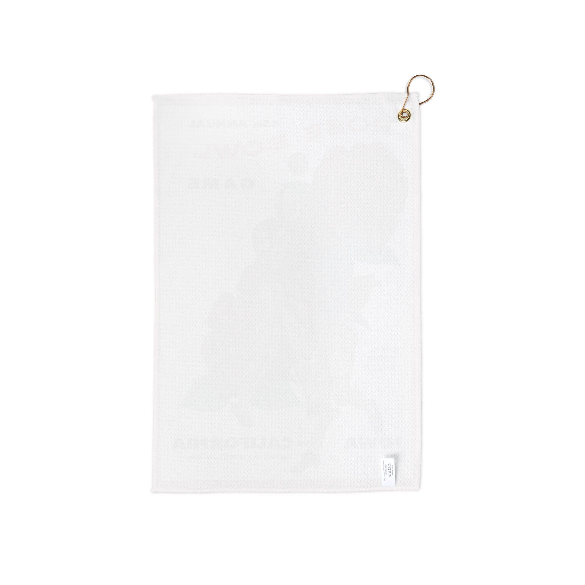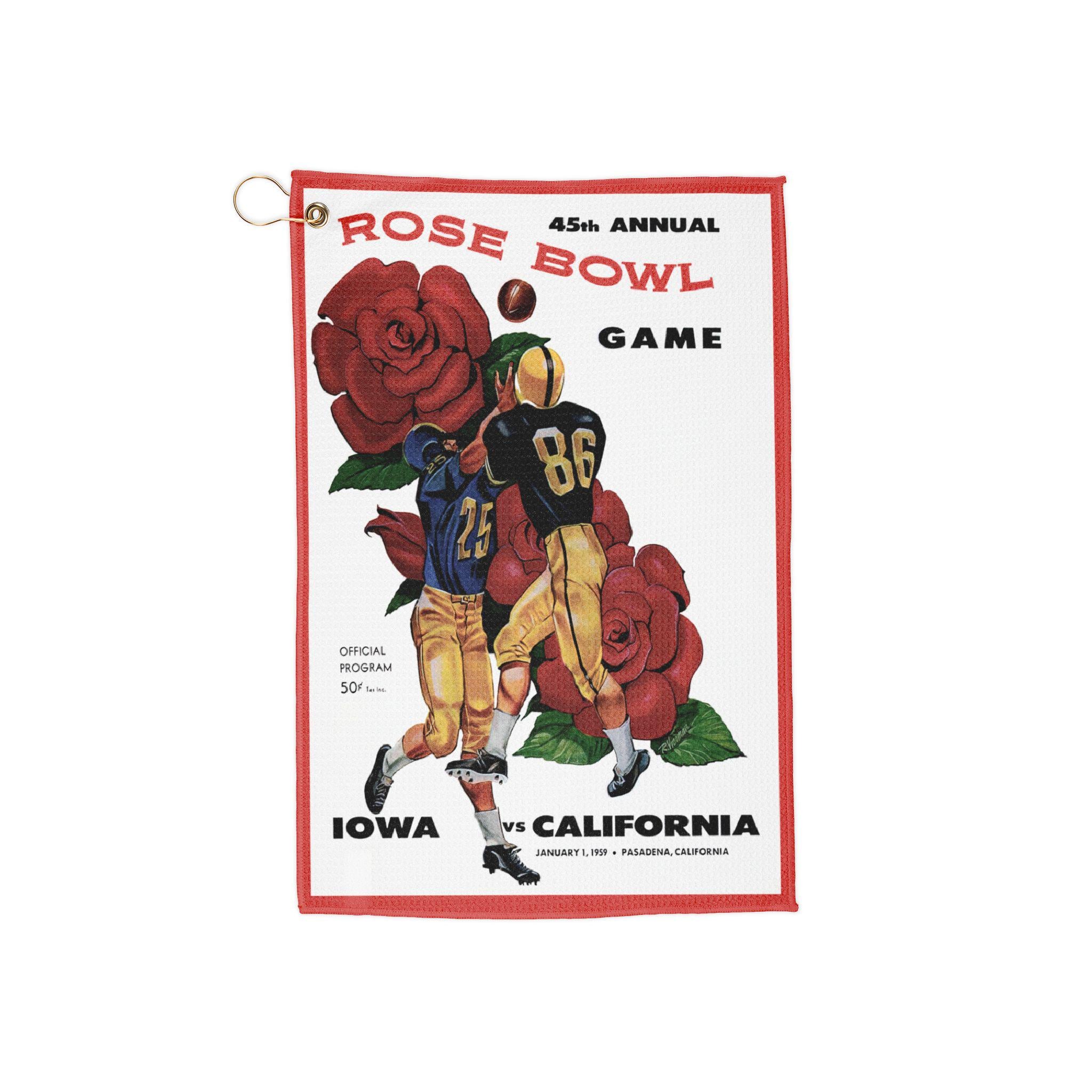 Relive the excitement of the 1959 Football Rose Bowl with this Iowa-California themed golf towel. The perfect accessory for sports enthusiasts looking to add a touch of nostalgia to their game.