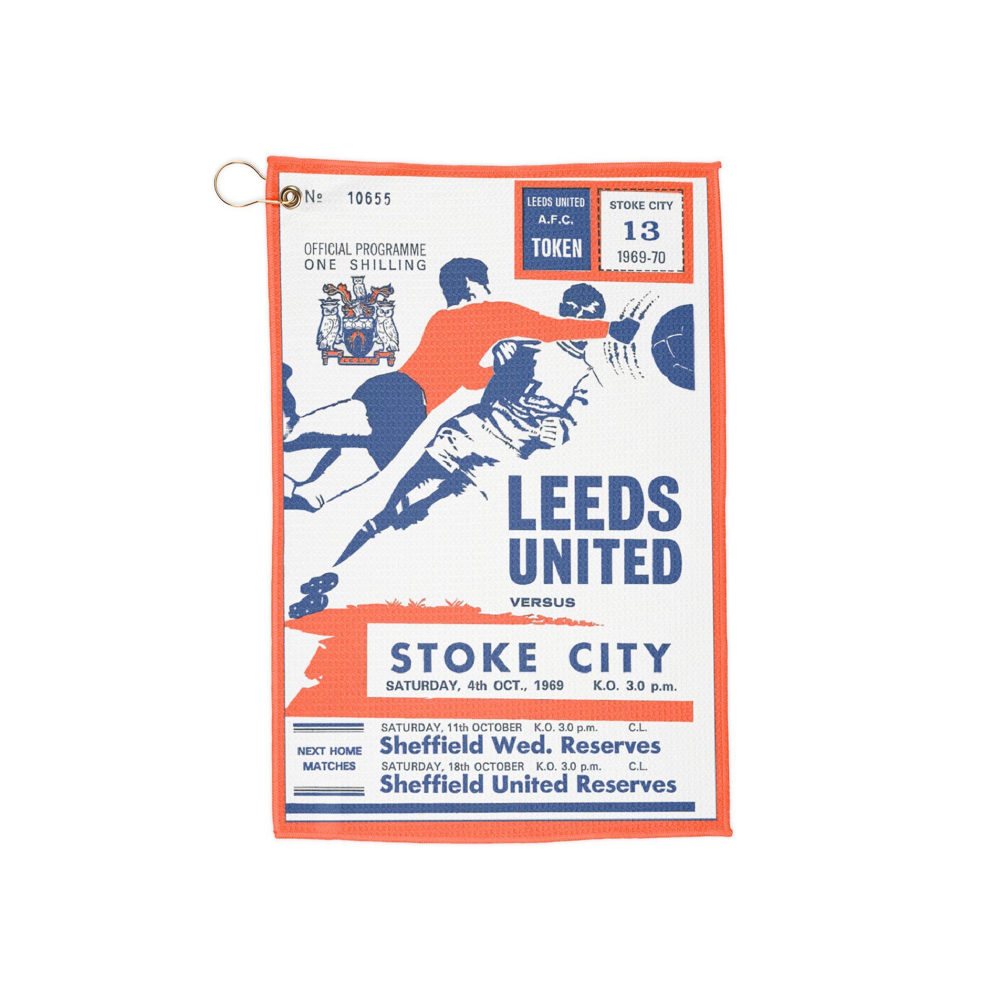 A microfiber towel featuring a vintage 1969 English Football design of Leeds United vs. Stoke City. Ideal for sports enthusiasts and football fans, this absorbent towel is perfect for traveling, camping, the gym, and more. Great for those who love retro football memorabilia and want to showcase their team pride. Perfect for Father's Day or a sports-themed gift.