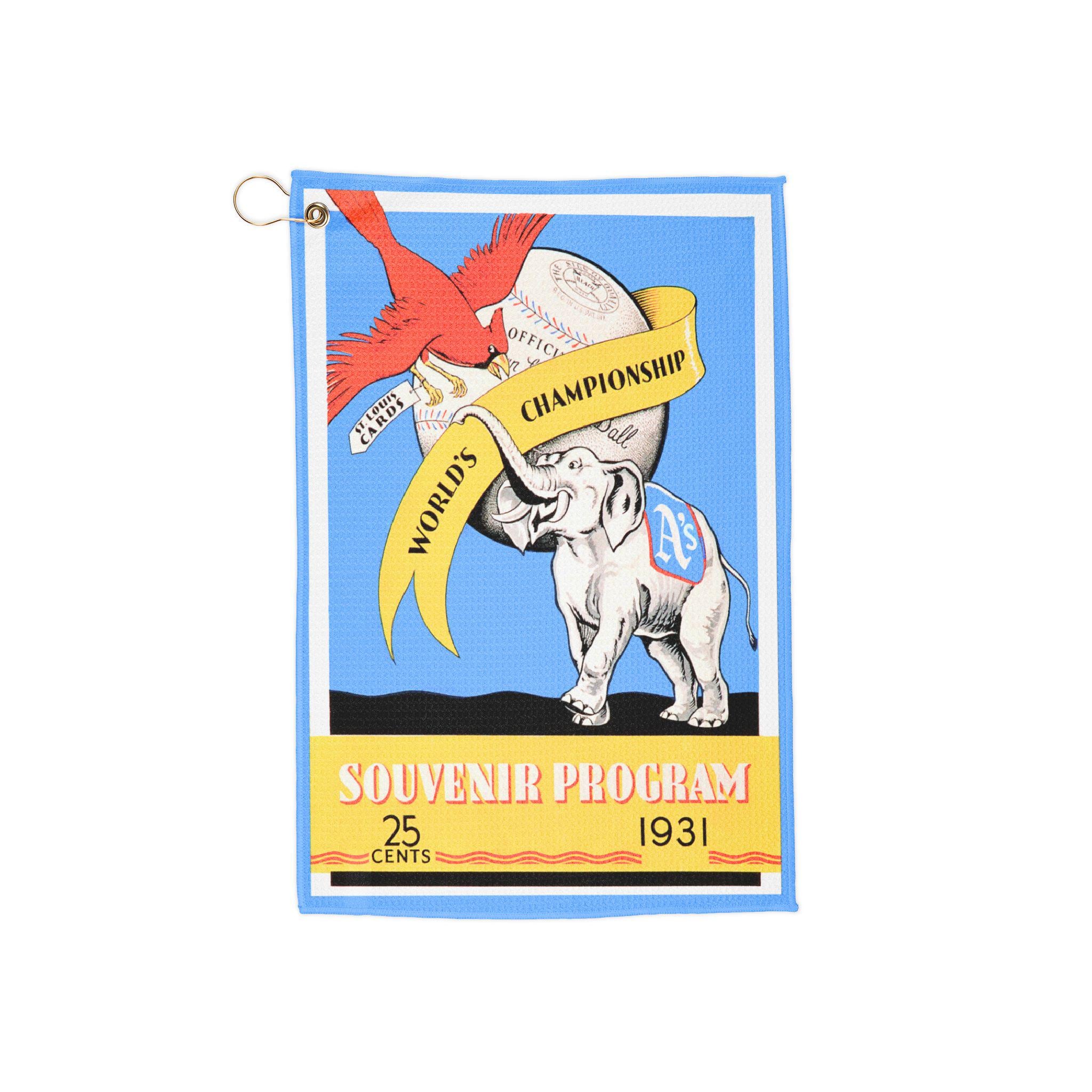 Vintage-inspired 1931 Baseball World Series St Louis Cardinals - Philadelphia A's design on a versatile golf towel. Perfect for sports enthusiasts, baseball fans, and history buffs. Ideal for gifting during baseball season, Father's Day, and birthdays.