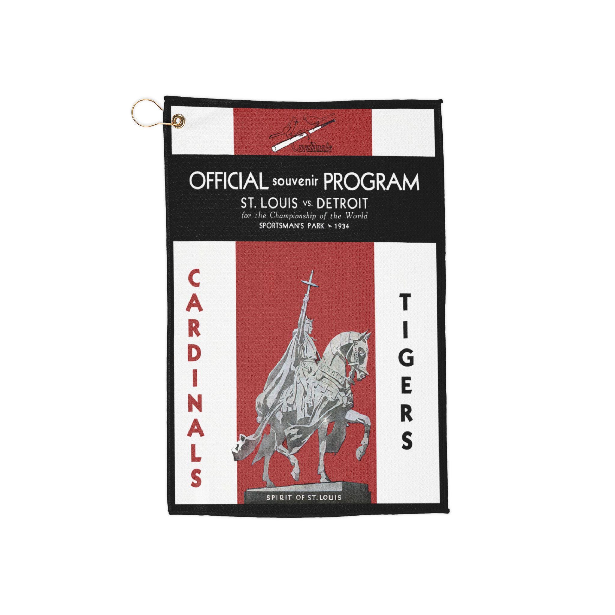 This Golf Towel featuring the 1934 Baseball World Series St Louis Cardinals-Detroit Tigers design gives a vintage sports vibe, perfect for sports enthusiasts and history buffs. Ideal for golfers, this absorbent towel can also be used for traveling, camping, or at the gym. A great gift for Father's Day or birthdays.