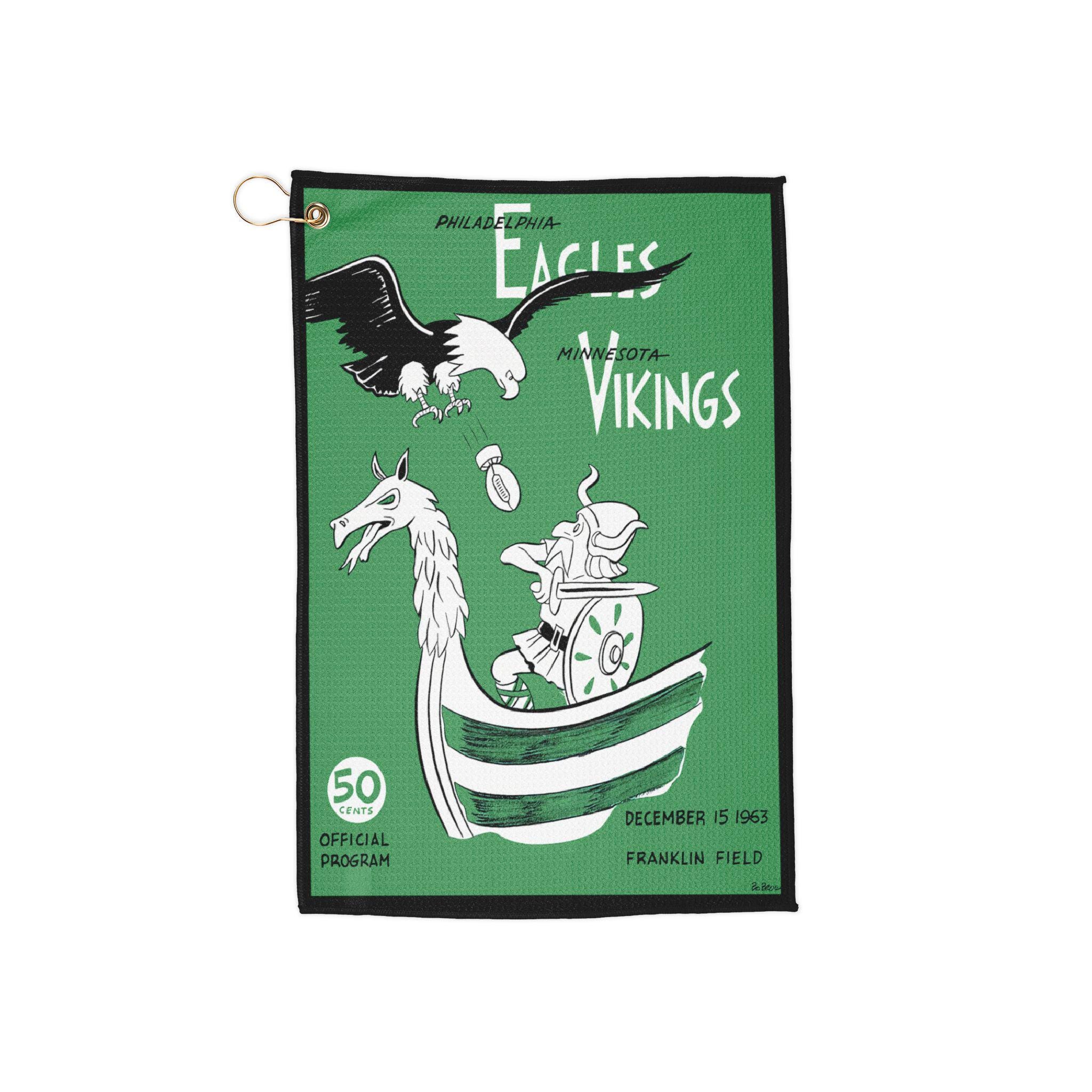 This 1963 Football Eagles-Vikings towel gives a nostalgic and sporty vibe. Perfect for sports enthusiasts and fans of either team. Ideal for use during traveling, camping, or at the gym. Relevant for football season and sports events.