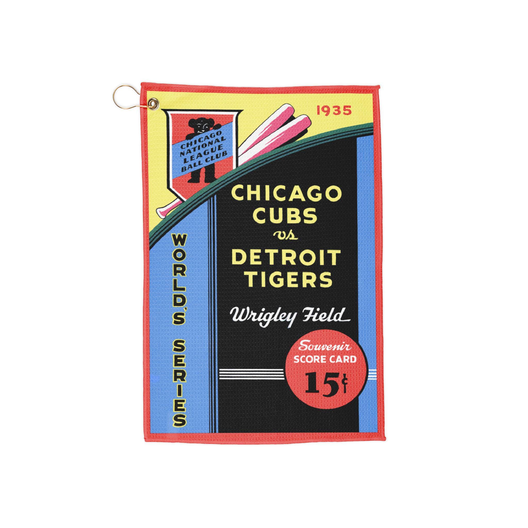 Transport yourself back to the 1935 Baseball World Series with these Chicago Cubs and Detroit Tigers themed golf towels. Perfect for sports enthusiasts or history buffs, these towels are versatile for use in various settings like traveling, camping, and the gym. Ideal for absorbing liquid with its 80% polyester, 20% polyamide blend microfiber material. Featuring a gold grommet and ring for easy hanging and a unique print on one side.