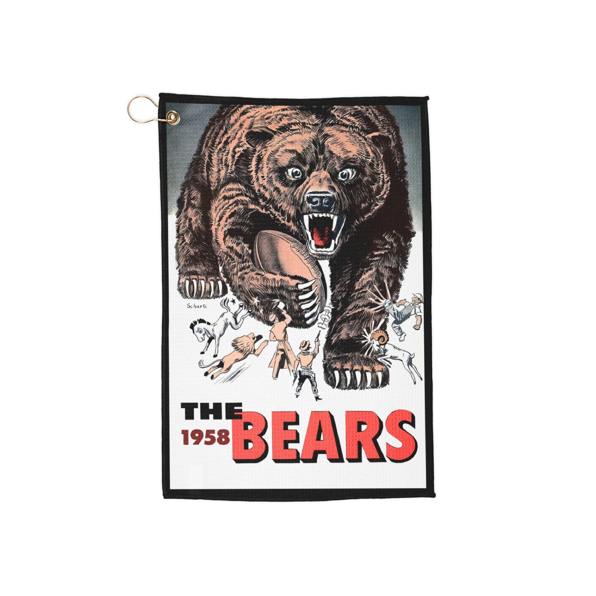 This Golf Towel features a vintage 1958 Football design of the Chicago Bears, giving off a retro sports vibe. Perfect for sports enthusiasts and Chicago Bears fans, this towel is ideal for use during golf rounds, sports games, or as a gym towel. Great for Father's Day, birthdays, and sports events.
