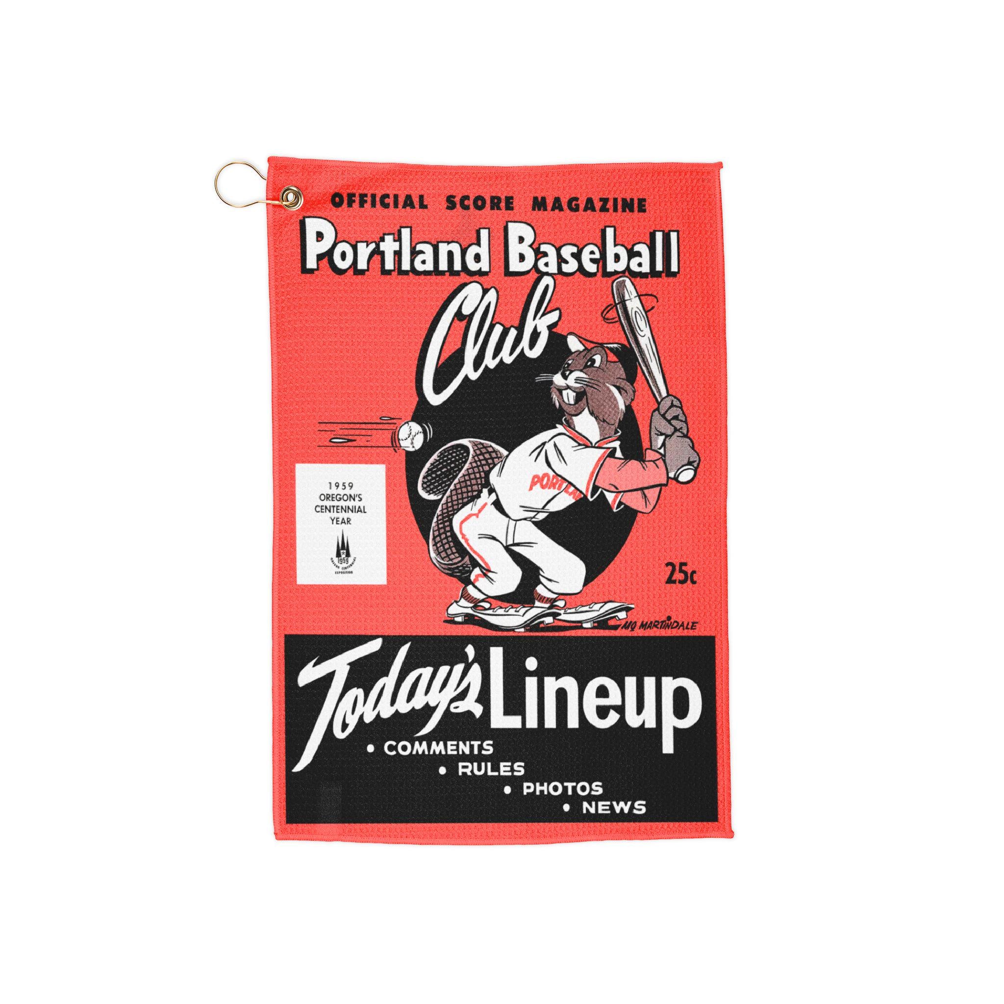 This vintage-inspired Golf Towel featuring the 1959 Baseball Portland Beavers design is perfect for sports enthusiasts and history buffs. The towel is ideal for use while traveling, camping, or at the gym. With its absorbent microfiber material and gold grommet and ring for easy hanging, this towel brings a nostalgic vibe to any activity or space. It makes a great gift for sports fans and can be used during sports seasons, Father's Day, or as a souvenir from Portland.