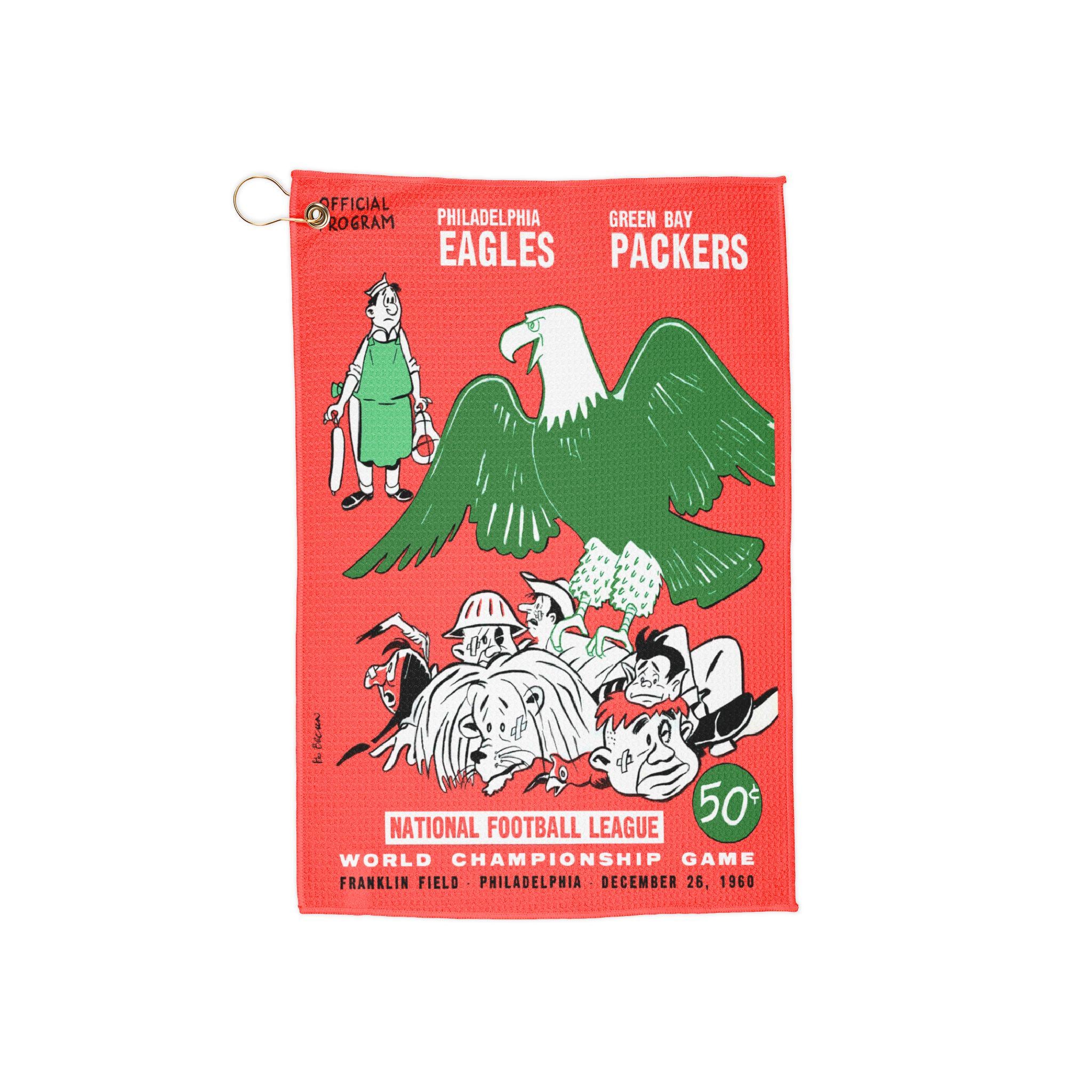 This vintage-inspired golf towel features a 1960 Football Eagles-Packers design, giving off a nostalgic and sporty vibe. Perfect for sports enthusiasts and fans of retro football memorabilia. Ideal for gifting during sports events, Father's Day, or birthdays.