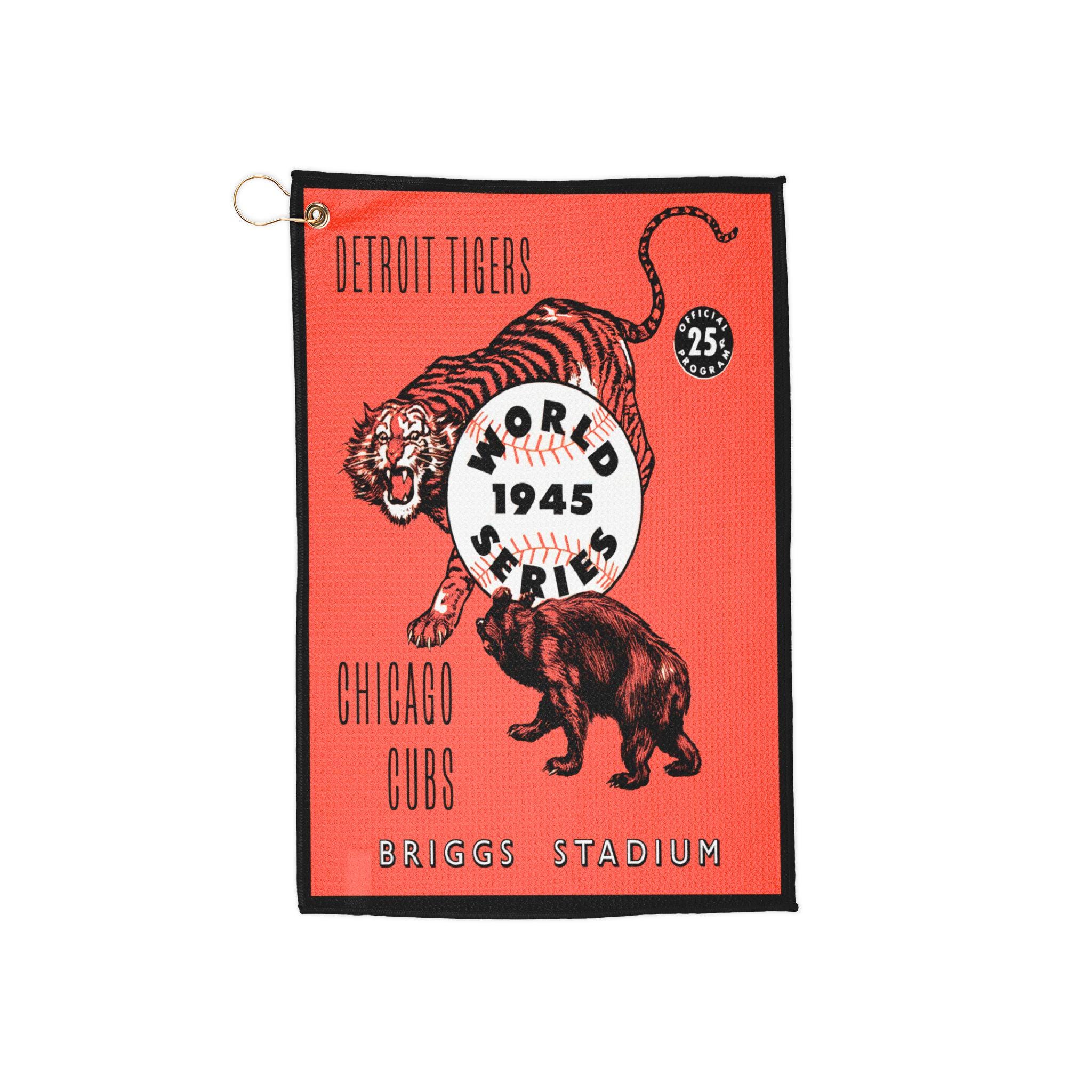 This vintage-inspired towel features a design from the 1945 Baseball World Series Cubs-Tigers, giving off a classic sports vibe. Perfect for sports enthusiasts and history buffs, this towel is ideal for use at the gym, beach, pool, or even while traveling. A great addition to any sports fan's collection, especially relevant for baseball season and sports-themed celebrations.