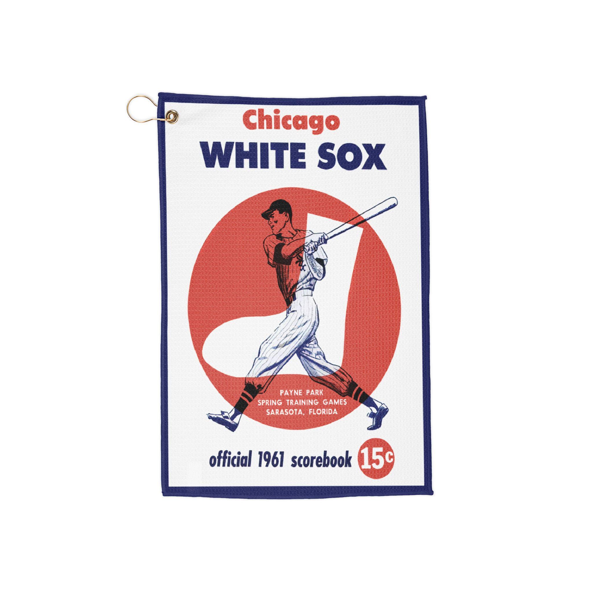 This microfiber towel featuring the design of the 1961 Baseball Chicago White Sox is perfect for sports enthusiasts and Chicago White Sox fans. It is ideal for traveling, camping, the gym, and other activities. The absorbent material ensures quick drying and the gold grommet and ring add a stylish touch to the towel.