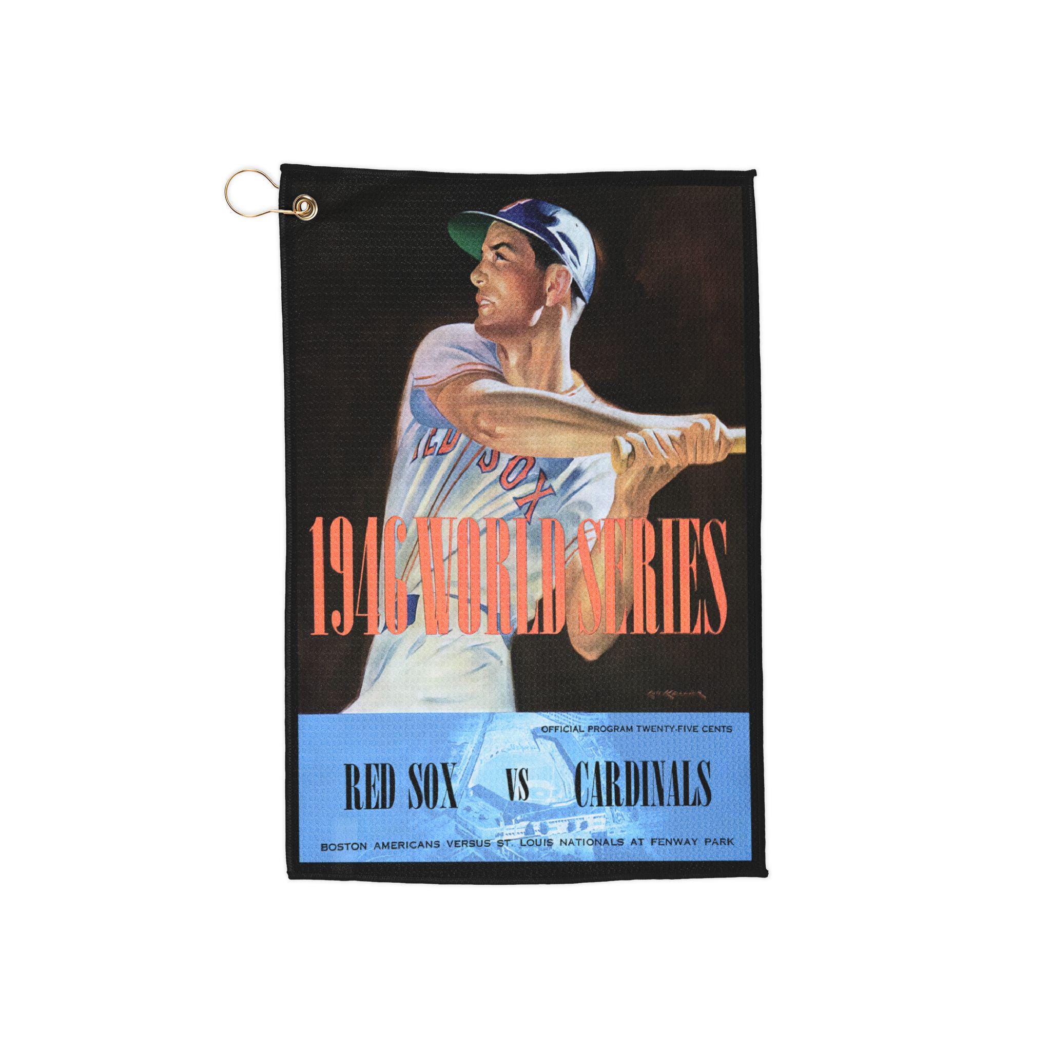 Bring a touch of vintage ballpark pride to the green. This golf towel carries the spirit of the 1946 Baseball World Series — Red Sox vs. Cardinals — with a faded, game-day look that nods to old scoreboards and sun-bleached pennants. It hangs easily from your bag by a gold grommet and ring, ready to wipe down clubs, clean a golf ball, or dry off after a practice session. Lightweight and compact, it slips into a travel kit or pockets without weighing you down. The single-sided print gives a subtle, retro statement without being loud, so your gear feels curated rather than cluttered. Whether you’re keeping your grip dry between holes or reaching for a quick clean on the driving range, this towel blends sports nostalgia with practical performance.