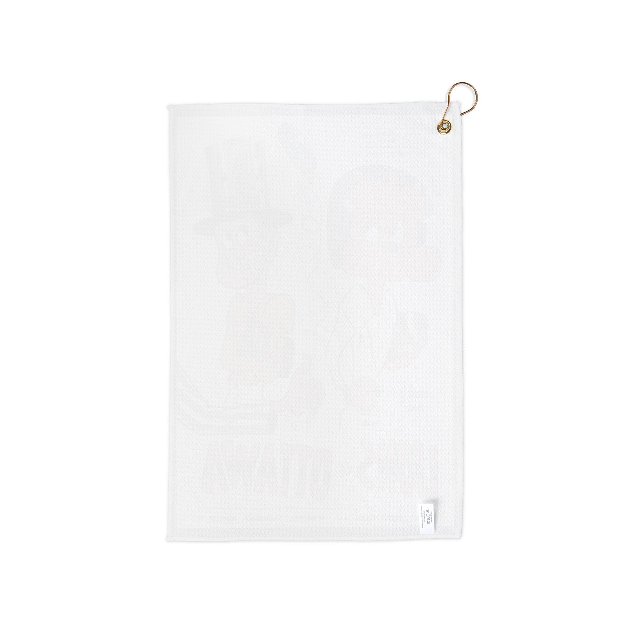 - One size towel measuring 16'' x 24'' with gold grommet and ring