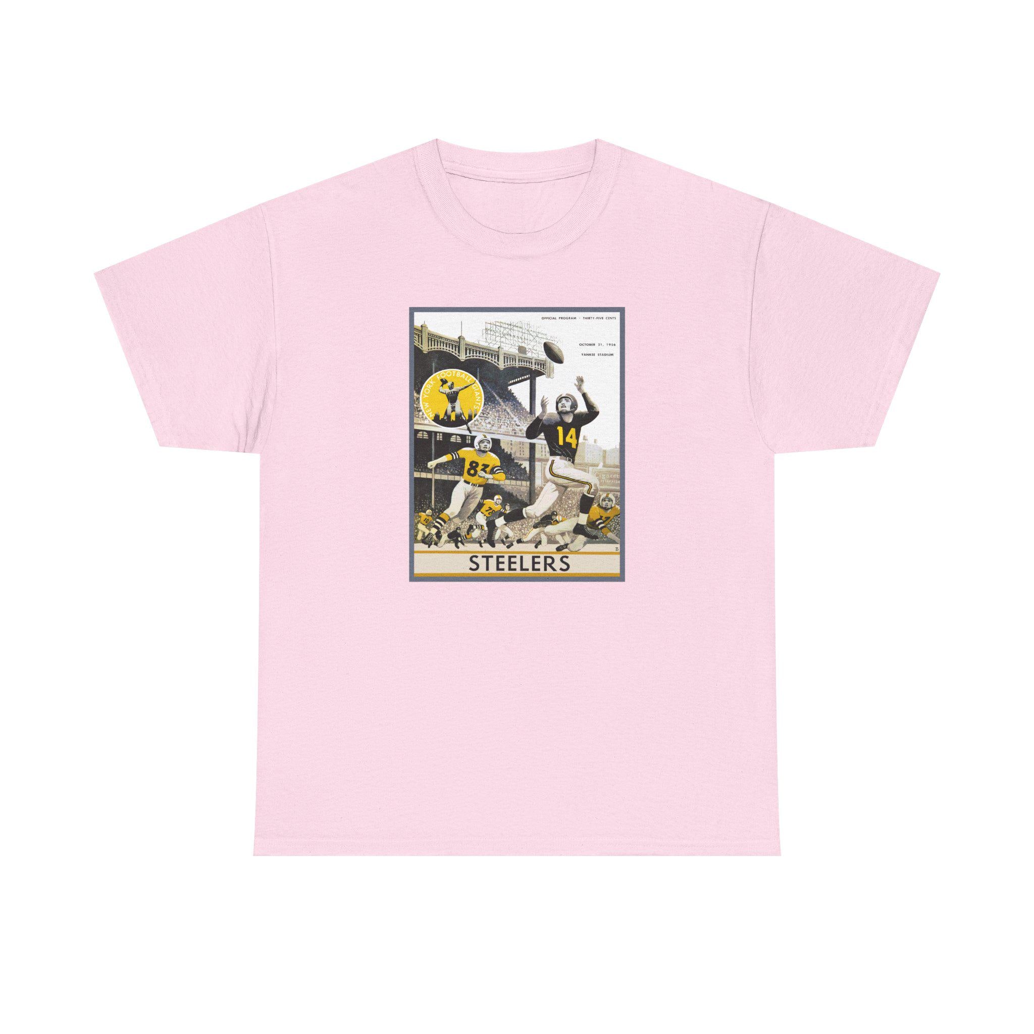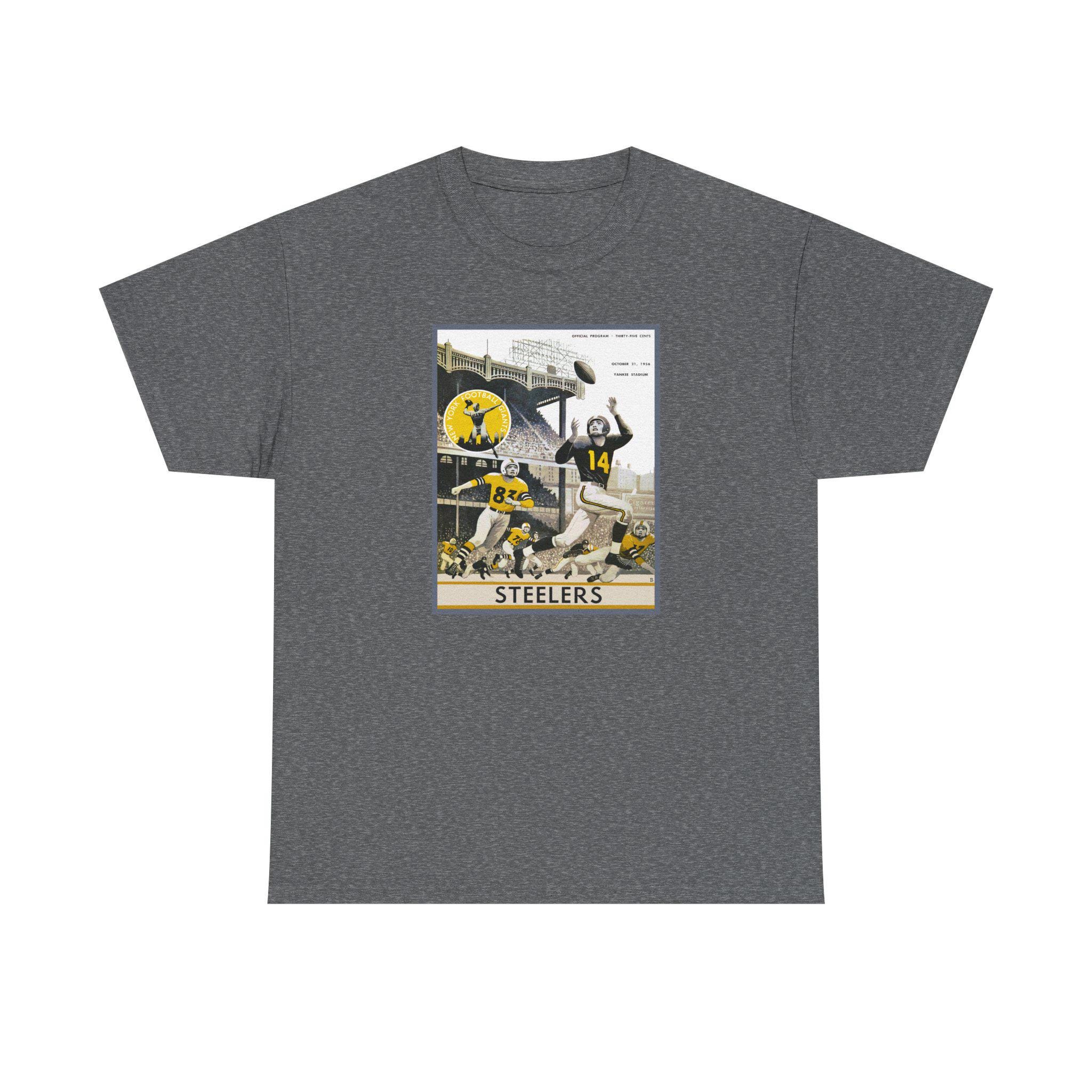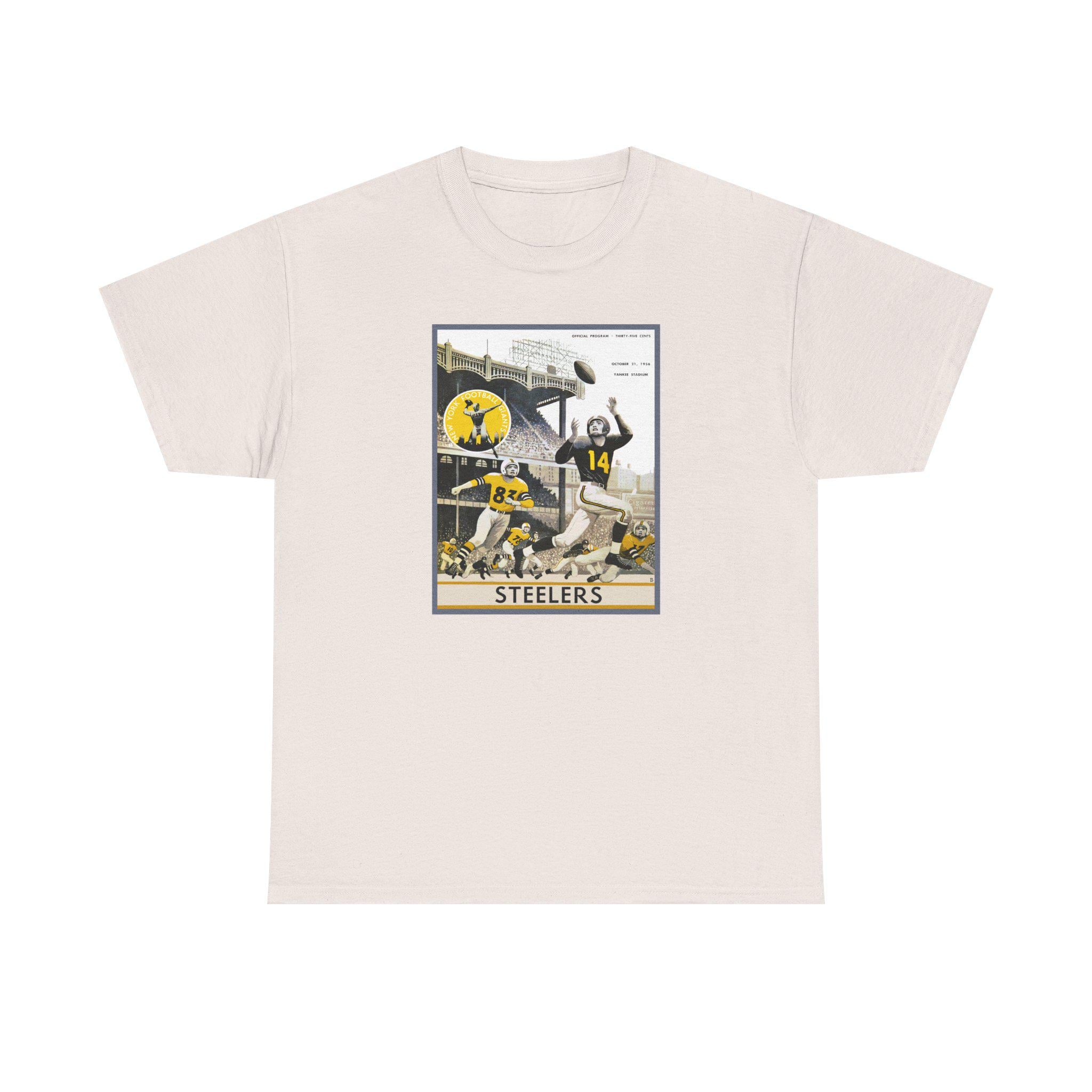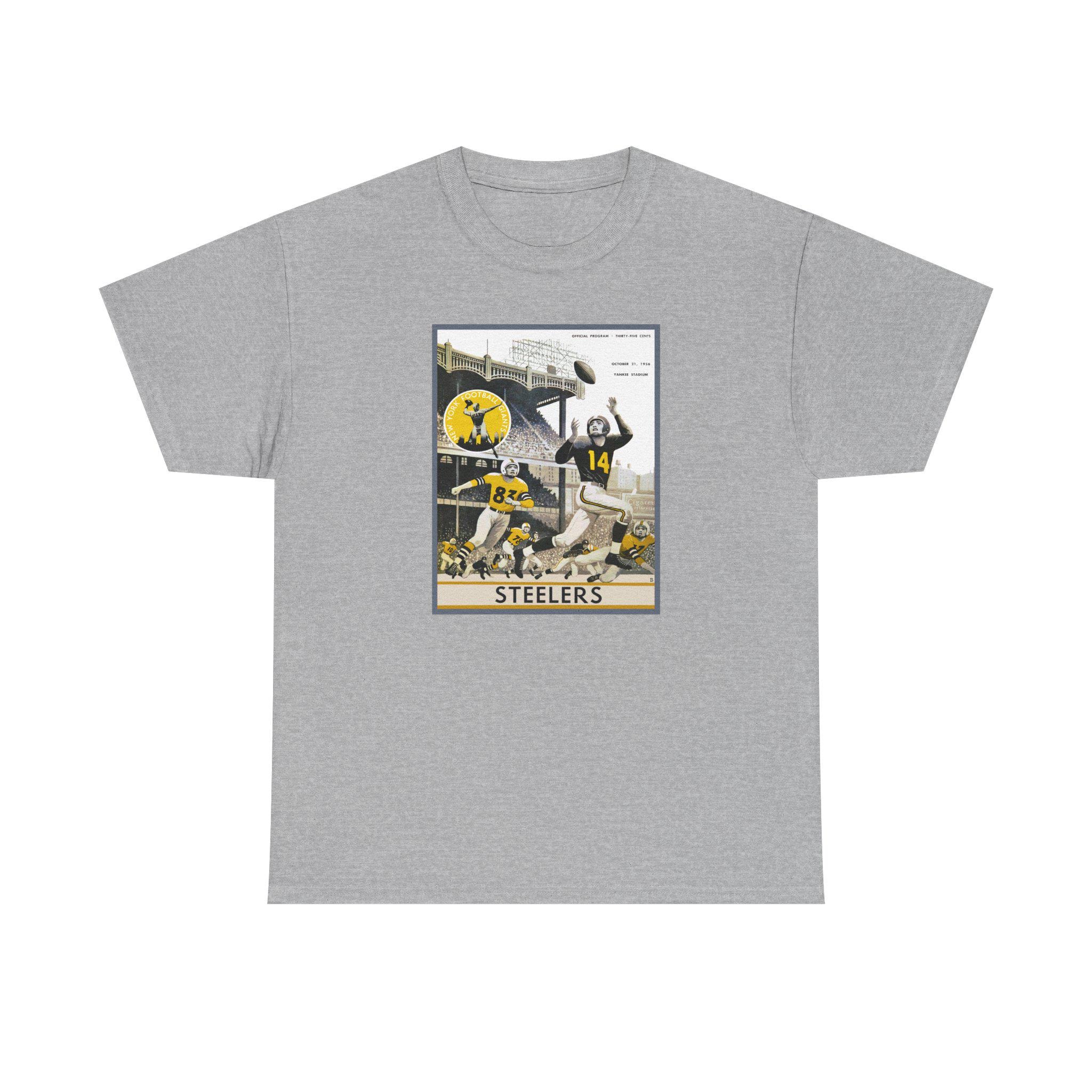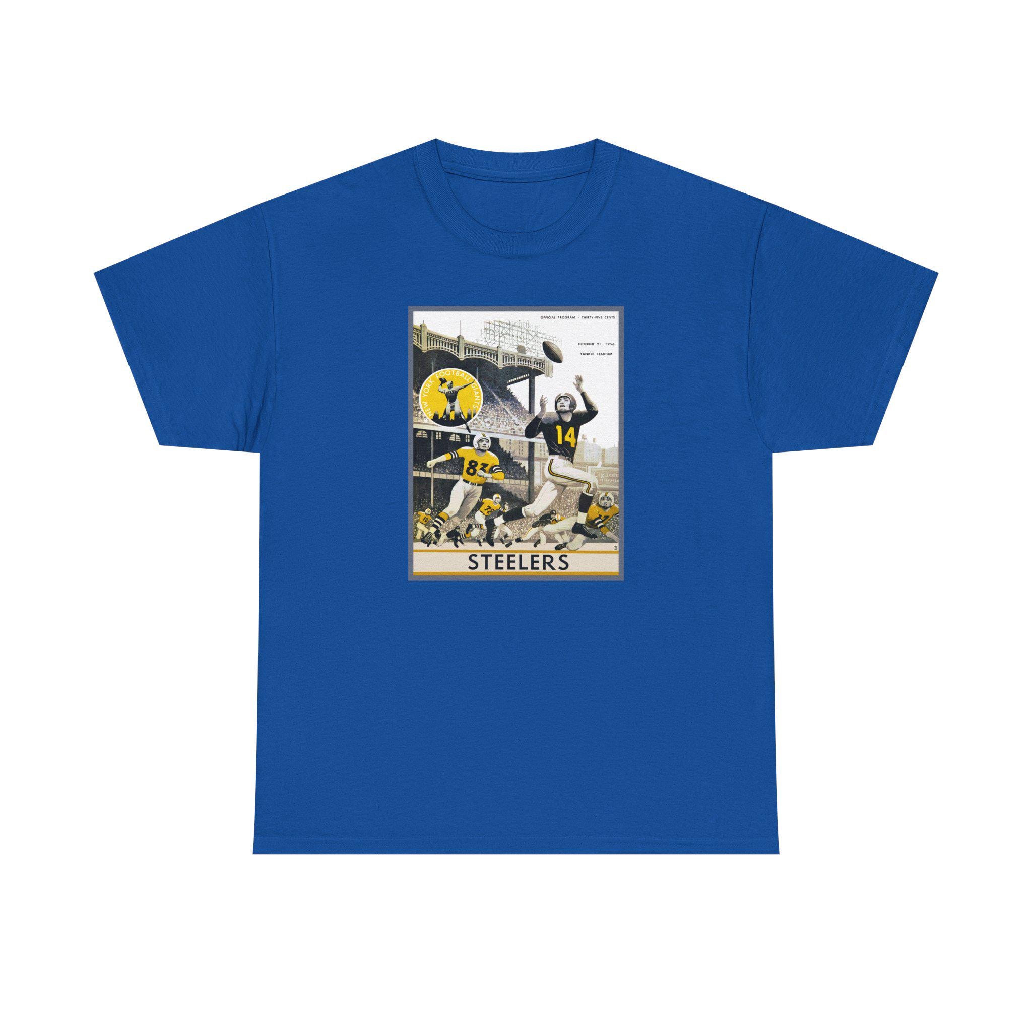 A nod to vintage gridiron glory — this tee carries the grit of a 1956 showdown between the Steelers and Giants. The soft, medium-weight cotton sits comfortably against your skin as you replay dust-up plays and classic formations in your head. Wear it to low-key watch parties, local field days, or while swapping old stories at the bar. The aged, retro-inspired print feels lived-in from the first wear, pairing naturally with worn denim and a weathered cap. It’s for fans who remember names and numbers, who prefer game-day authenticity over flash, and who like their sportswear to tell a story without shouting.