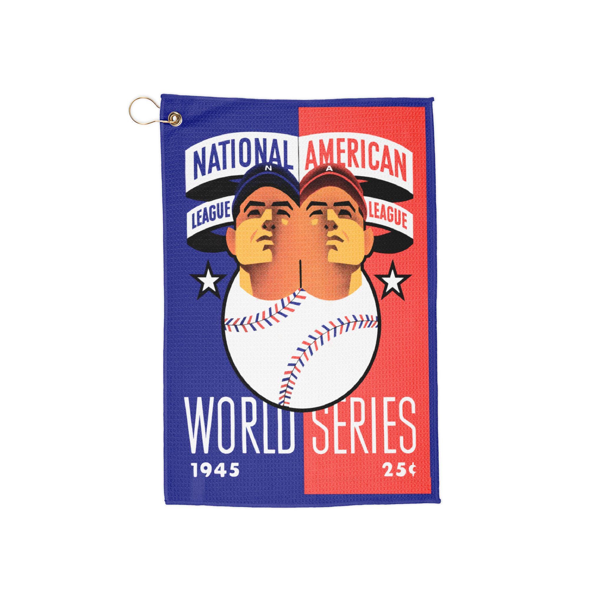 This vintage-inspired Golf Towel featuring the 1945 Baseball World Series design is perfect for sports enthusiasts and history buffs. Whether you're hitting the links, heading to the gym, or lounging by the pool, this multifunctional towel with its absorbent microfiber blend will keep you dry and stylish. Ideal gift for Father's Day, birthdays, or any sports-related occasion.