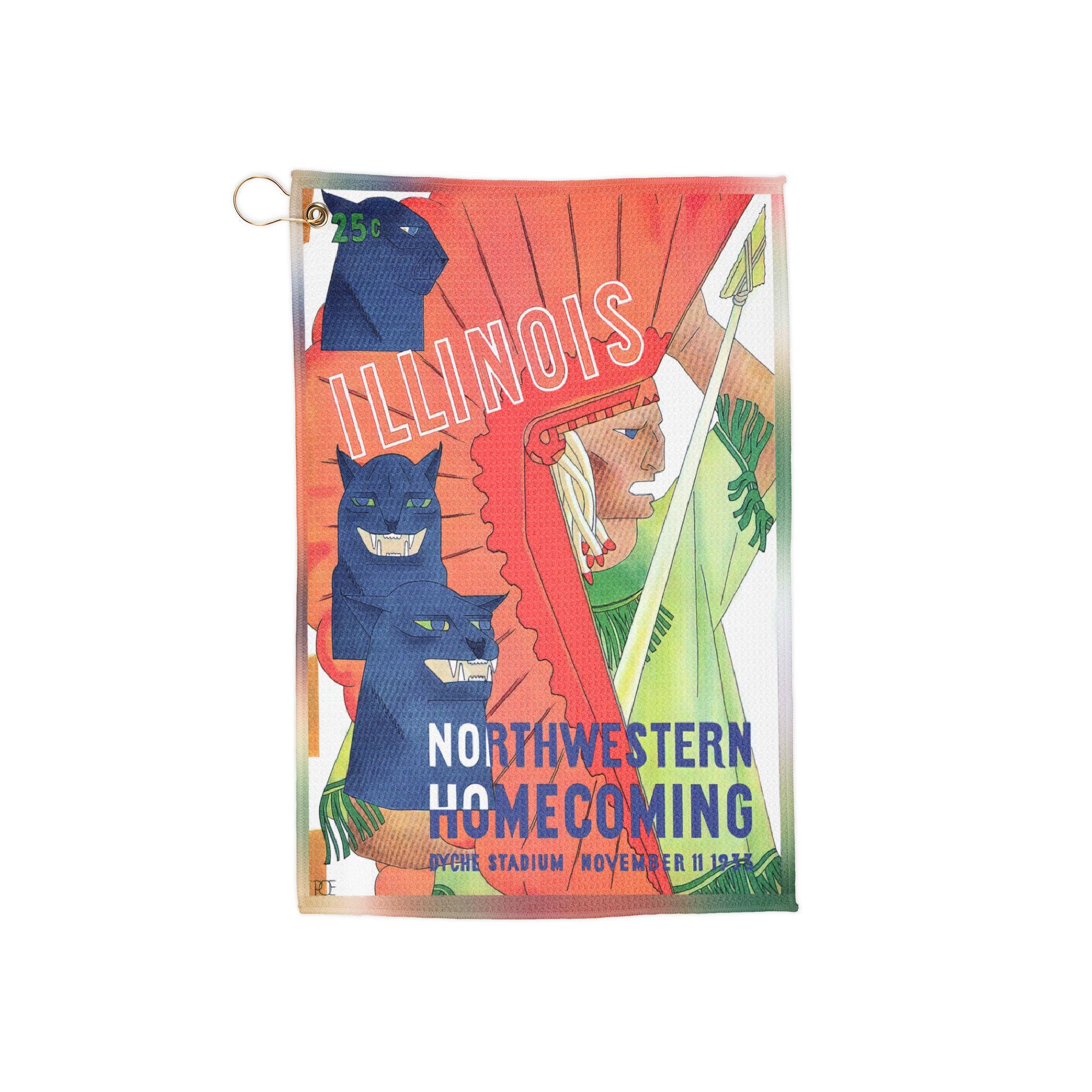 A crisp, vintage-inspired golf towel that channels the spirit of 1933 Northwestern football. The printed design carries a nostalgic athletic vibe — worn stadium banners, old-school typography, and the kind of quiet pride that comes from decades of tradition. Lightweight and quick to handle, it slips onto a bag or hooks to a cart with the gold grommet and ring, ready for a round or a long day at the driving range. It soaks up sweat and cleans clubs without fuss, then dries fast so it’s ready for whatever comes next. Bring a little collegiate history to your game and keep essentials close at hand between shots.