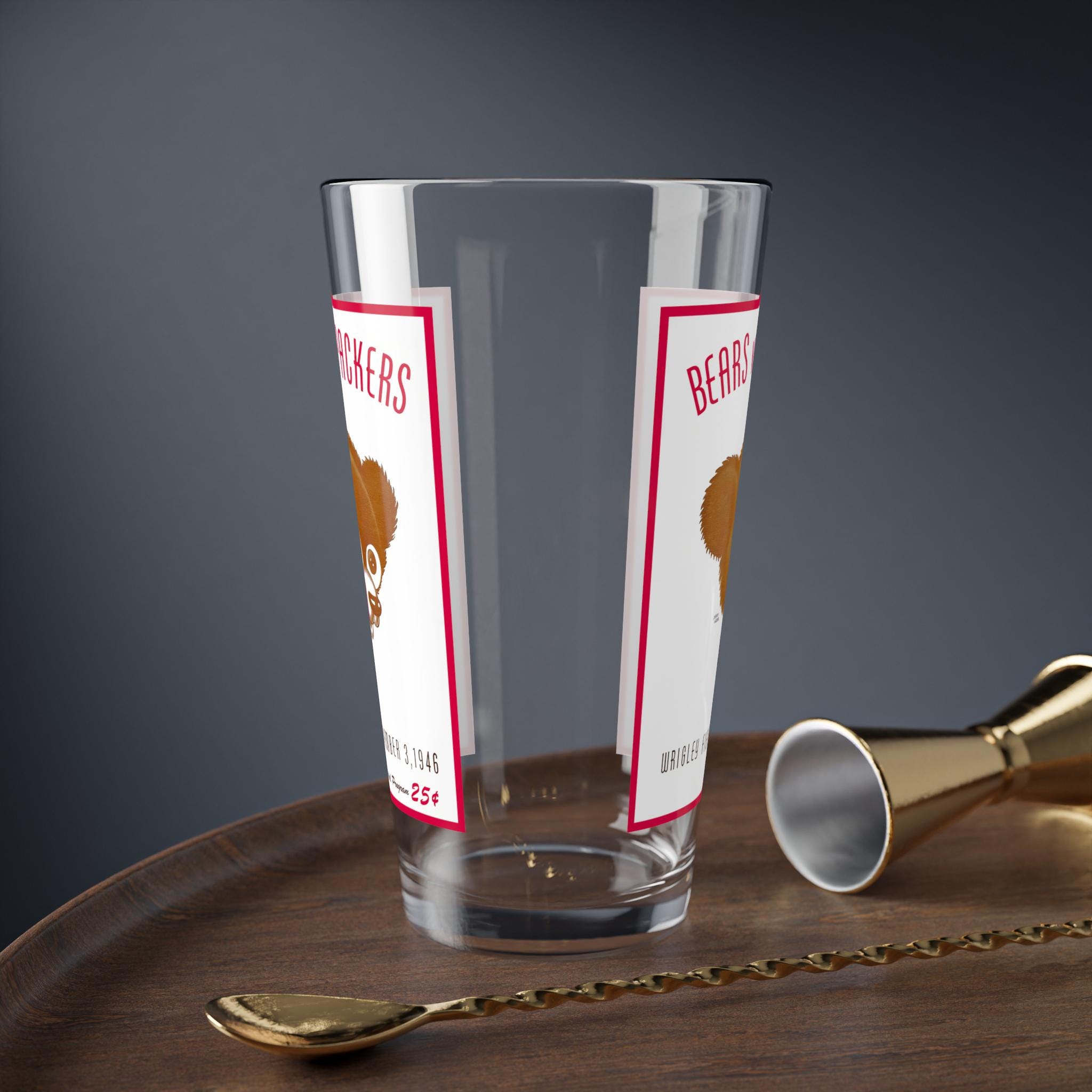 This 16oz mixing glass channels old‑school Chicago grit with a 1946 Bears‑Packers Wrigley Field motif — the roar of the crowd, the crisp fall air, the inked scoreboard. Hold it and you can almost feel the cold stadium concrete underfoot and the taste of a fieldside beer between plays. The heavy, solid base keeps it steady while you stir cocktails or sip a cold brew. Bright, vintage‑style colors reproduce the historic game artwork without looking washed out; the clear glass lets the drink do part of the storytelling. Whether you’re reliving a historic rivalry during a game day gathering or setting a nostalgic bar cart scene, this mixing glass fits into the ritual: steady in your hand, built to last, and made for the moments when sport and craft drinks meet.
