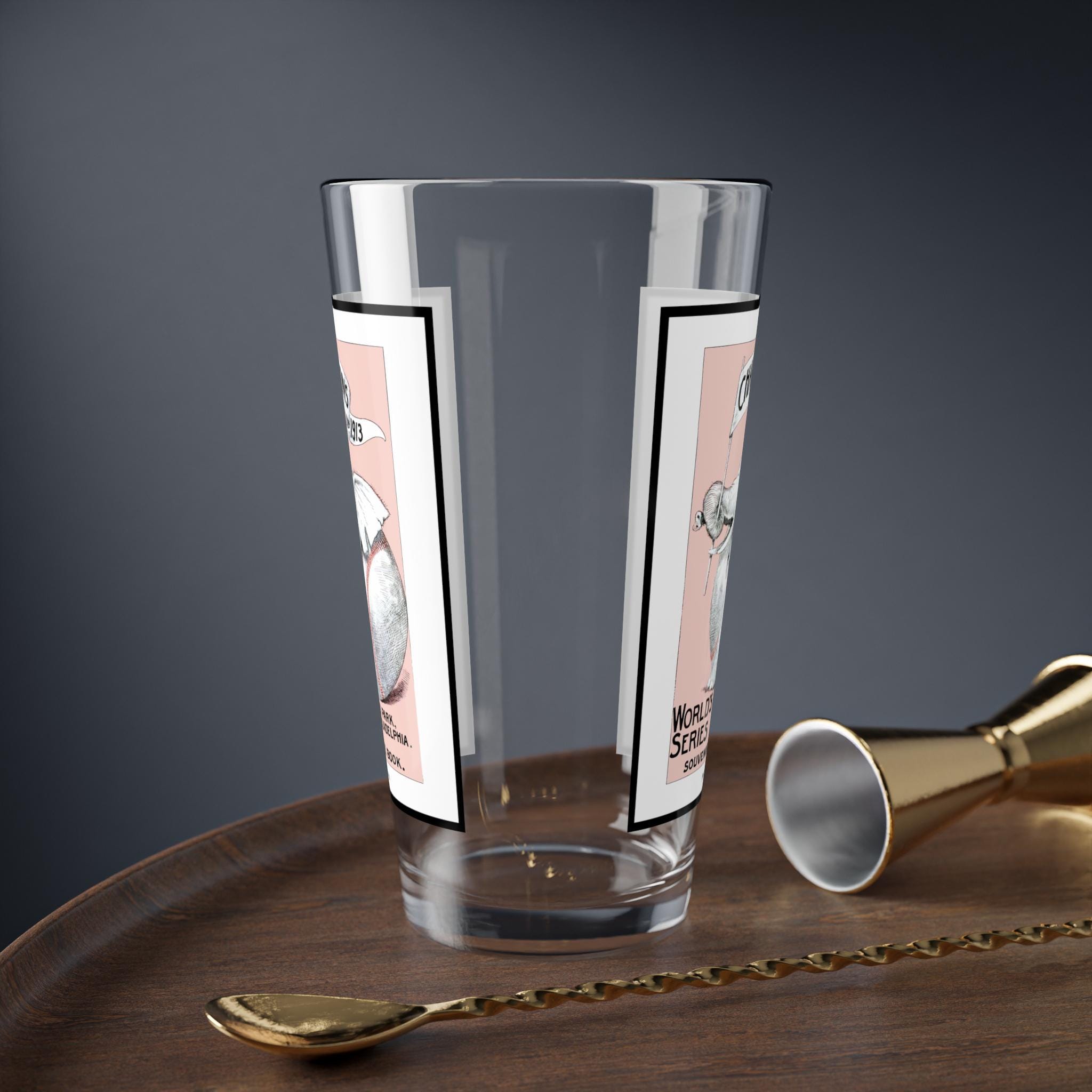 Step up your bar cart with a piece of sporting history. This 16oz mixing glass carries the 1913 World Series matchup between the Philadelphia Athletics and the New York Giants like a small, clear time capsule. Hold it up to the light and the crisp, vibrant artwork channels the grit of early baseball—ink-streaked scorecards, dusty ballparks, and the click of cleats—while the heavy, solid base keeps your pours steady. Whether you’re stirring a classic cocktail, rinsing it after a game-day toast, or setting it beside a vintage scorebook, it feels like a quiet nod to fans who love the story behind the stat line.