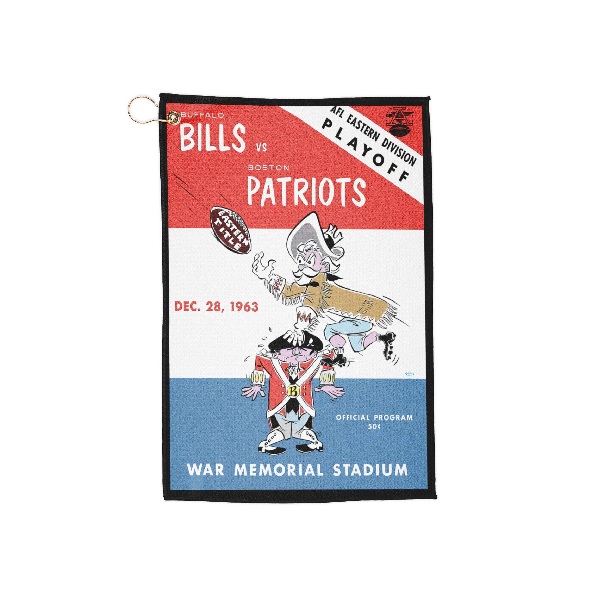 On the green or in the clubhouse, this golf towel carries a quiet piece of sports history. The 1963 Boston–Buffalo motif feels like a faded program tucked into a scorecard: low-key, nostalgic, and full of grit. Lightweight microfiber dries quickly after a rain-shortened round. The gold grommet and ring hang from your bag with a touch of old-school class, while the one-sided print hints at a story without shouting. Bring it to weekend matches, vintage-themed outings, or anytime you want a functional piece that nods to the past.