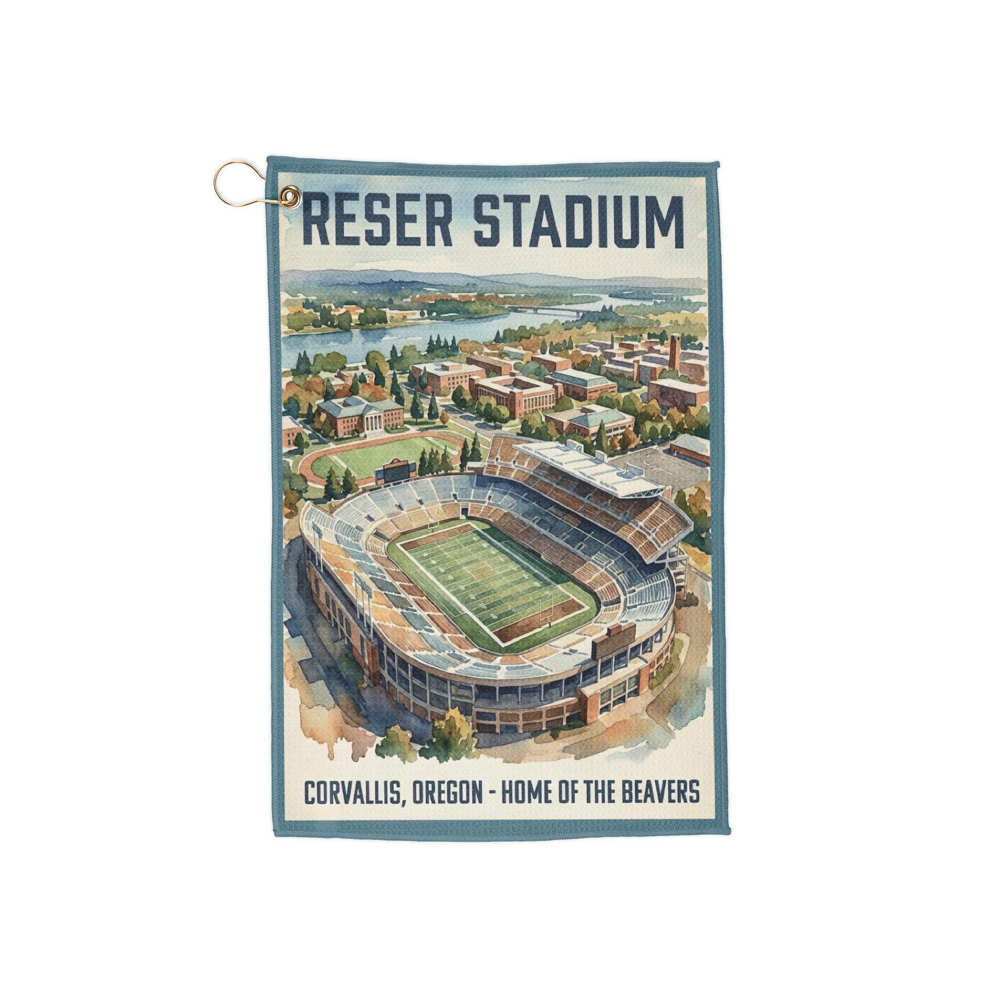 Wear the roar of the crowd with this compact, high-performance golf towel inspired by Reser Stadium. The microfiber weave soaks up sweat and spills in a flash, while the gold grommet and ring keep it clipped to your bag for every walk from tee to green. At 16" × 24", it’s large enough to dry clubs, wipe grips, or freshen hands between shots, yet small and light enough to travel with. The single-sided print carries the spirit of Oregon State football — a quiet confidence that surfaces when the pressure’s on. Bring the stadium energy to morning practices, weekend rounds, or tailgate rituals; it’s made to handle the elements and the moments that matter on and off the course.