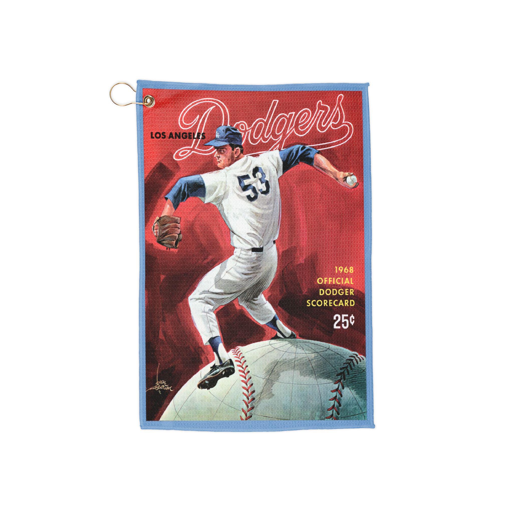 These vintage-inspired golf towels channel the grit and charm of 1968 Los Angeles baseball — a subtle nod to mid-century ballpark style for anyone who carries the game with them. Lightweight but highly absorbent, the microfiber nap soaks up sweat and water quickly, while the gold grommet and ring keep the towel clipped to a bag or cart where it’s always within reach. The single-sided print shows off the retro design without bulk. Bring a little ballpark history to the course, range, or practice green; it slips onto a bag, dries clubs and hands fast, and carries a clean, lived-in look every time you head out.