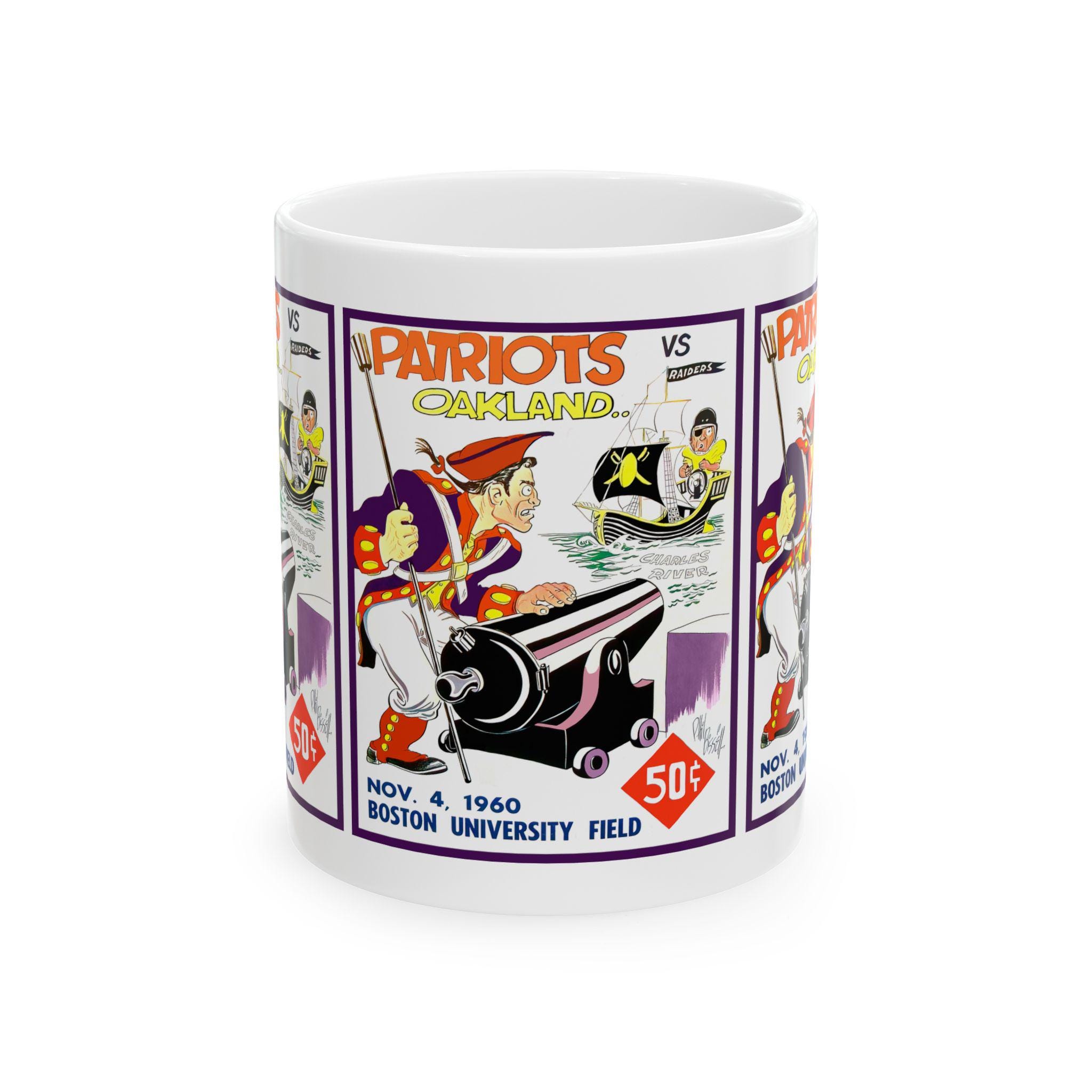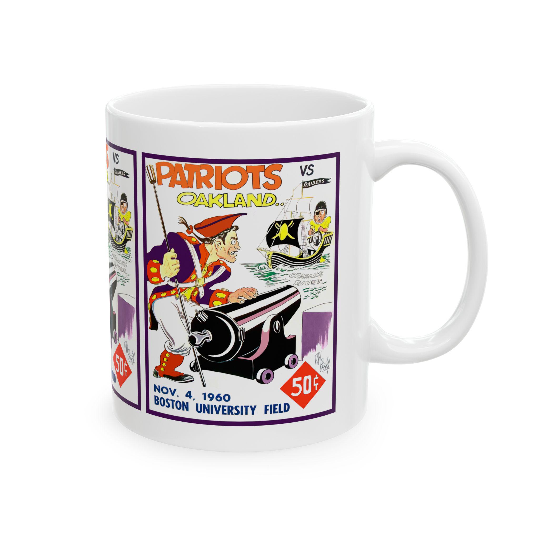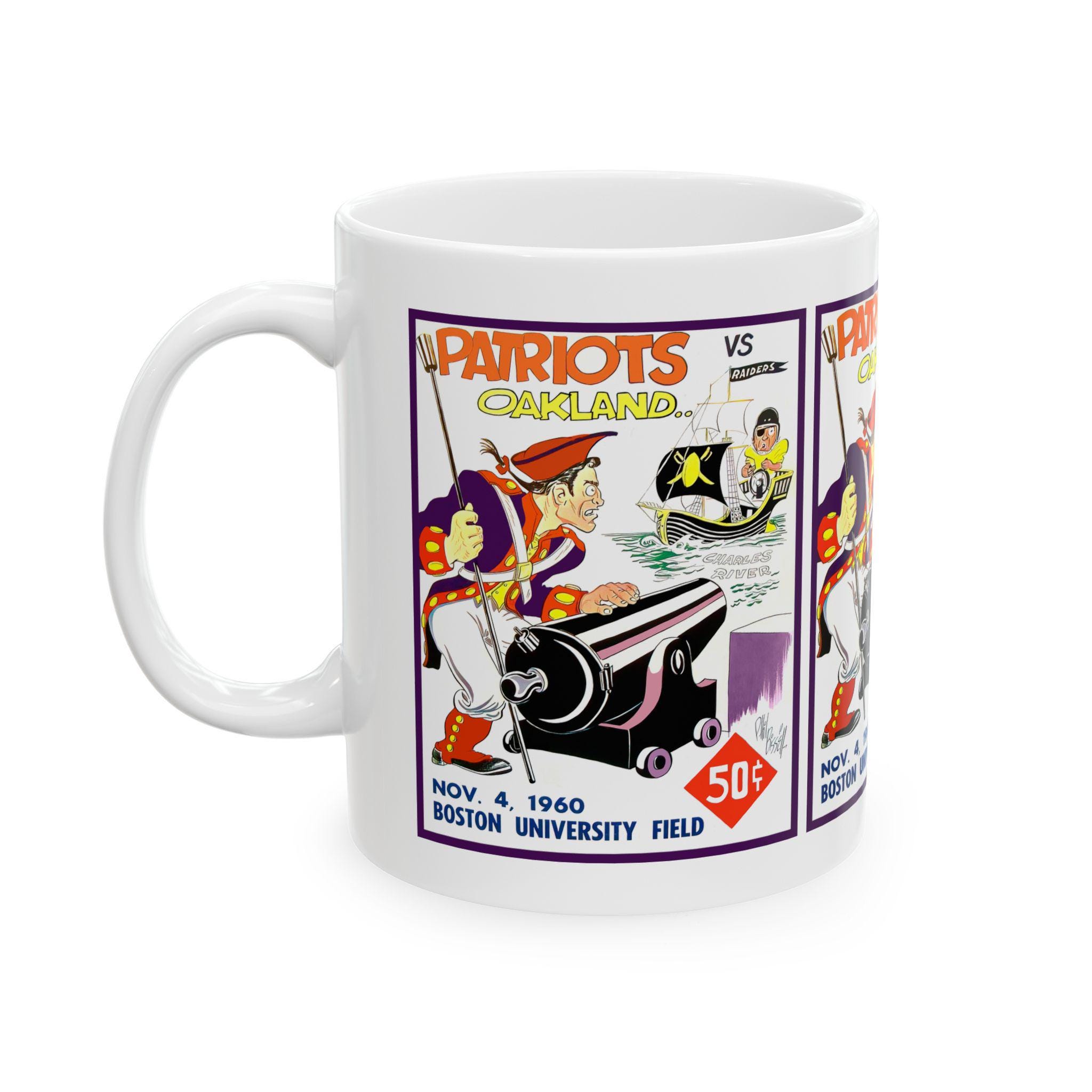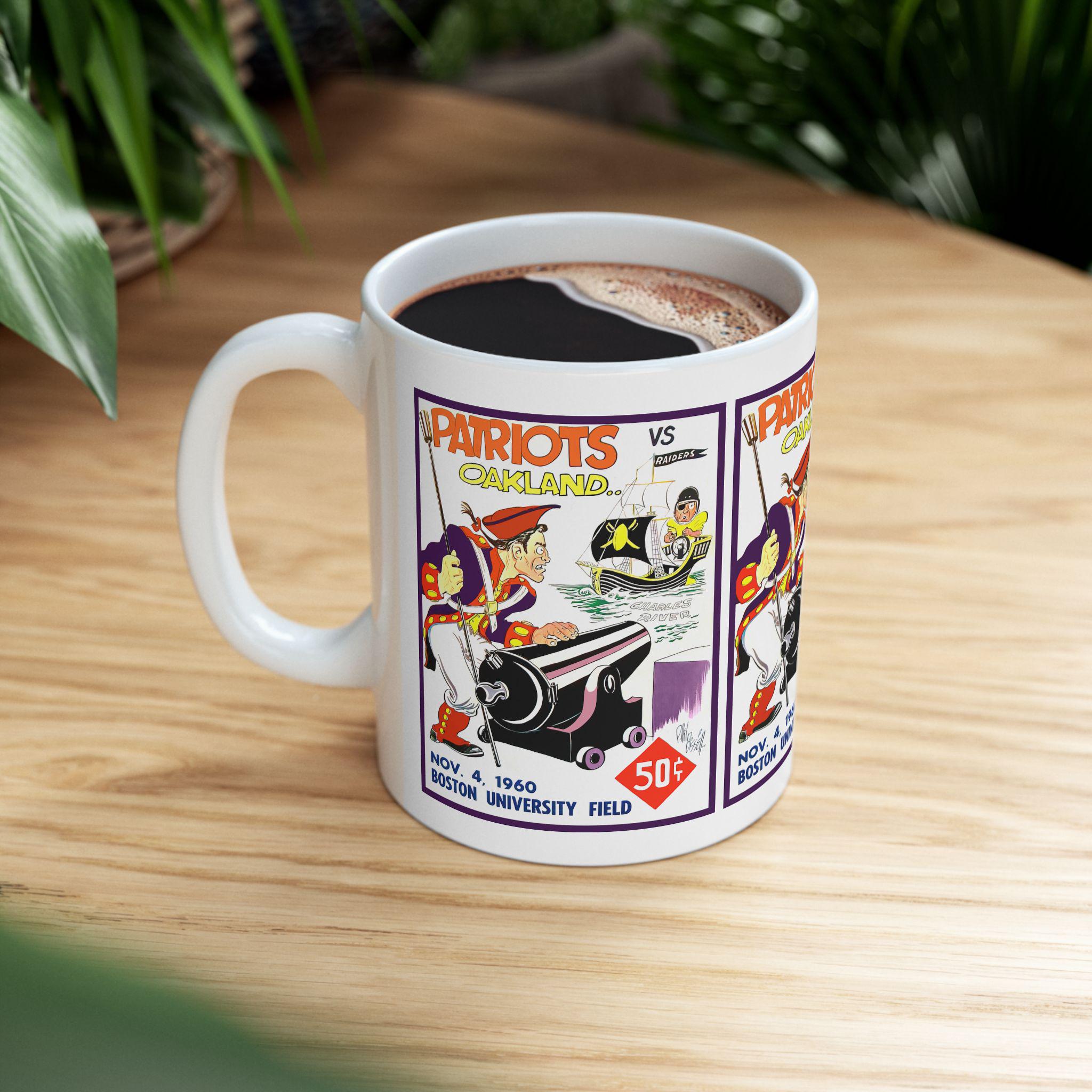 This glossy ceramic mug brings a slice of 1960s football nostalgia to your morning routine. The bold Boston–Oakland motif—rendered in bright, crisp inks—feels like a vintage program tucked into your hands: worn-in energy, stadium lights, and that charged hush before kickoff. It sits solidly in your grip with a comfortable C-handle and a shiny finish that shows off the print. Warm coffee, late-night film-room breakdowns, or quiet mornings on the porch—this mug settles into those moments and speaks to anyone who loves old-school football lore and the stories behind city rivalries. Microwave- and dishwasher-safe, it’s built for everyday use while keeping the artwork vivid season after season. Lead- and BPA-free, it’s a practical throwback you can drink from without worry.