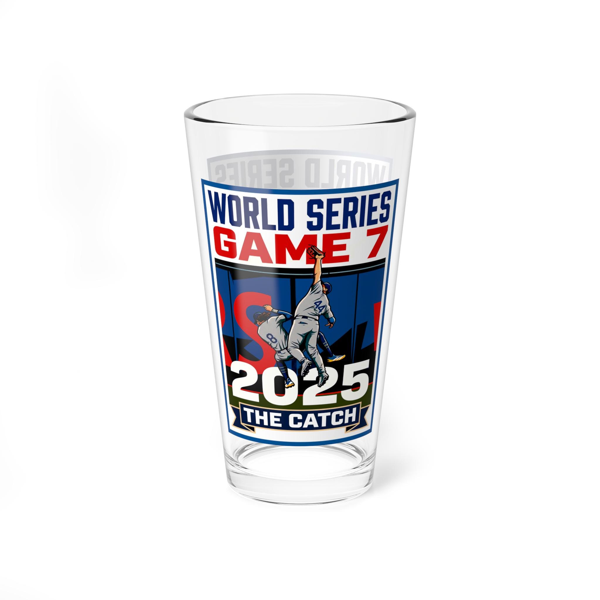 Raise a glass to the final inning. This 16oz mixing glass celebrates Game 7 of the 2025 Baseball World Series — “The Catch” — with bold, vibrant artwork that brings the play back to life. It sits solid and reassuring in your hand, the heavy glass base grounding late-night cocktails and cold beers alike. Use it to mix a classic old-fashioned or to sip while you replay the highlight reel with friends. The clear glass keeps the focus on the action artwork while the durable construction and dishwasher-safe finish mean you can use it often without worry. Slide it onto your bar cart for game-day rituals, backyard watch parties, or quiet evenings when you want a little stadium energy at home.