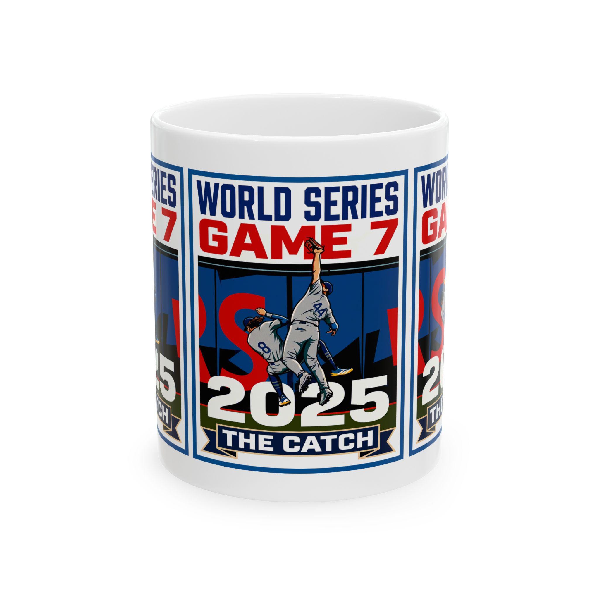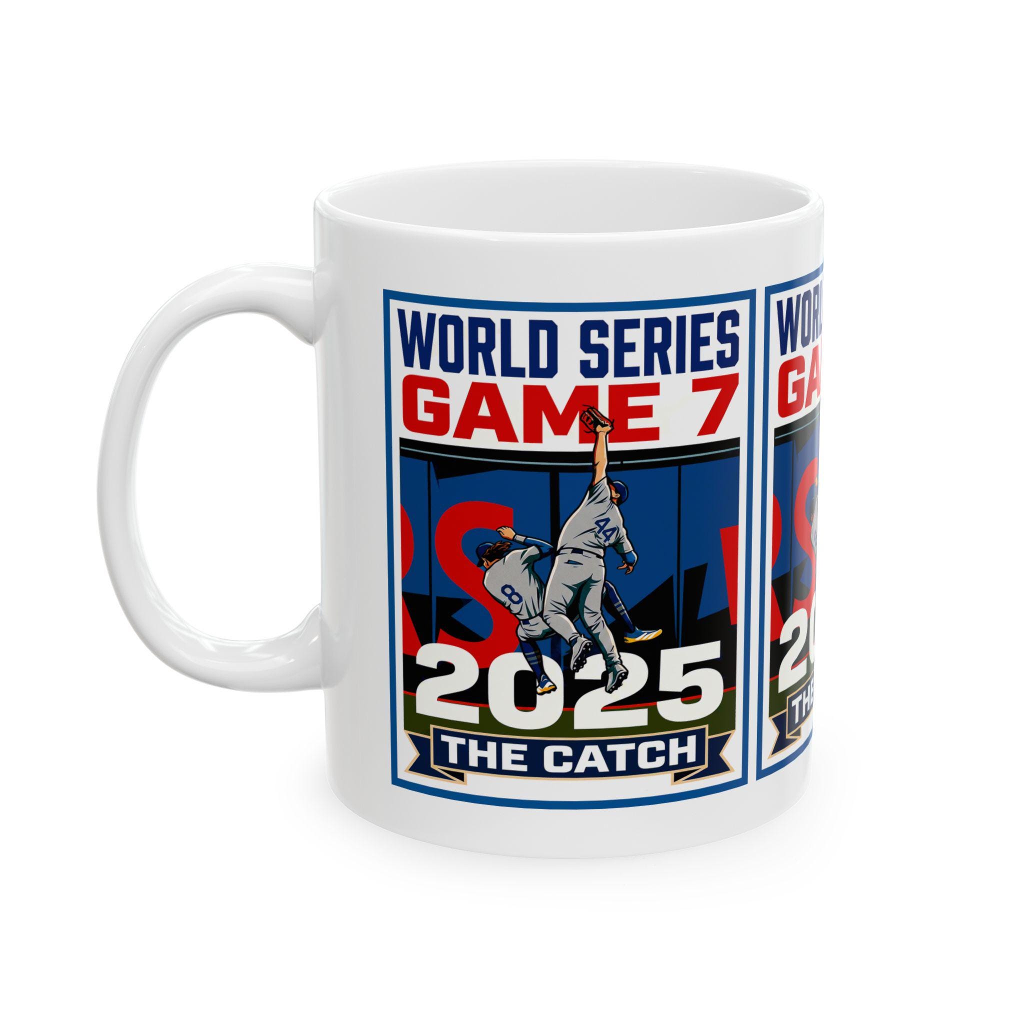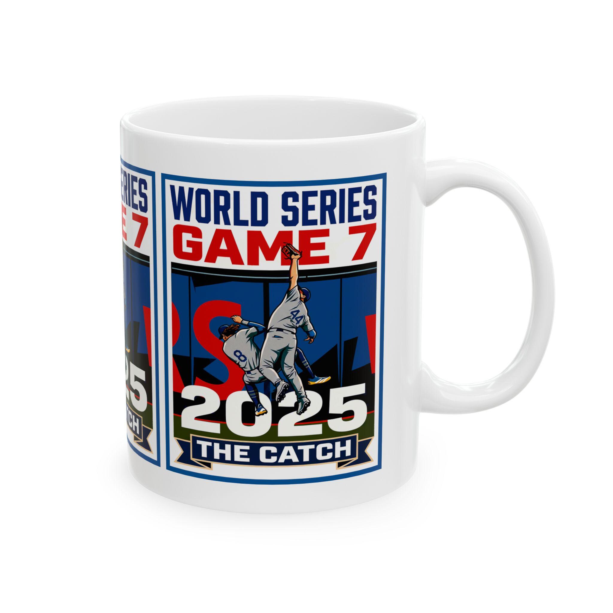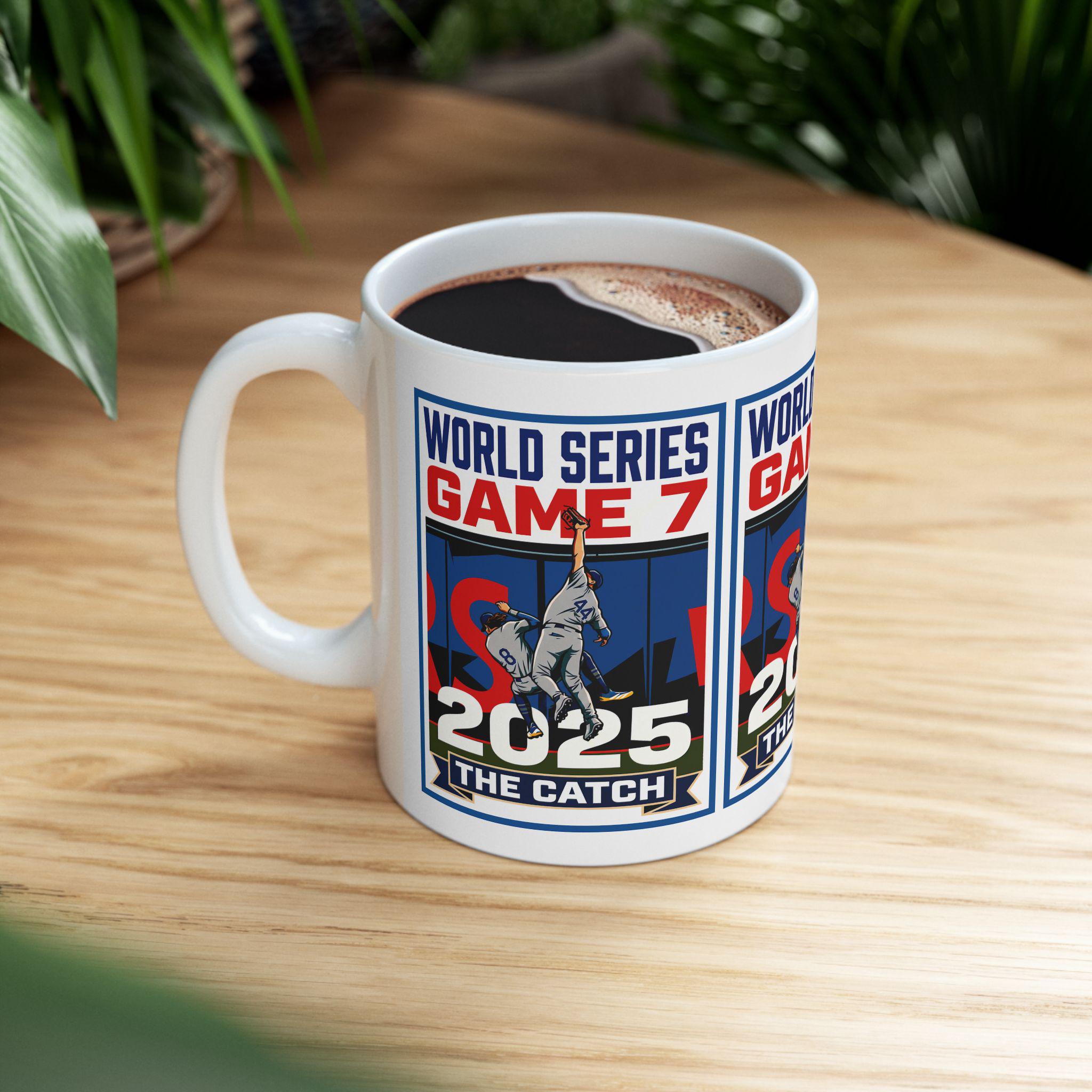 Feel the roar of the crowd and the crack of the bat every morning with this ceramic mug celebrating the 2025 Baseball World Series — Game 7, The Catch. Thick white ceramic brings the scene to life with vivid, glossy printing that holds up to everyday use. The comfortable C-handle sits easily in your hand while the bold colors depict that defining moment: tension, motion, and the triumphant catch frozen in time. It’s the kind of mug you reach for on game days, during late-night recaps, or whenever you want to relive the play-by-play with a hot coffee in hand. Whether you’re prepping for a watch party or settling in to analyze every replay, this mug speaks the language of fans who live for the seventh game and the plays that decide it.