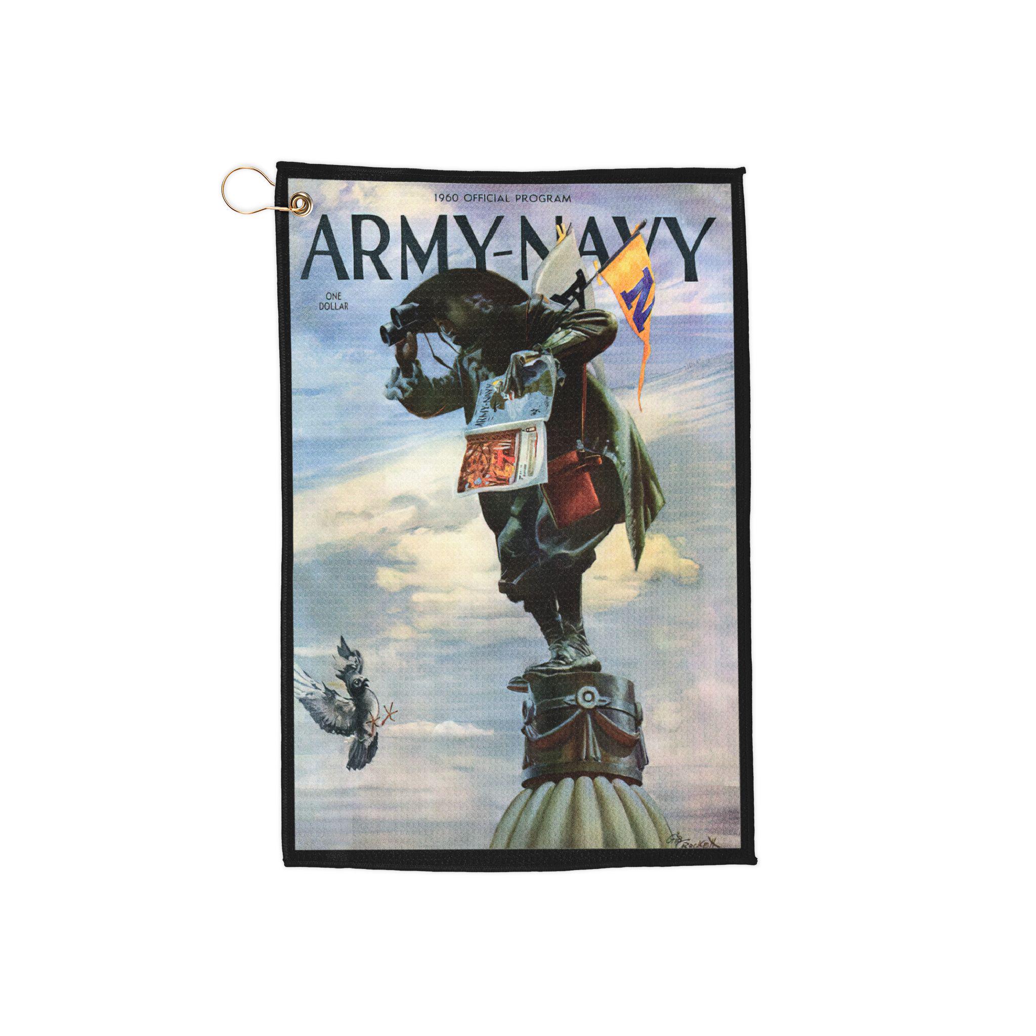 A rugged, nostalgic golf towel that carries the grit and camaraderie of mid-century military football. The 1960 Football Army-Navy design brings a worn-in, vintage playbook vibe — the sort that slides over a bag, catches stray sweat, and reminds you of rivalries played under wide skies. Lightweight and quick to dry, this towel moves with you from tee to travel. Slip it onto a bag with the gold grommet and ring, wipe down clubs between shots, or hang it off the cart as a small emblem of competitive spirit. It’s the kind of accessory that reads like a quiet salute to long afternoons, close matches, and the people who still play for the love of the game.