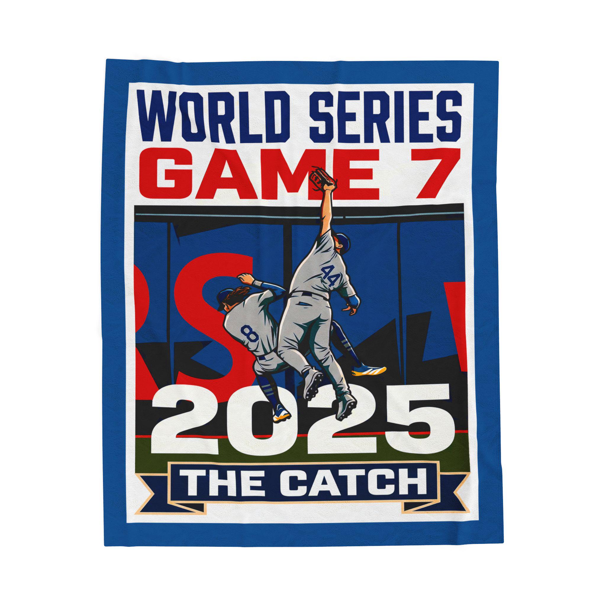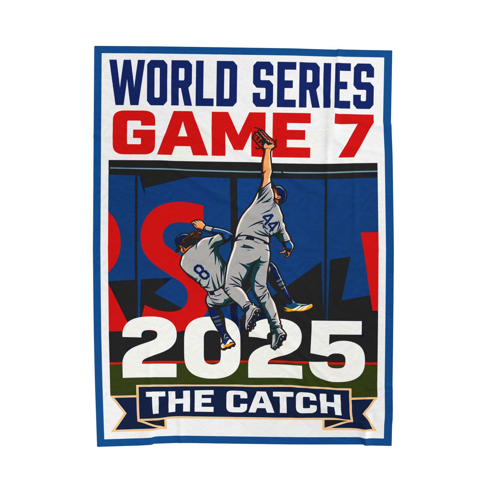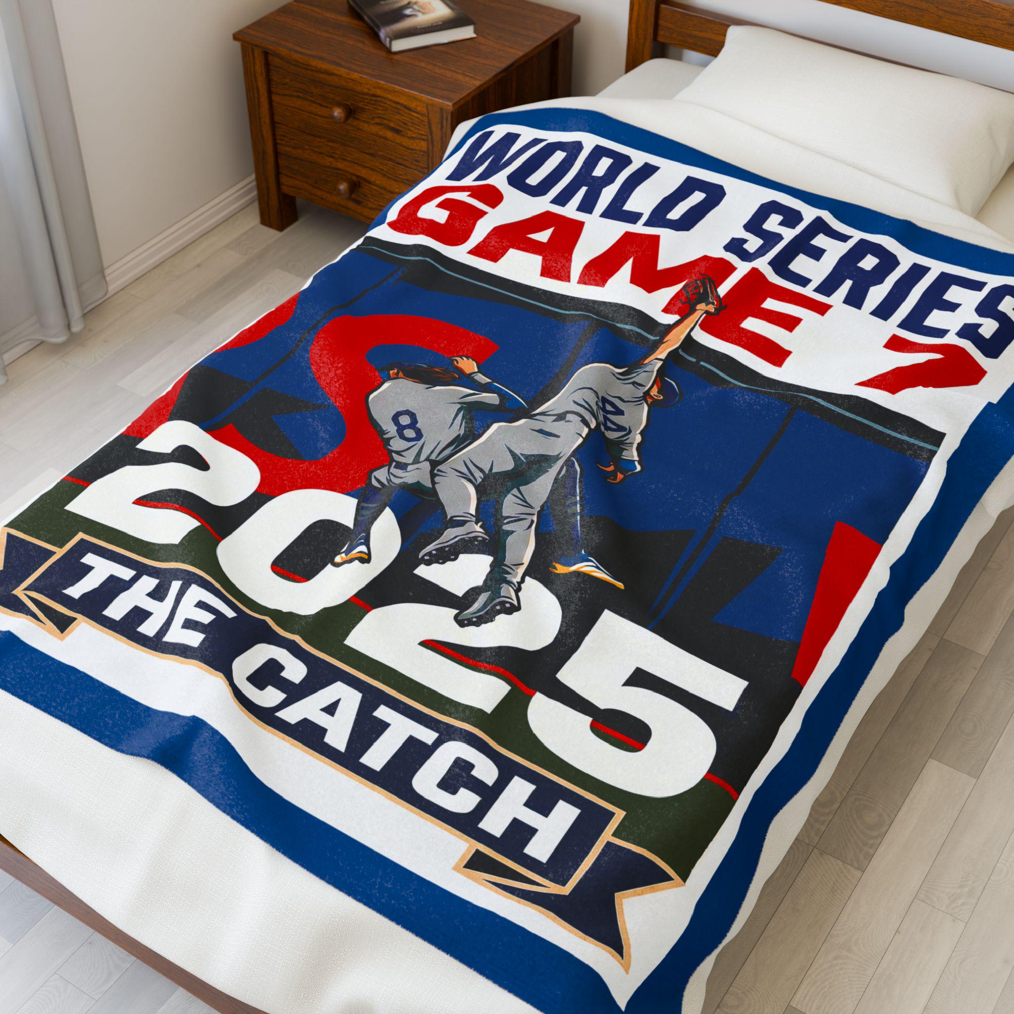 Wrap yourself in the hush of the seventh game—this plush velveteen blanket carries the quiet electricity of a defining baseball moment. The soft, medium-weight fabric settles around your shoulders like the shared breath before a pitch. Printed in vivid detail on one side, the design recreates the memory of the 2025 Baseball World Series Game 7 — The Catch — turning a living room into a private stadium of nostalgia. It’s tailored for adult fans who treasure clutch moments, late-night rewatch rituals, and the tactile comfort of warm fabric on cool evenings. Use it to settle into postgame conversations, keep you cozy during slow innings, or drape across a couch as a subtle tribute to an unforgettable play. The blanket’s durable double-needle stitching and resilient polyester blend mean it stands up to season-after-season use, while compliance testing gives peace of mind about safety standards. If you live and breathe baseball, this piece becomes part of your ritual: the throw you reach for when highlights start, the layer that turns memory into touch.