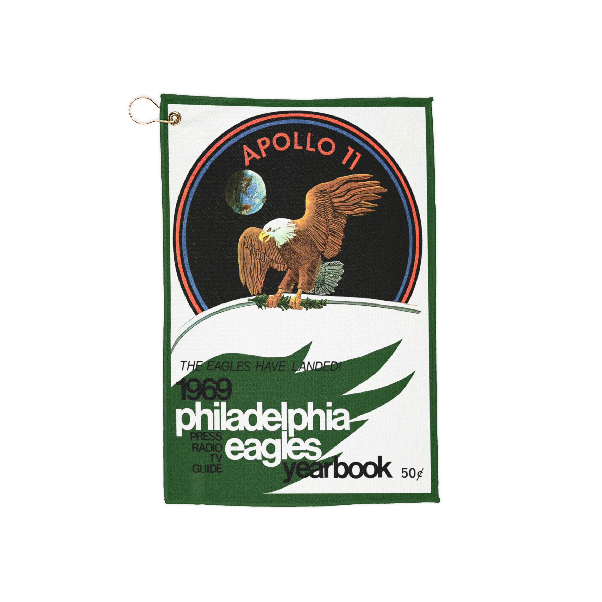 A tribute to a moment frozen in time — this golf towel channels the grit and glory of 1969 football: "The Eagle has Landed." It hangs steady on your bag, worn by wind and sun, catching the sweat and spit of a long day on the course. The graphic feels like old locker-room paint: bold, slightly weathered, and confident. Bring it to weekend rounds, sunrise practices, or casual outings to the clubhouse. It’s a tactile piece that settles into the rhythm of the game — wipe your hands, dry your ball, hang it by the grommet, and keep playing.