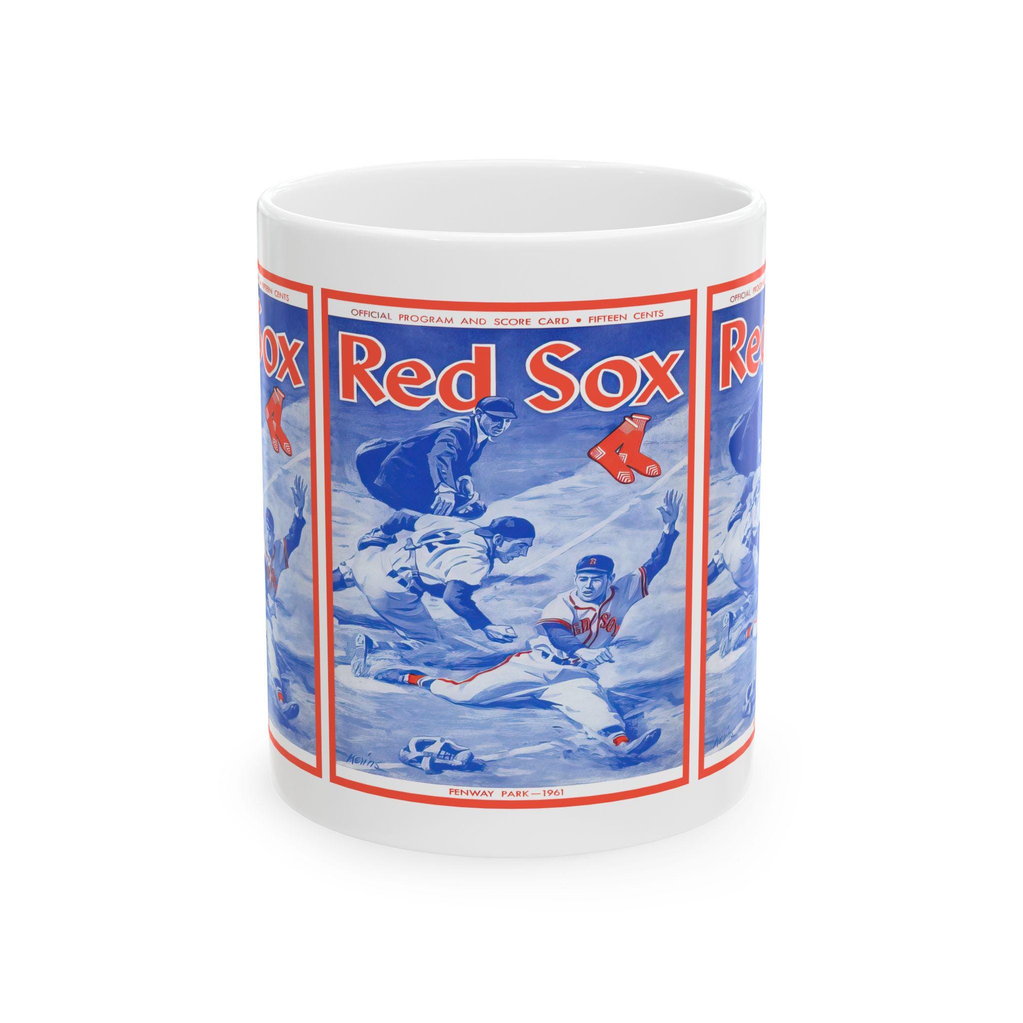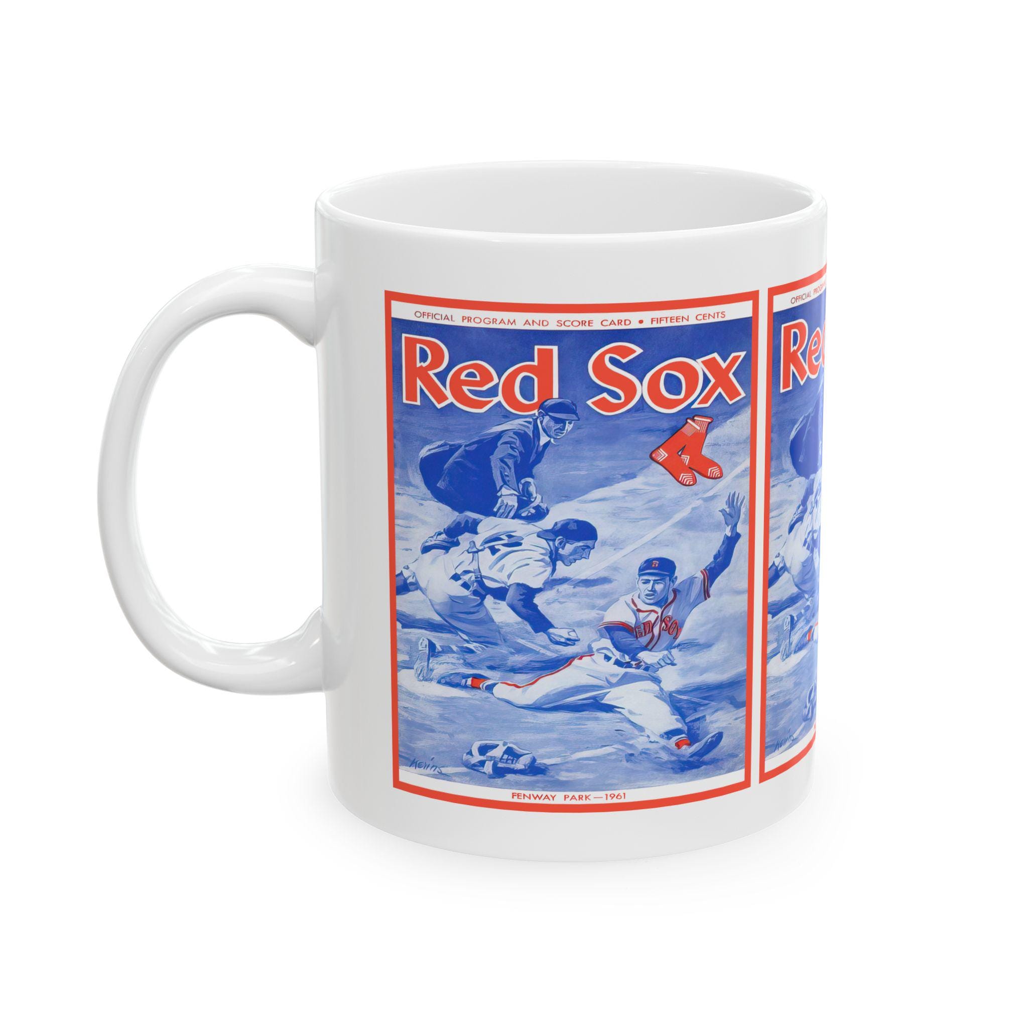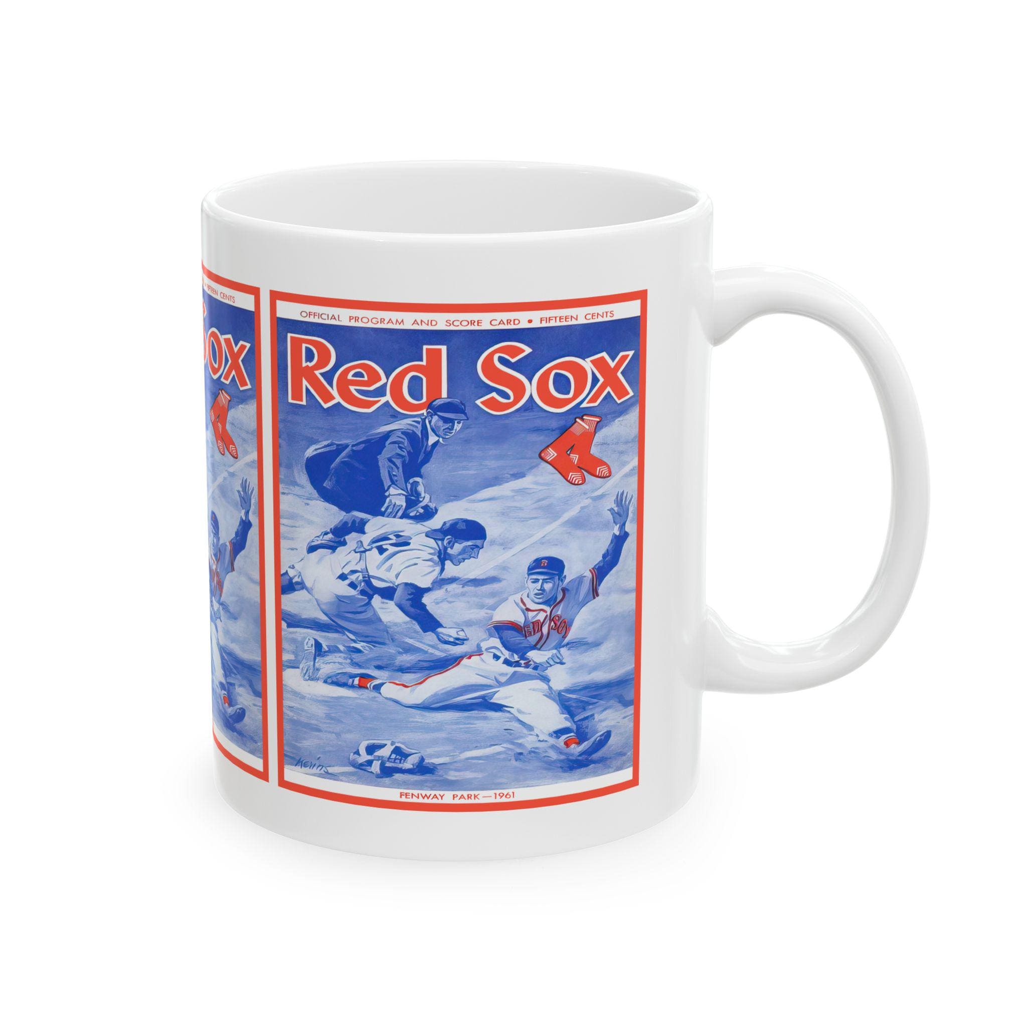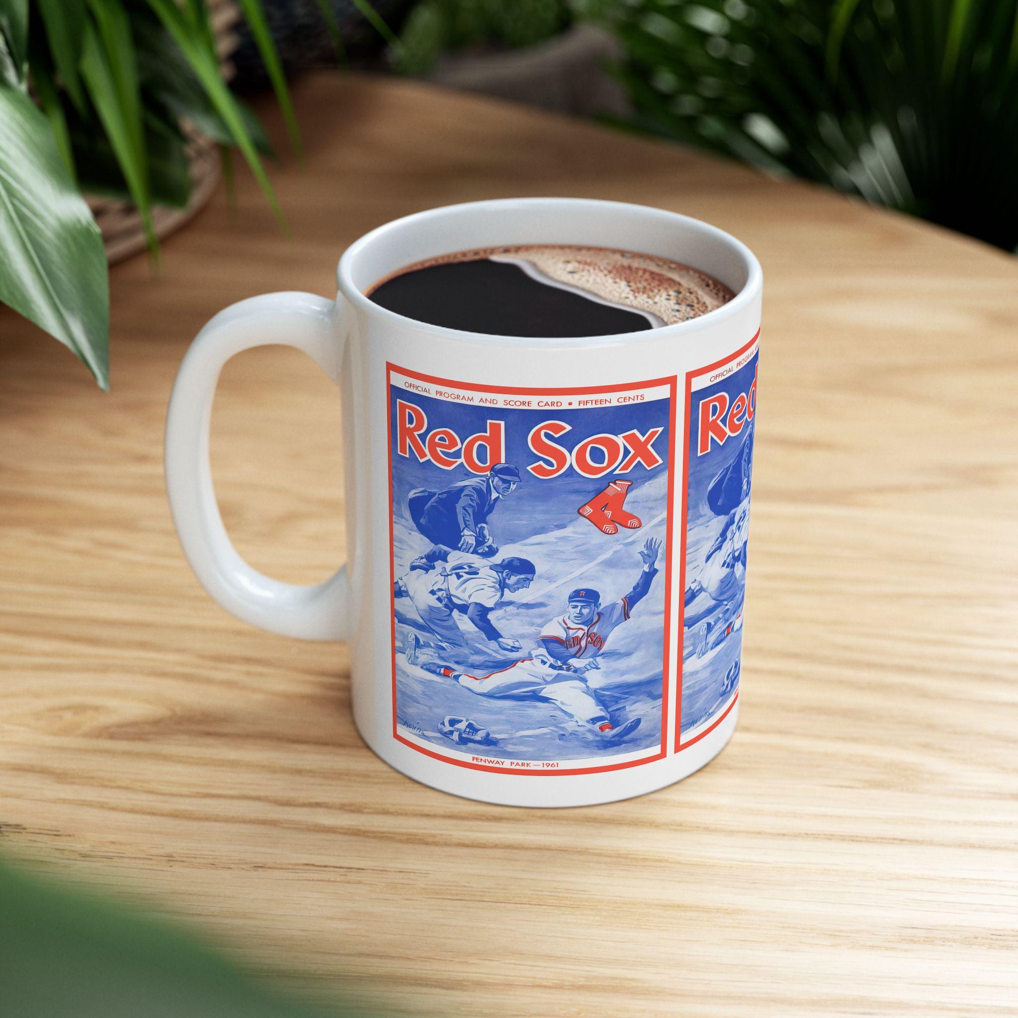 This glossy ceramic mug brings a piece of 1961 Red Sox baseball history to your morning routine. Bold, vintage-inspired red type sits crisp against bright white ceramic, turning a simple coffee moment into a small ritual of nostalgia. It feels like sun through the stadium rafters, the quiet pre-game tension, and the satisfying crack of a ball off the bat — all condensed into a warm cup you can hold. For Red Sox fans, collectors of baseball ephemera, or anyone who loves retro sports style, this mug slips easily into morning lineups, game-day setups, and cozy evenings replaying classic moments.