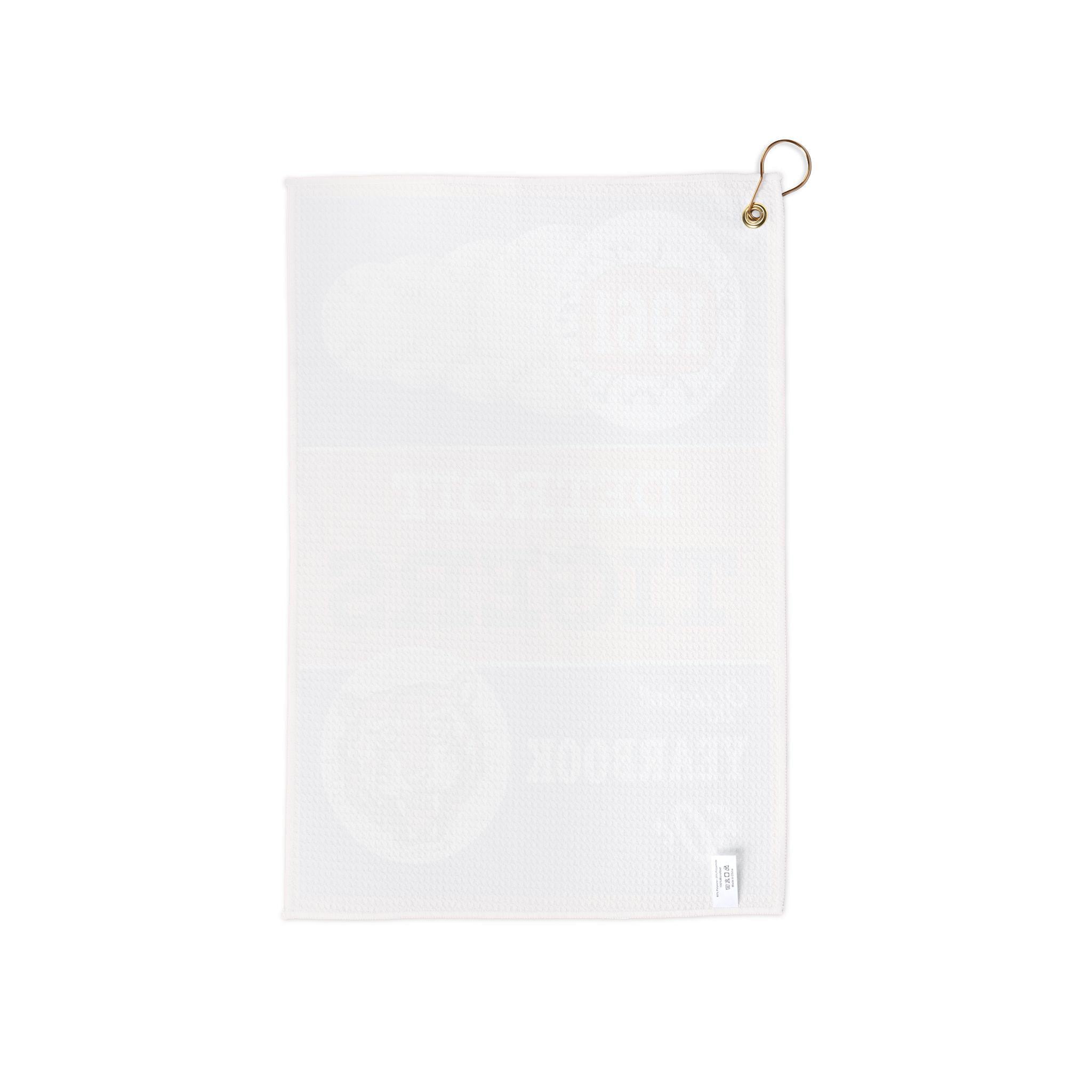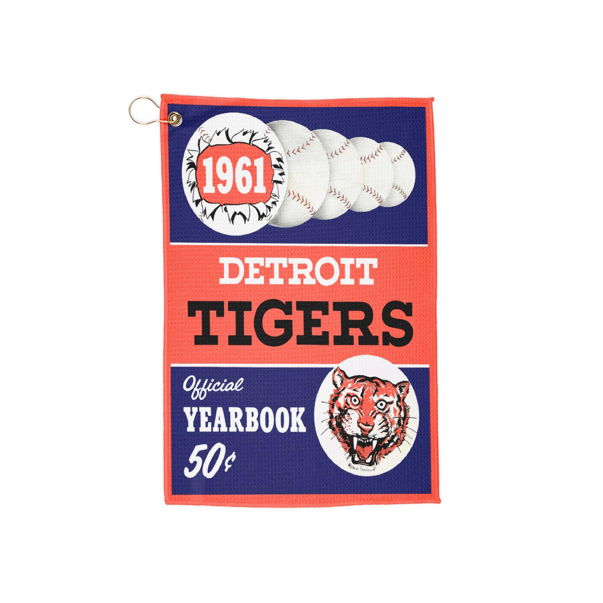 Carry a little vintage dugout with you on the course. This golf towel is printed with a 1961 baseball Tigers design that feels like a weathered pennant — sun-worn ink, classic typography, and quiet clubhouse energy. It hangs from your bag by a gold grommet and ring, ready between holes to wipe grips, dry hands, or dab at rain without losing its retro charm. Lightweight and quick-drying, it slips into travel kits and daypacks. Bring a bit of ballpark nostalgia to early morning rounds, clubhouse hangs, or weekend getaways.