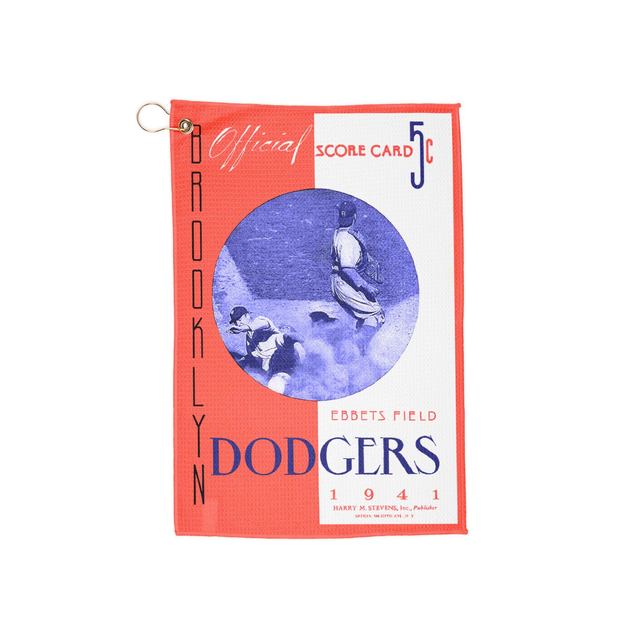 Carry a piece of baseball history onto the green. This golf towel draws from the 1941 Brooklyn Dodgers era, with a vintage, worn-in aesthetic that feels like an old stadium pennant draped over your bag. It hangs from the gold grommet and ring, ready to swat away dew from early-morning fairways or wipe a sweaty grip after a long drive. For players who appreciate heritage and subtle nods to the game’s past, this towel blends function with story — a compact, absorbent companion that looks intentional on the cart and comfortable in your hands.
