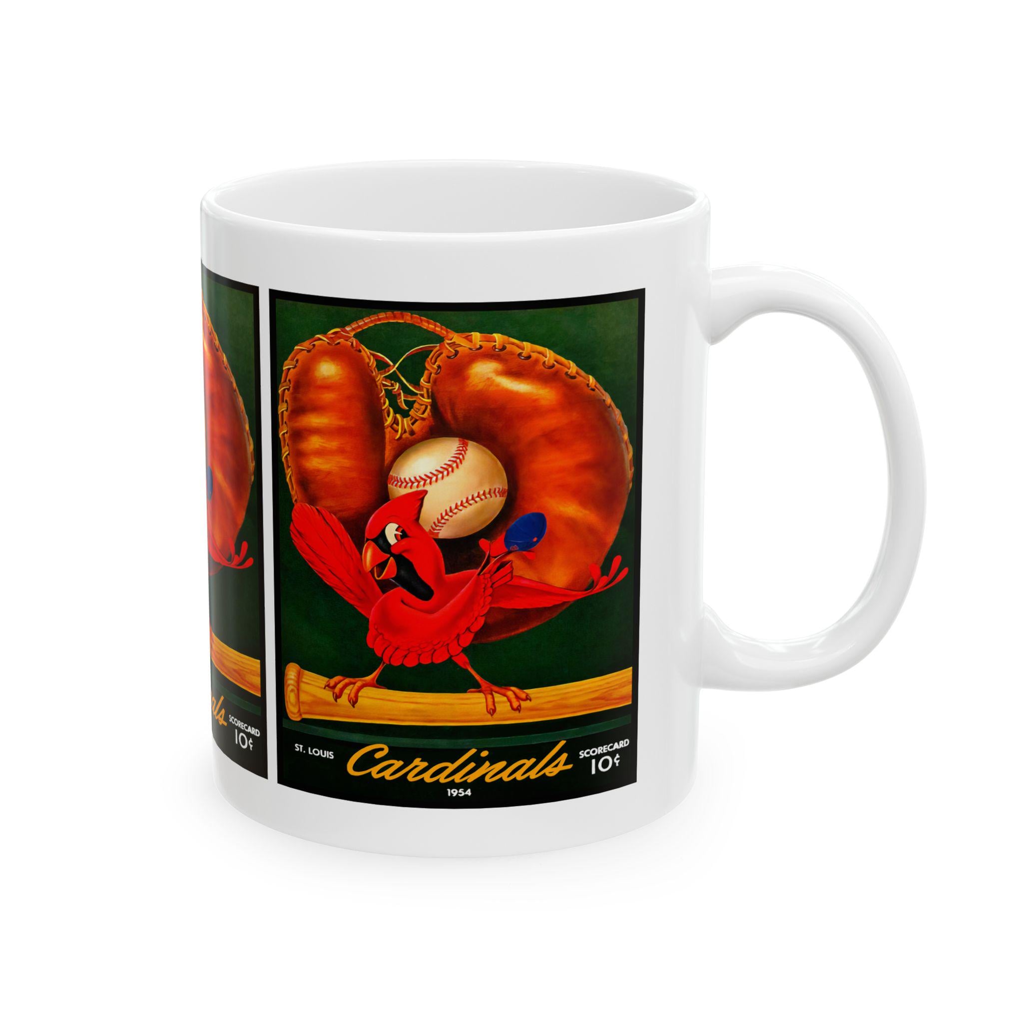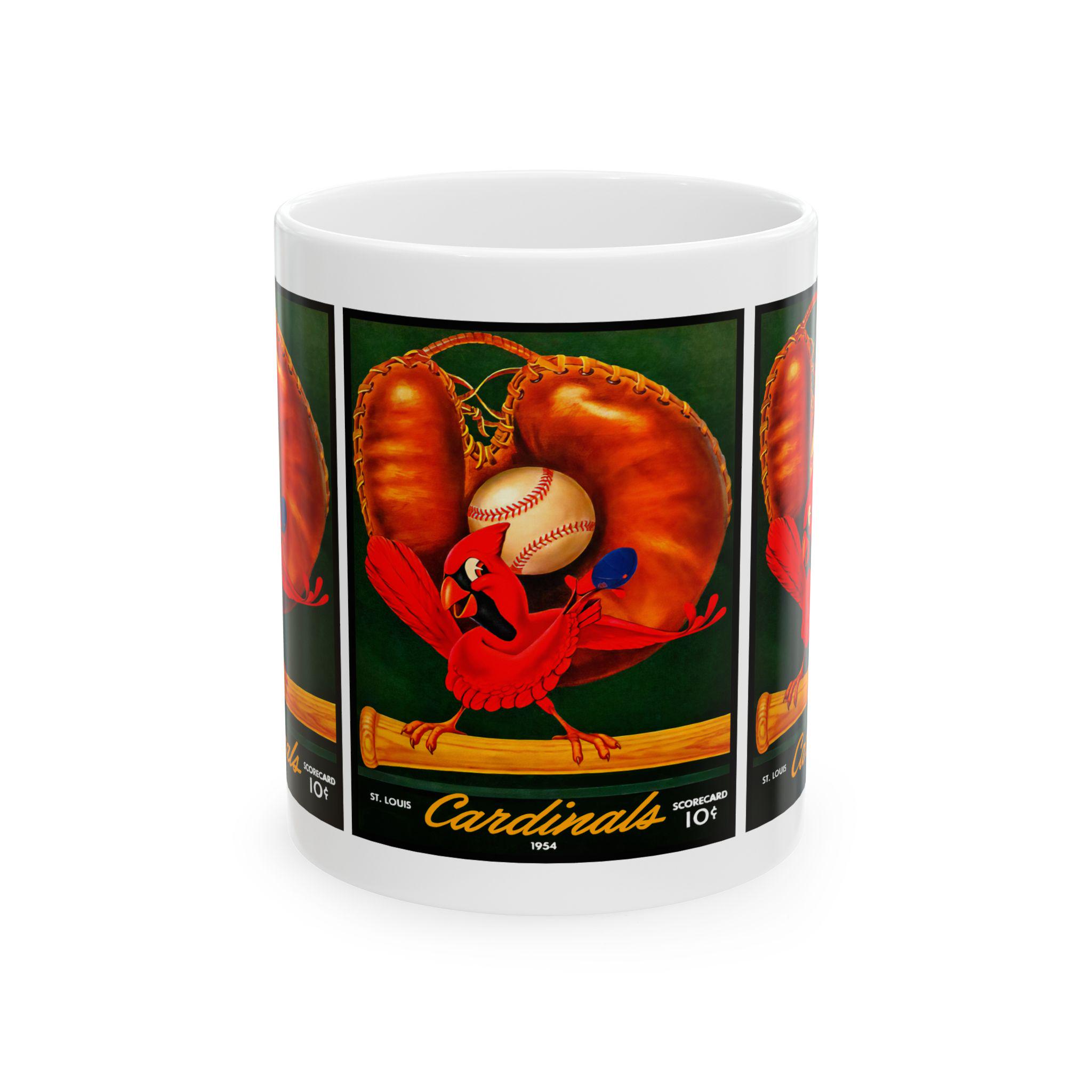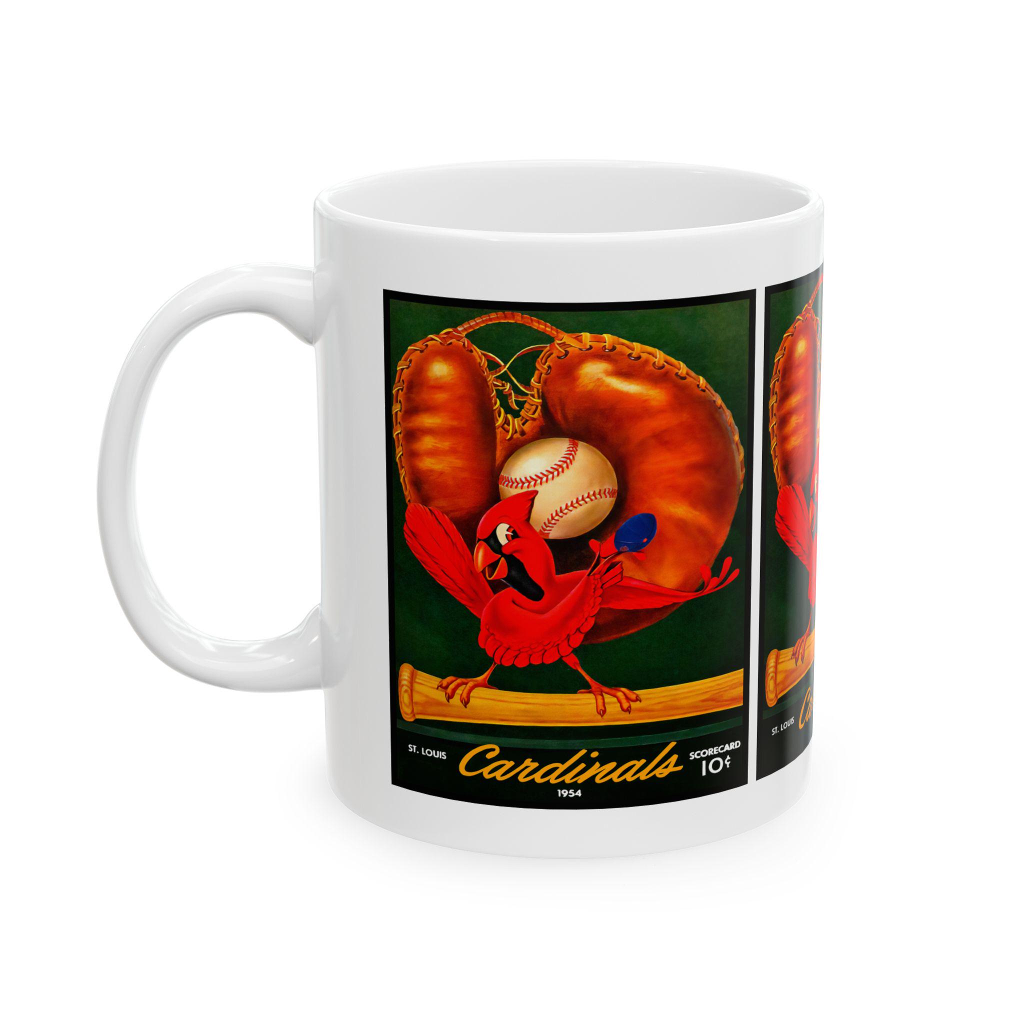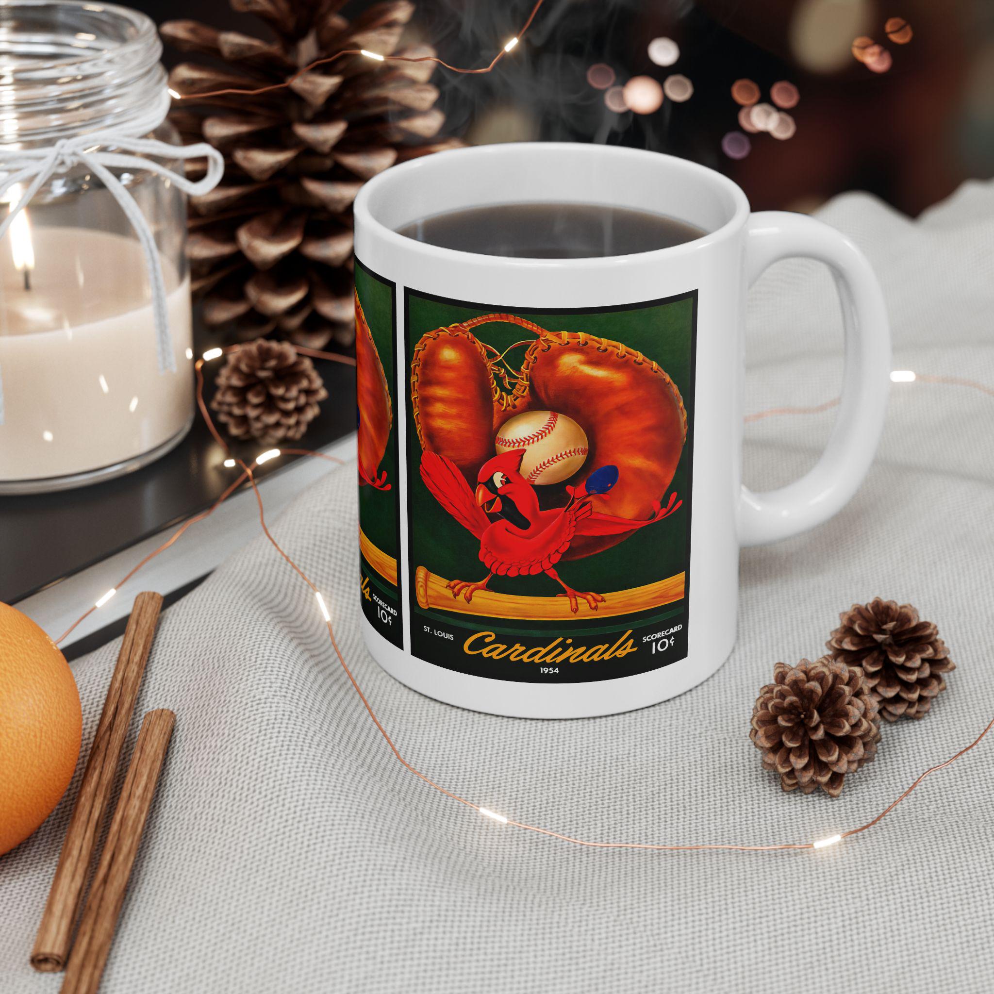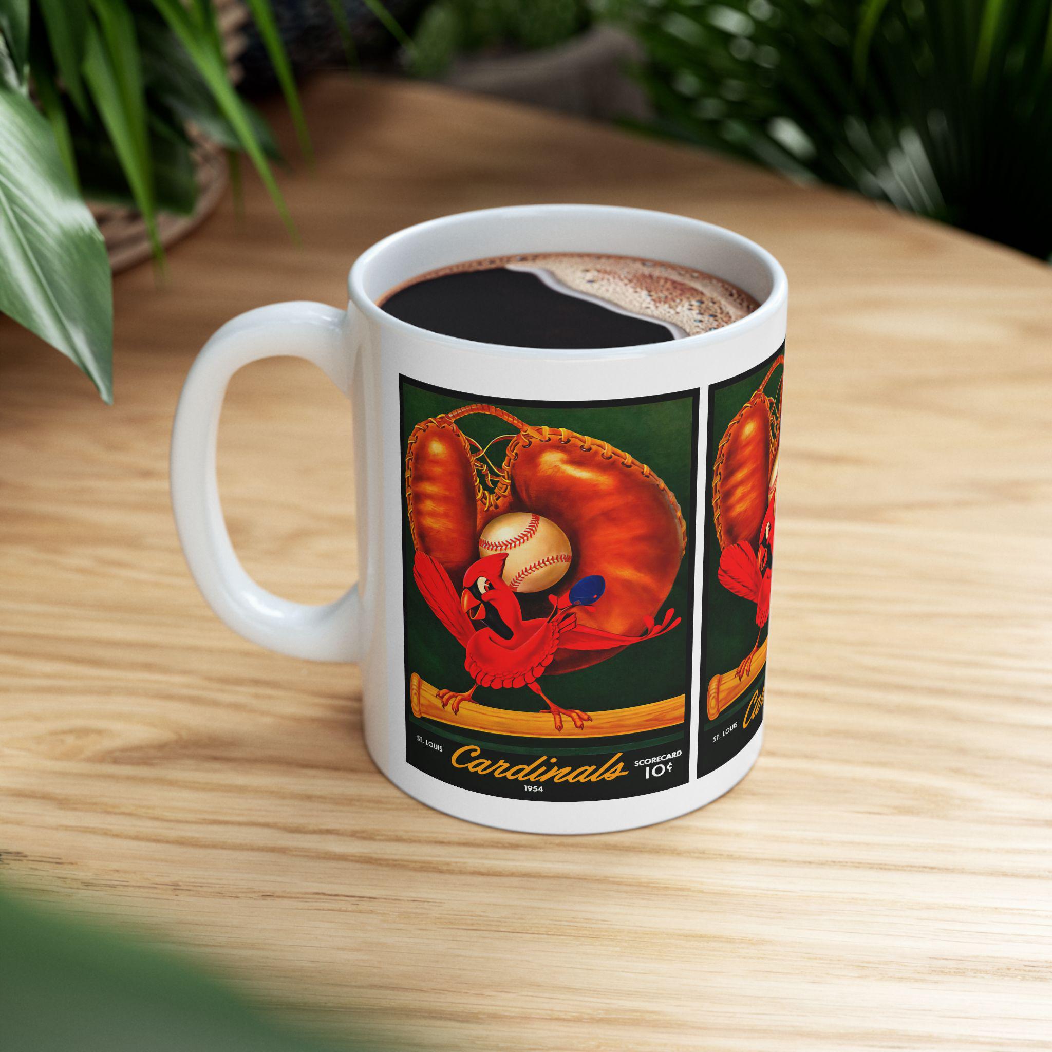 Sip back into the golden age of baseball. This glossy ceramic mug carries a vintage 1954 Cardinals design that feels like a dugout memory — sun-warmed leather, the crack of wood, and the hush before a big play. It sits heavy and honest in your hands, the bright print catching your eye every morning. Easy to use and easy to love, it slides into your daily routine during early-morning lineup reads, slow afternoons at the workbench, or evening scorekeeping with friends. Fans who live and breathe Cardinal history will recognize the nod to a classic season and reach for this mug when they want something that whispers tradition rather than shouts it.