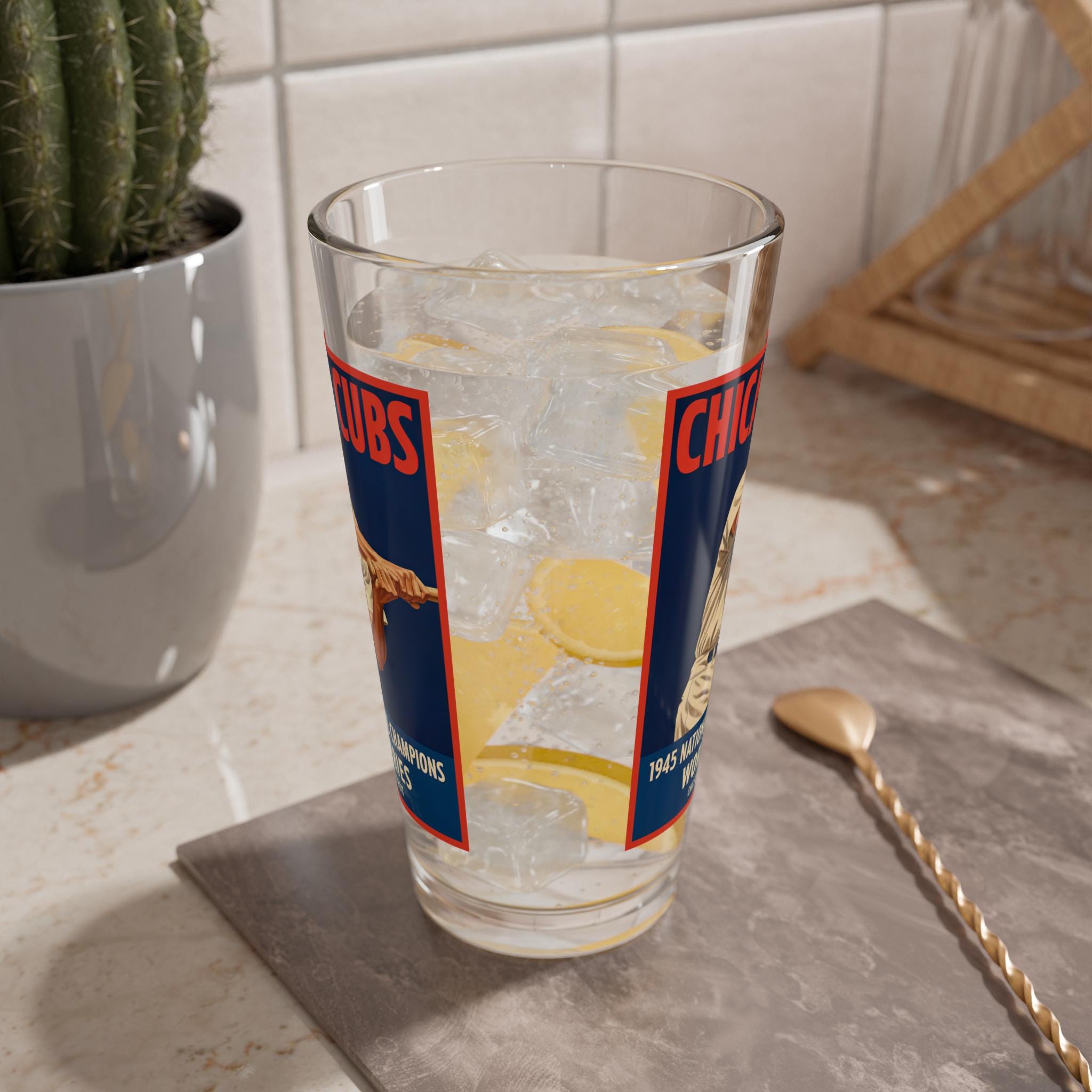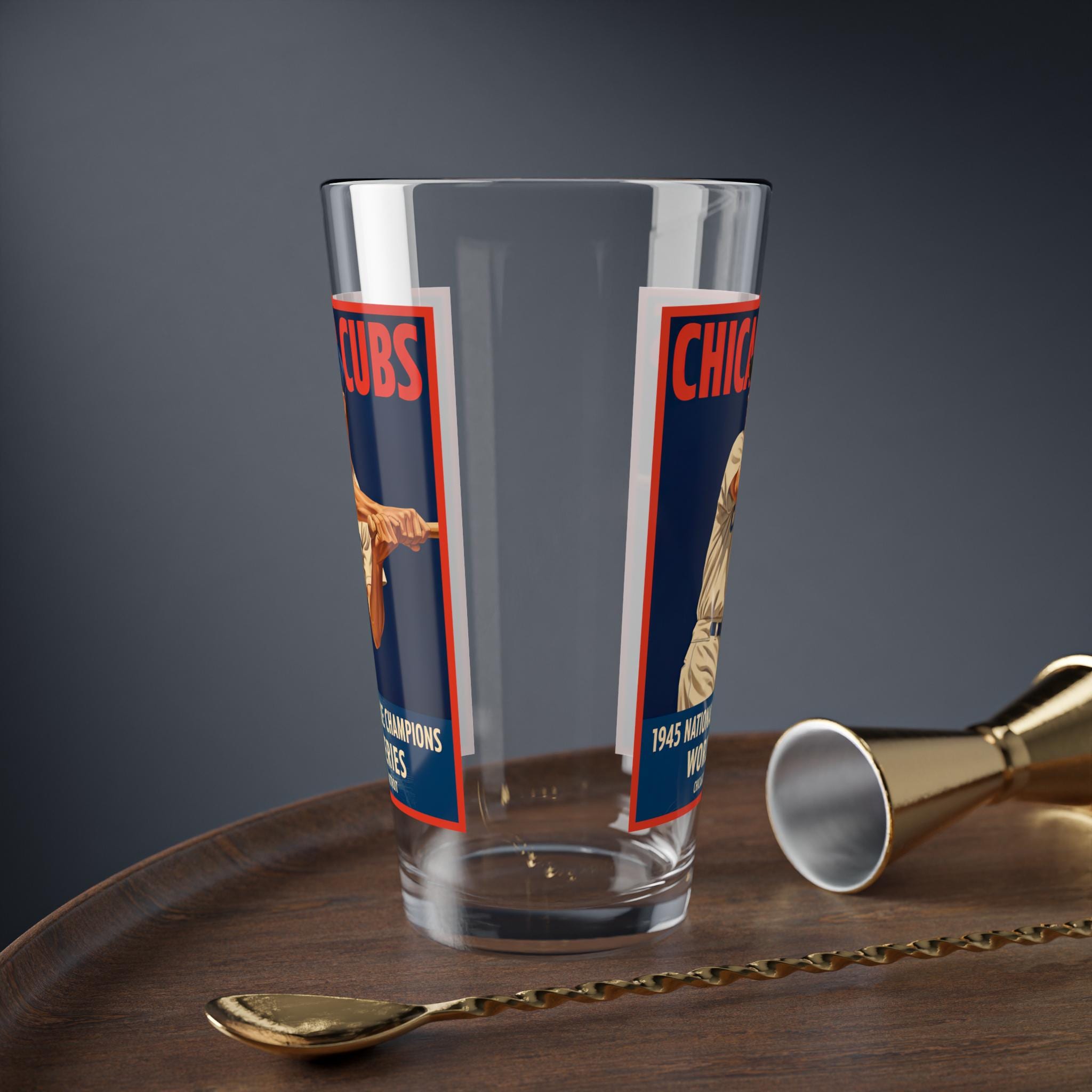 Raise a glass to summer nights at the ballpark and the crack of a bat. This 16oz mixing glass wears a bold, retro 1945 Chicago Cubs National League Champions design that settles right into a shelf of sports memorabilia or a home bar. It feels weighty and honest in your hand — the heavy solid base keeps it steady while you stir or shake a cocktail. Use it to mix a classic highball, measure spirits for a vintage-era cocktail, or drink straight from it while you replay the game in your head. The bright, archival-style print captures the team’s championship spirit without feeling fussy. It’s for people who collect stories as much as souvenirs: fans who remember afternoons at Wrigley, those building a bar cart with personality, and anyone who likes their glassware with history and heft.
