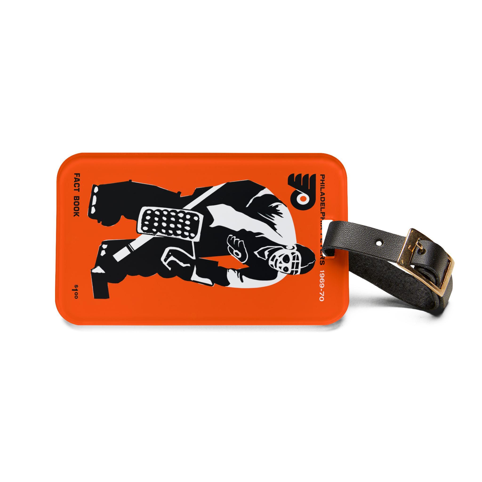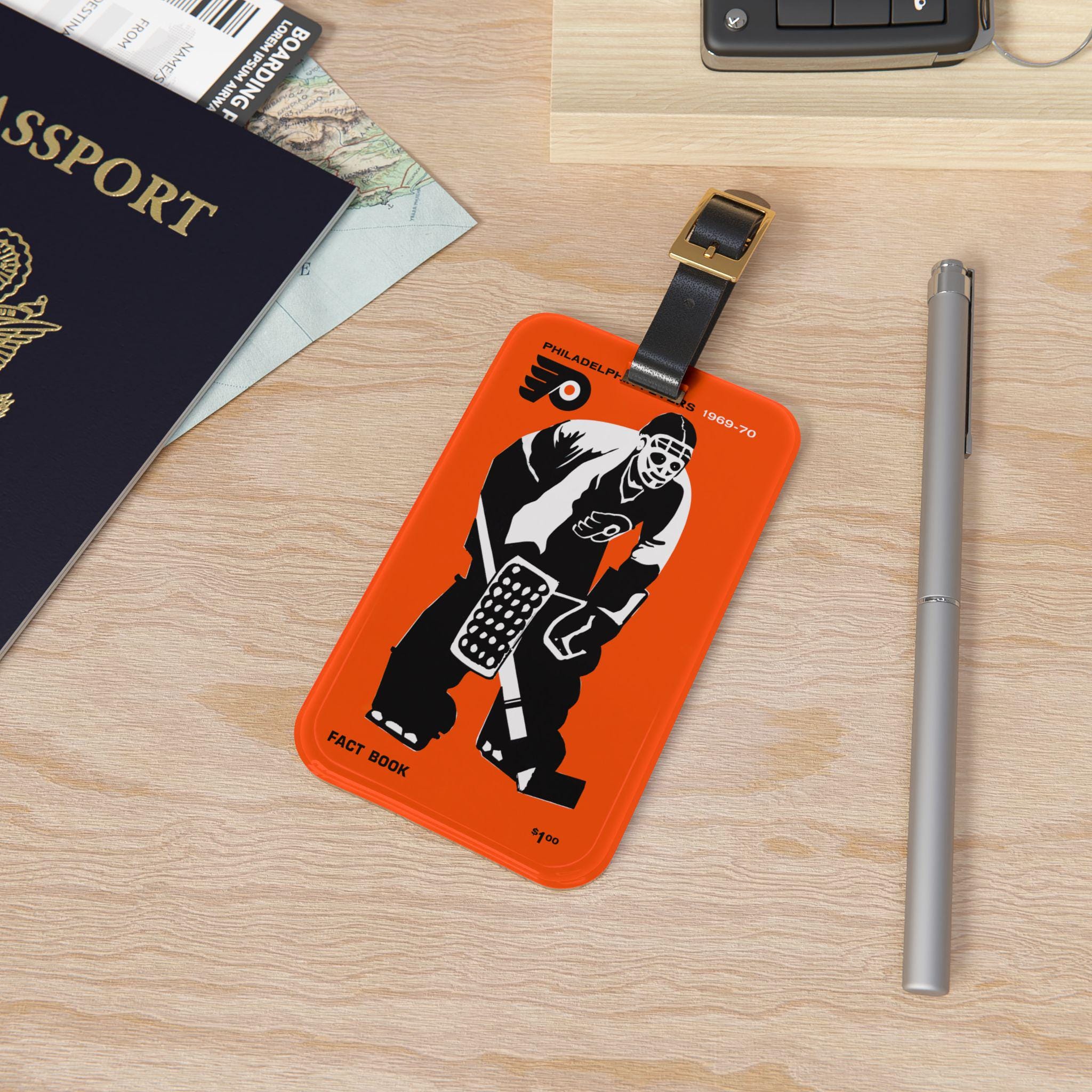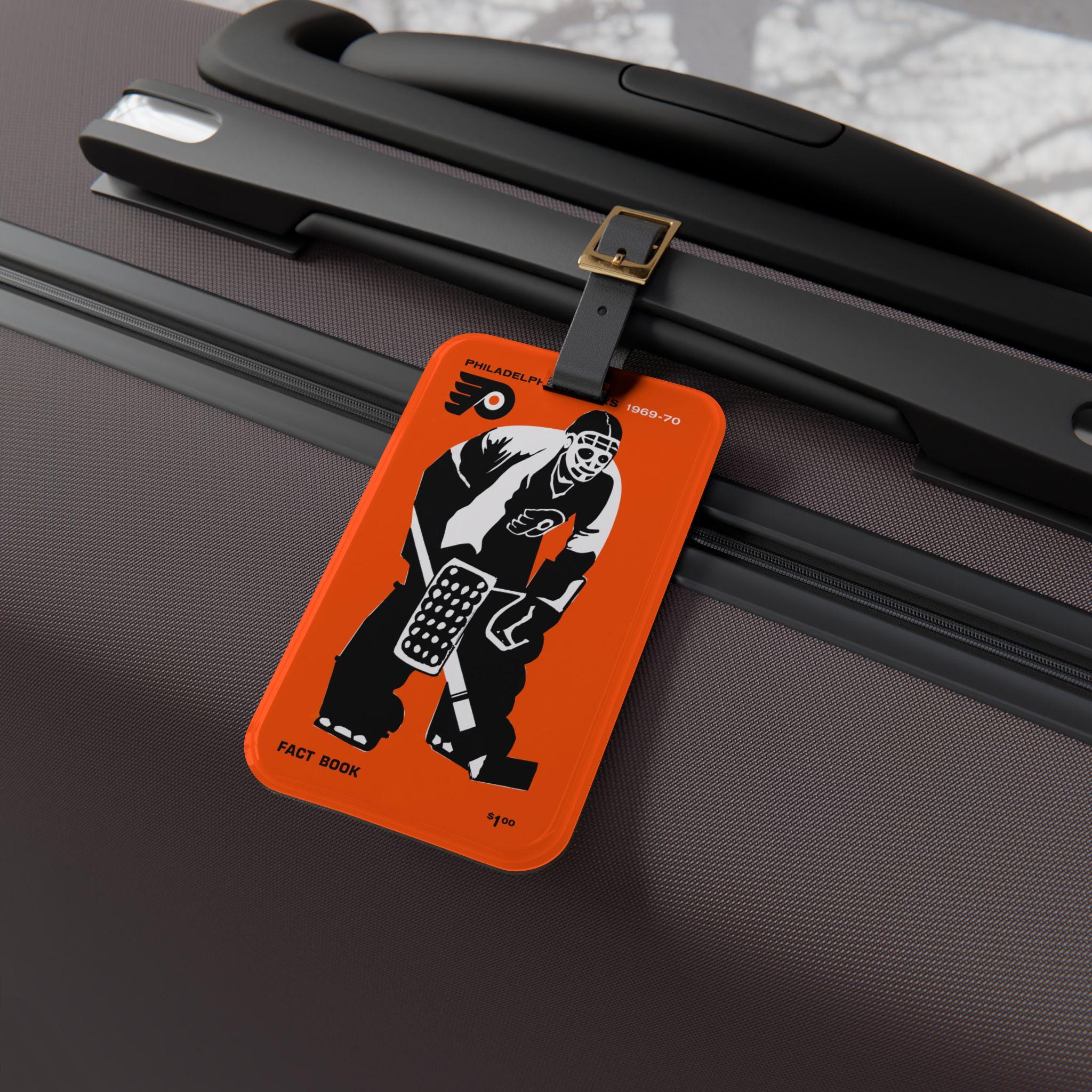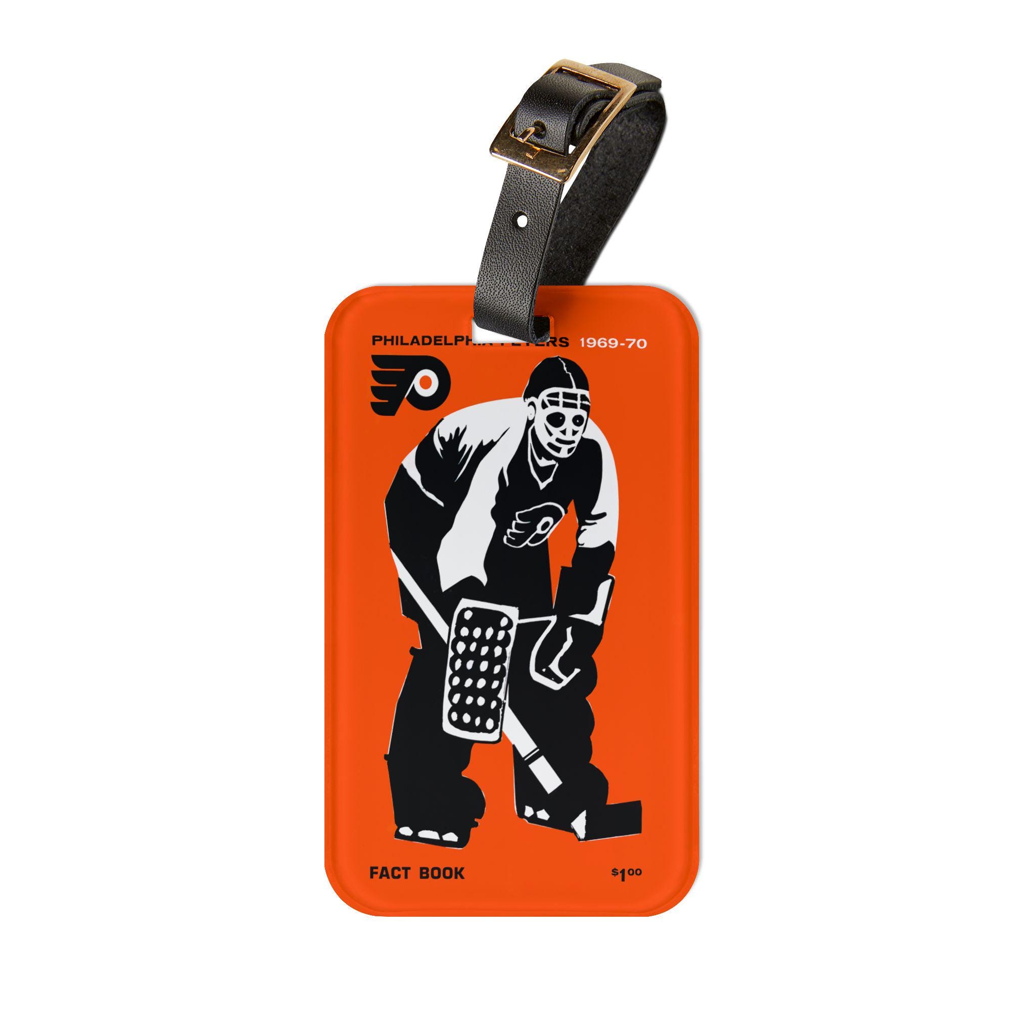 A rugged luggage tag that channels the grit and glory of late 1960s Philadelphia hockey. The bold 1969–1970 hockey motif—vintage typography and team-season energy—sits on a glossy acrylic face that resists scuffs and keeps colors bright. Attach the adjustable black leather strap to the zipper, handle, or roller; tuck your info into the rear card pocket and let the tag do the talking as you travel to rinks, road trips, or weekend getaways. It feels sturdy in your hand and looks like it belongs on travel bags owned by people who care about hockey history and real, lived-in style.