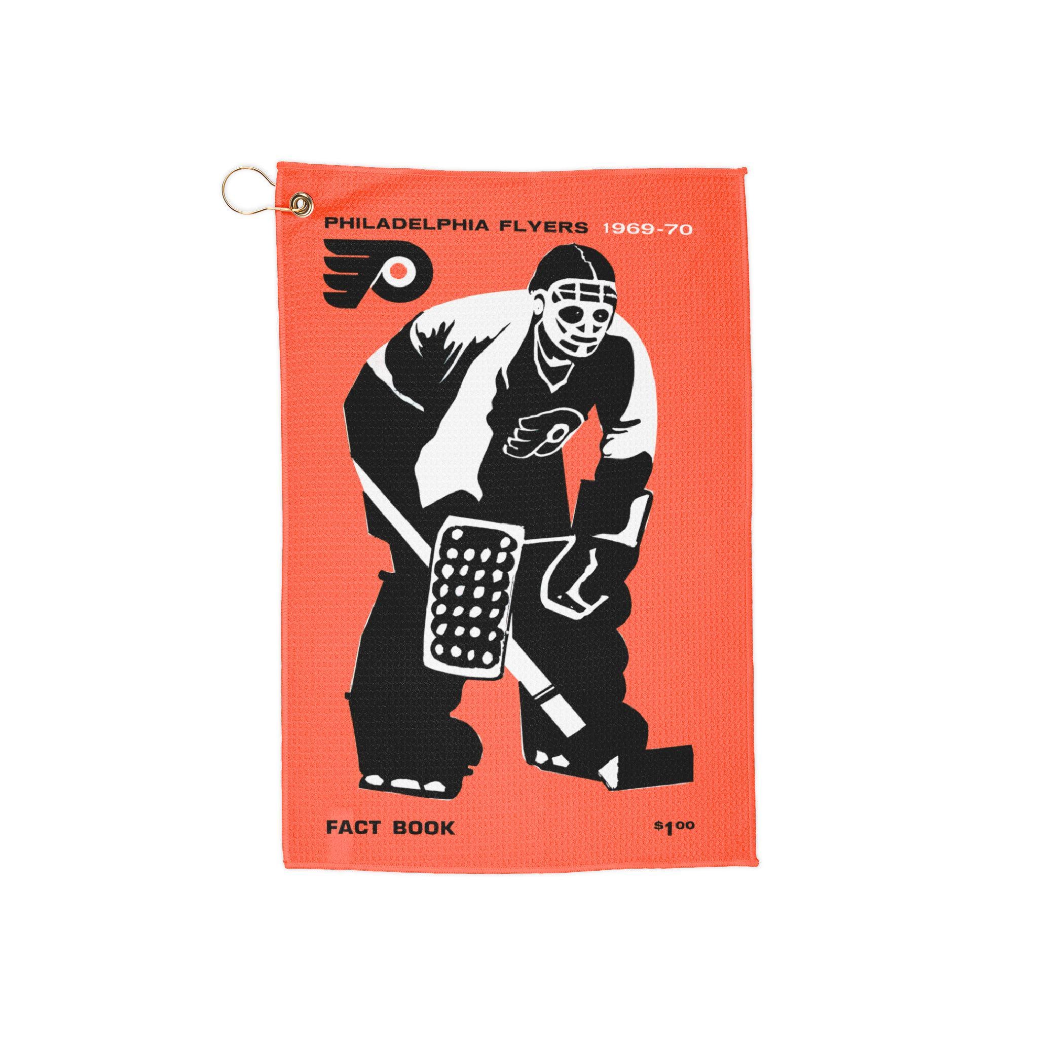These golf towels carry a vintage athletic spirit — a nod to Philadelphia hockey from the 1969–1970 era that feels lived-in and proud. Lightweight but substantial, the microfiber weave soaks up sweat and dew between holes, then dries fast as you move on. The gold grommet and ring hang securely from your bag, showing off the bold retro print on one side. Bring a piece of old-school rink grit to the course, the driving range, or your weekend rounds — it slips into your routine, wipes off the day, and keeps that Philly hockey vibe close at hand.
