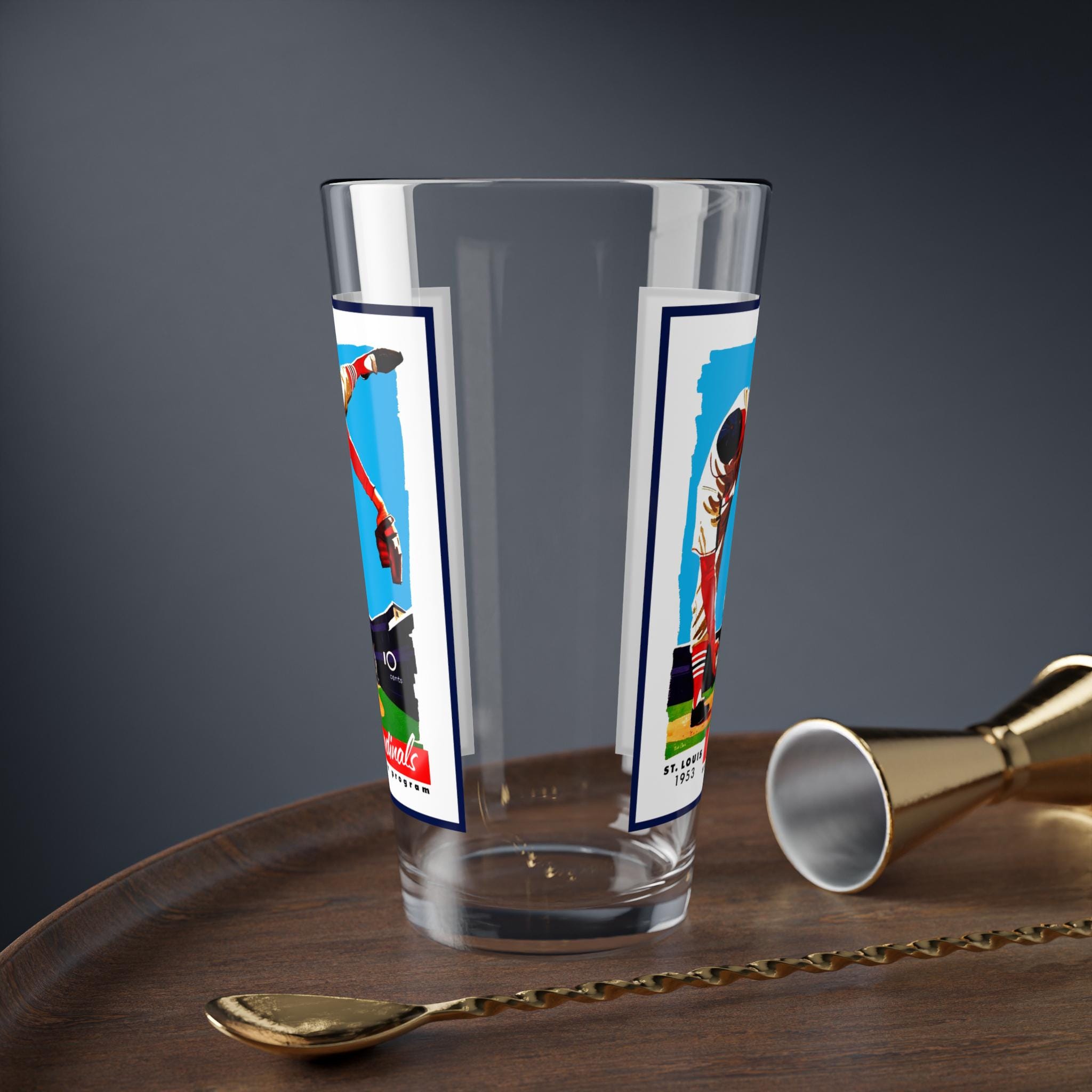 Wear history into your nightly ritual. This 16oz mixing glass bears a bold 1953 St. Louis baseball motif — the kind of vintage stamp that sparks conversations over the rim. It feels weighty in the hand, the heavy solid glass base steadying the twist of a bartenders wrist or the pour of a slow cocktail. Clear, durable glass keeps the printed design vivid, so each drink looks as intentional as the team loyalty behind it. Use it to stir and build classics at the home bar, sip an after-game beer, or set it out on game days when friends arrive. The bright print and sturdy construction make it a practical piece for fans who like their memorabilia useful and built to last.