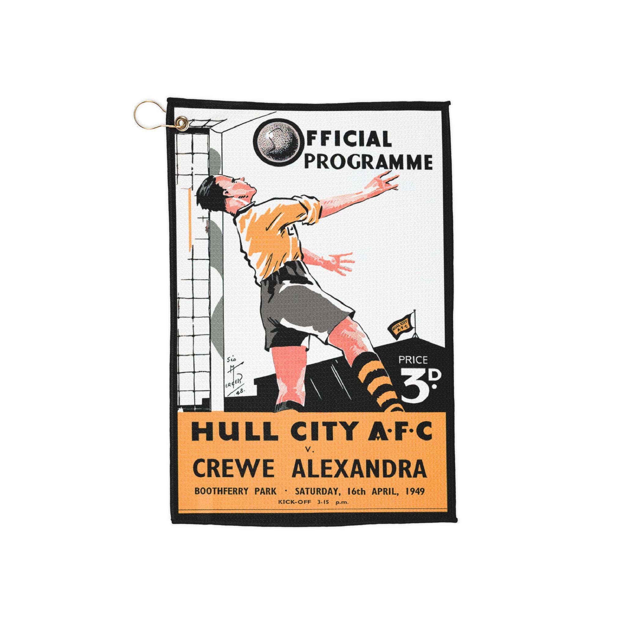 This golf towel brings a slice of sporting history to your bag. The Hull City AFC 1949 design is bold yet understated — a nod to vintage English football that settles easily into the rhythm of a round. Soft microfiber wipes down clubs and hands without scratching, and the gold grommet and ring let it hang from your cart or carry it on your bag where it’s always within reach. It drinks up moisture quickly after a rain-soaked hole or a sweaty practice session. Light and compact, it tucks into pockets and travel kits, ready for rounds, training sessions, or a weekend away chasing matches and memories.