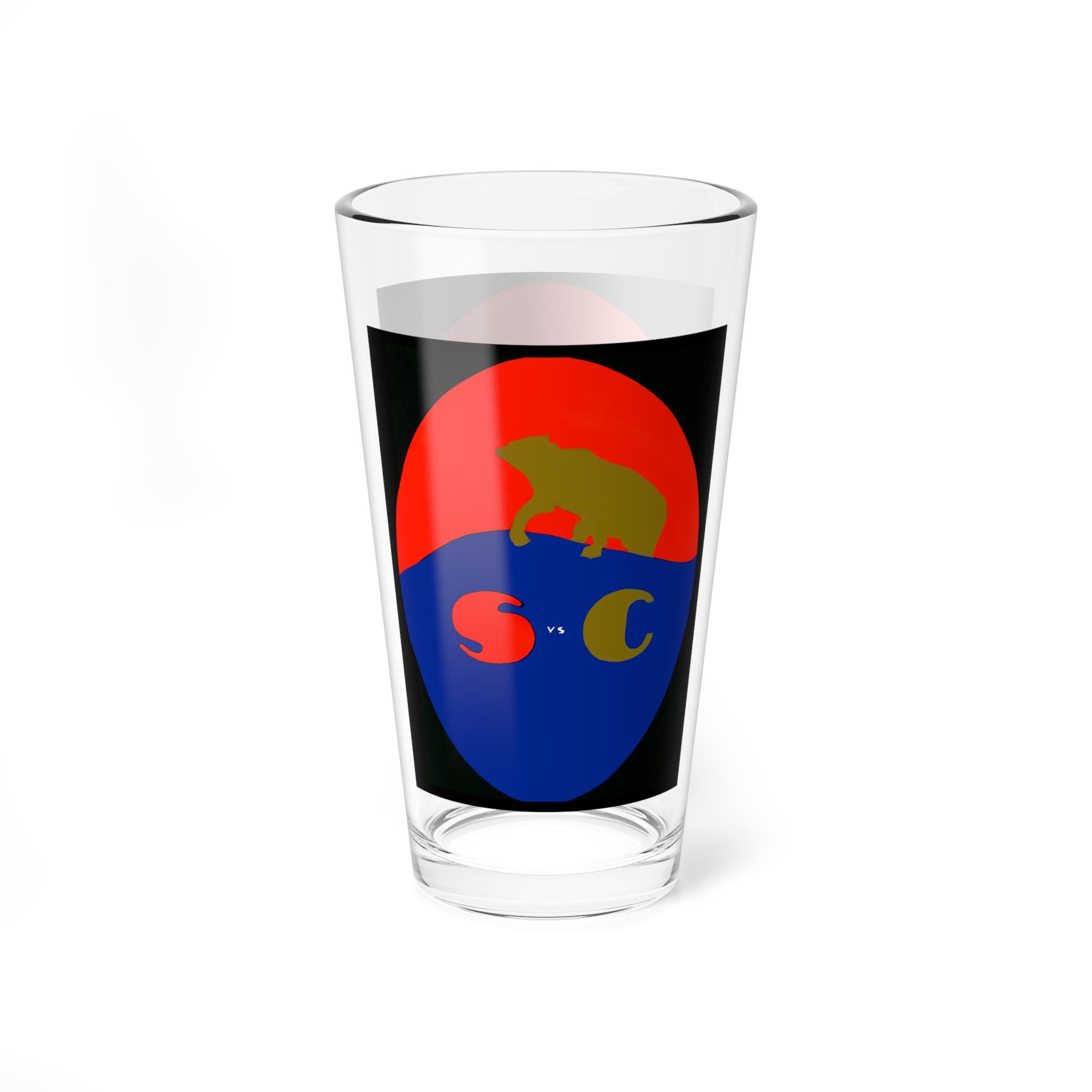 This 16oz mixing glass channels the grit and glory of 1920s college football with a clean, Stanford-Cal scoreline design. It feels like a slice of game-day history in your hands — the thick, heavy base gives it weight and stability while the clear glass lets the vintage typography and team names stand out. Use it as your go-to shaker for crafted cocktails or as an everyday drinking glass when you want something sturdy and characterful on the table. It settles into the rhythm of pre-game rituals, backyard watch parties, or late-night cocktail experiments, bringing a simple, nostalgic mood to each pour.
