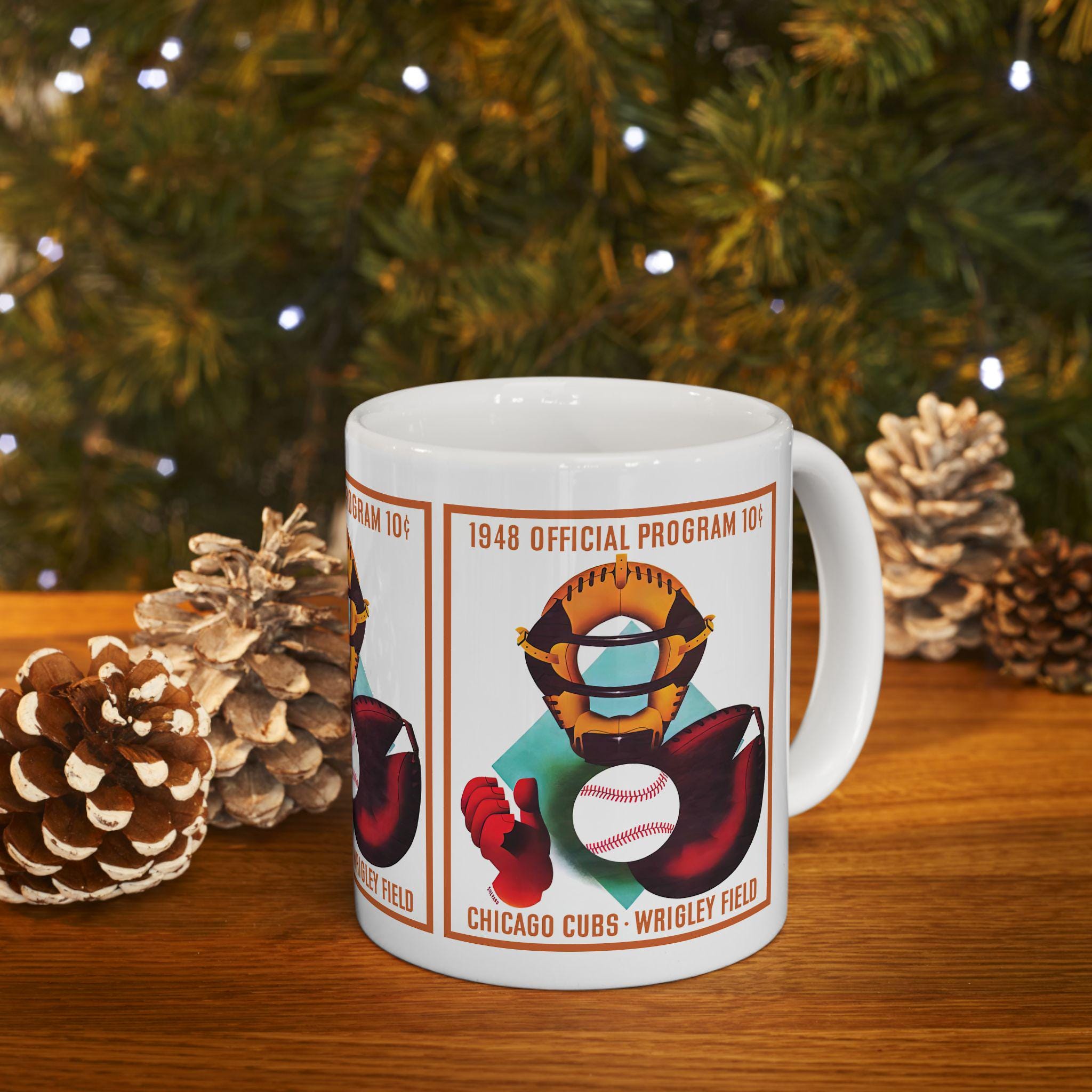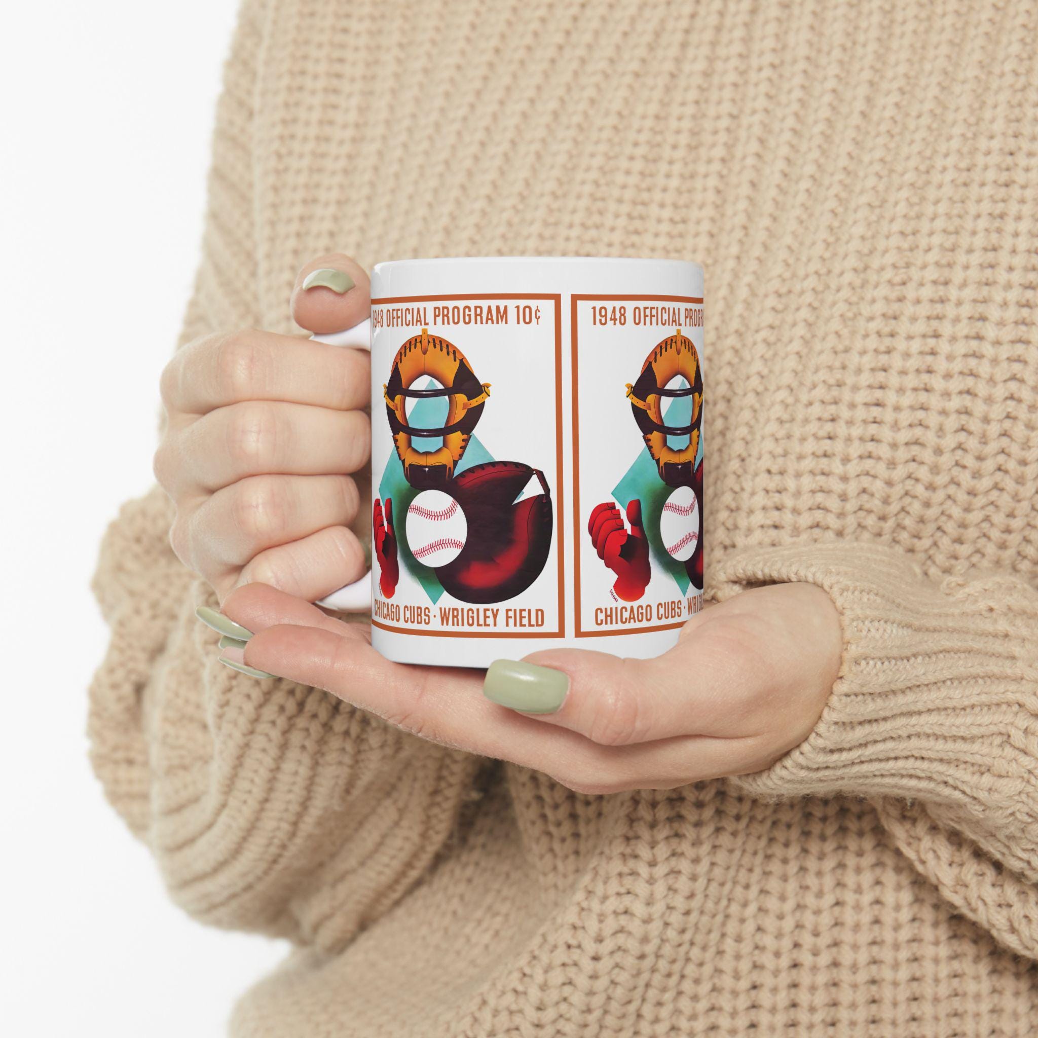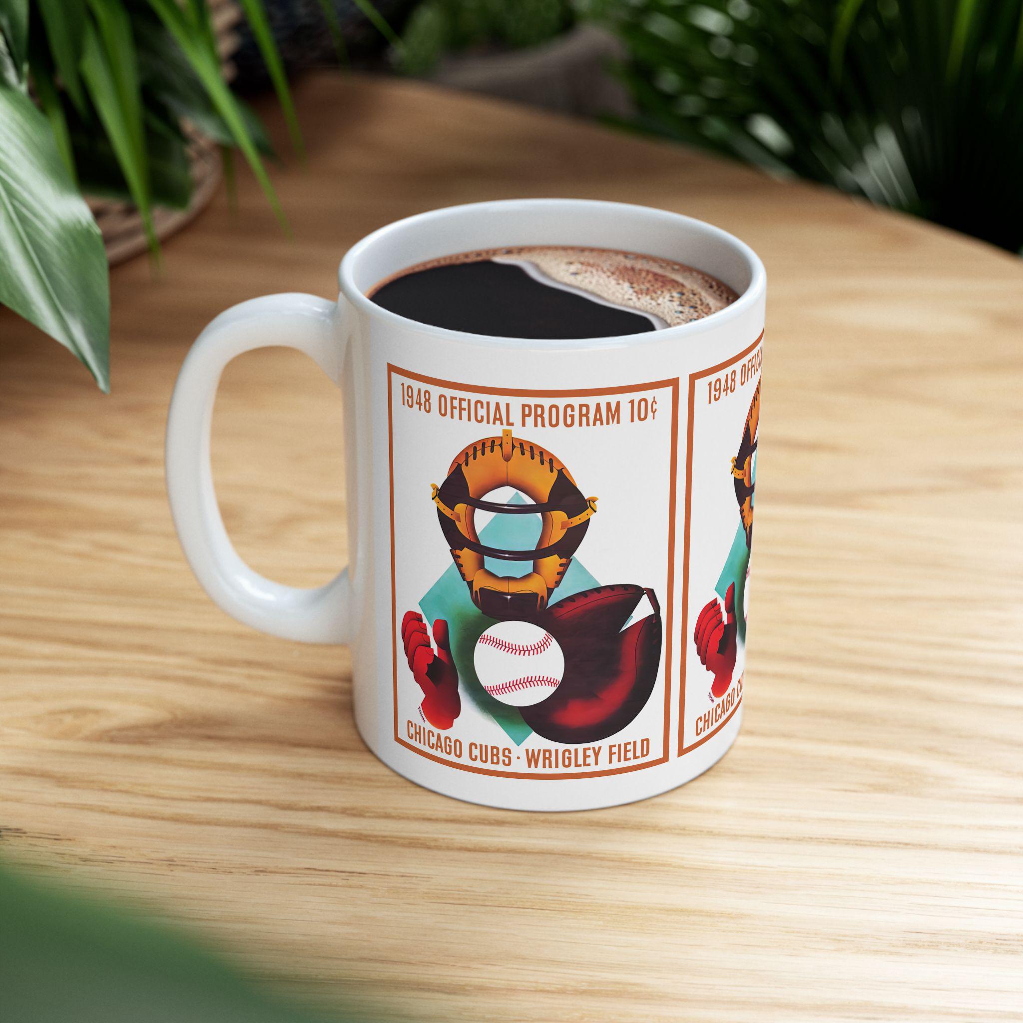 Carry a bit of 1948 Chicago baseball lore into your morning routine. This glossy ceramic mug wears a vintage-inspired “1948 Baseball Chicago” design that feels like a dugout memory—sandy infield dust, the crack of a wooden bat, and the quiet focus before the first pitch. It’s a warm, tactile reminder of long summer games and neighborhood teams, fitting naturally into the hands of anyone who keeps score, collects retro sports pieces, or starts their day with a dose of nostalgia. Use it during weekend scoreboards, while planning a trip to a classic ballpark, or as part of a shelf of collected memorabilia—the design speaks to people who love baseball’s history and the small rituals around it.