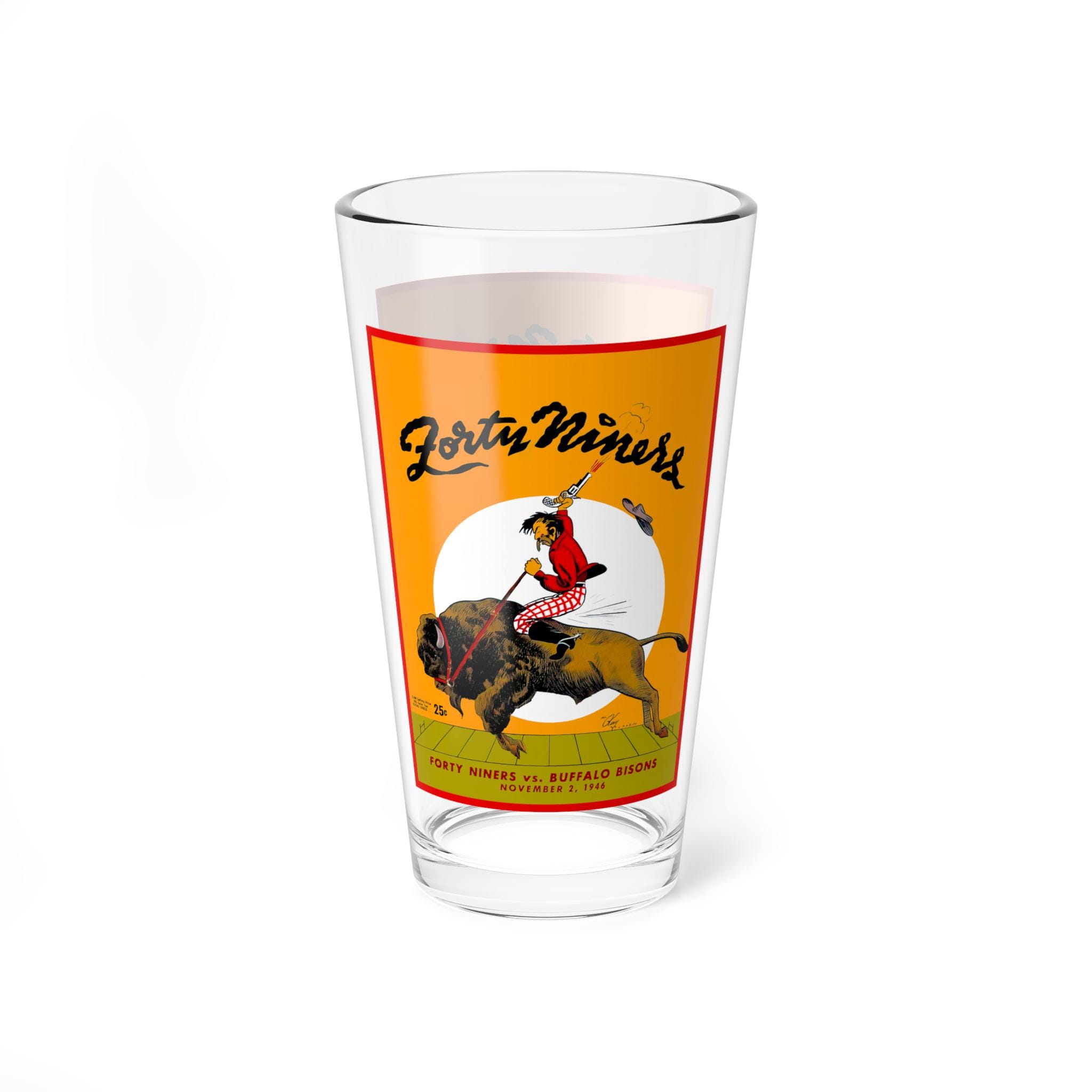 This solid 16oz mixing glass channels mid-century football nostalgia with a bold 1946 San Francisco vs. Buffalo motif. Heavy, clear glass feels steady in your hand; the thick base keeps the glass planted while you stir, muddle, or pour. The bright, durable print holds up through regular use and is dishwasher-safe, so the historic graphic stays crisp after many game-day gatherings. Use it at the bar cart when you’re crafting a stirred cocktail, or set it out on the coffee table while you replay old-season highlights with friends. It sits comfortably among sports memorabilia and retro barware, a practical piece that also sparks conversation about classic football history.