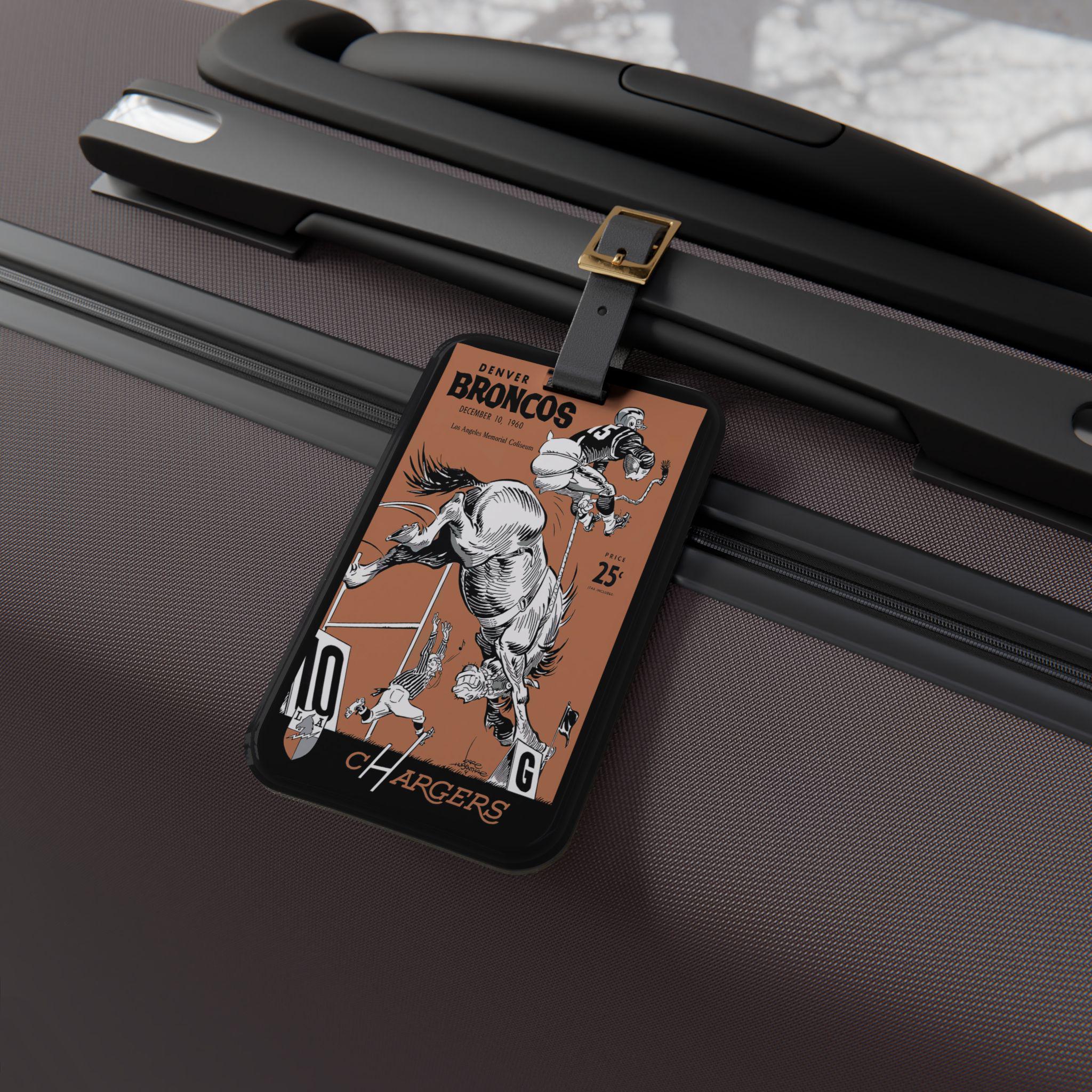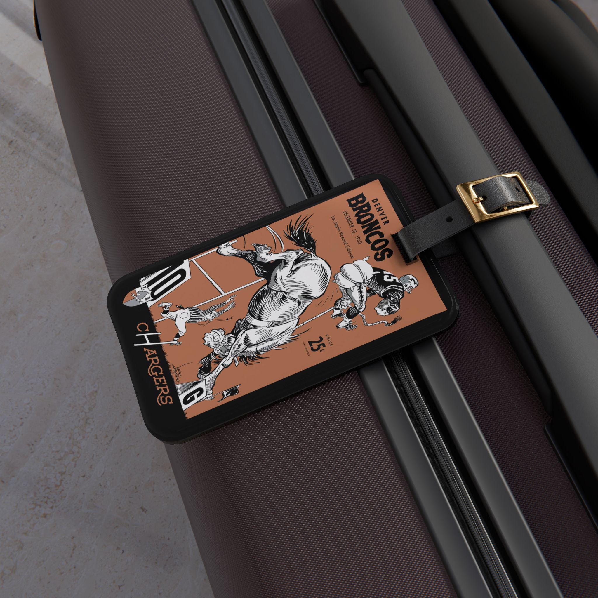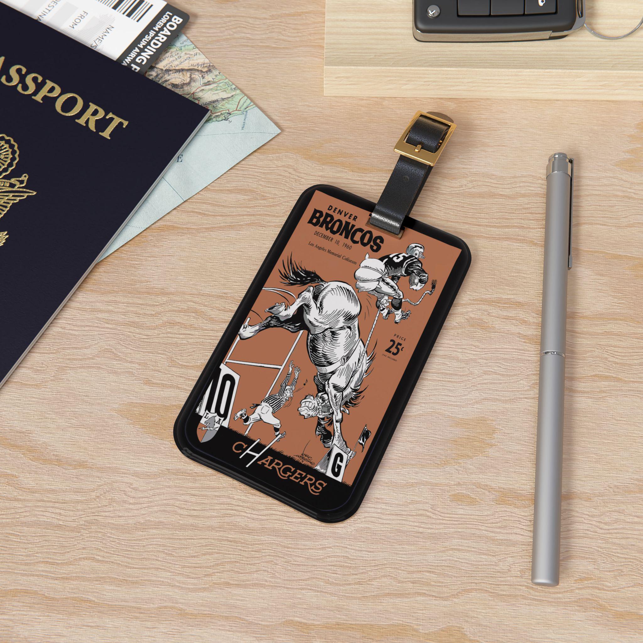 Carry a slice of vintage gridiron with you wherever you travel. This compact acrylic luggage tag channels the grit and pageantry of a 1960s Broncos vs. Chargers matchup — bold team colors, a retro play-day energy, and a worn-in sports poster vibe. Slide it onto your bag and it reads like a small storyteller: road trips to away games, airport layovers between tailgates, or weekend journeys to reconnect with old teammates. The glossy front keeps the retro print bright, the leather strap stays secure through conveyor belts and bus racks, and the rear card pocket keeps your contact details tucked away but accessible. It’s for the fan who loves historical matchups, collectible ephemera, and the kind of travel that starts with cheers and ends with stories.