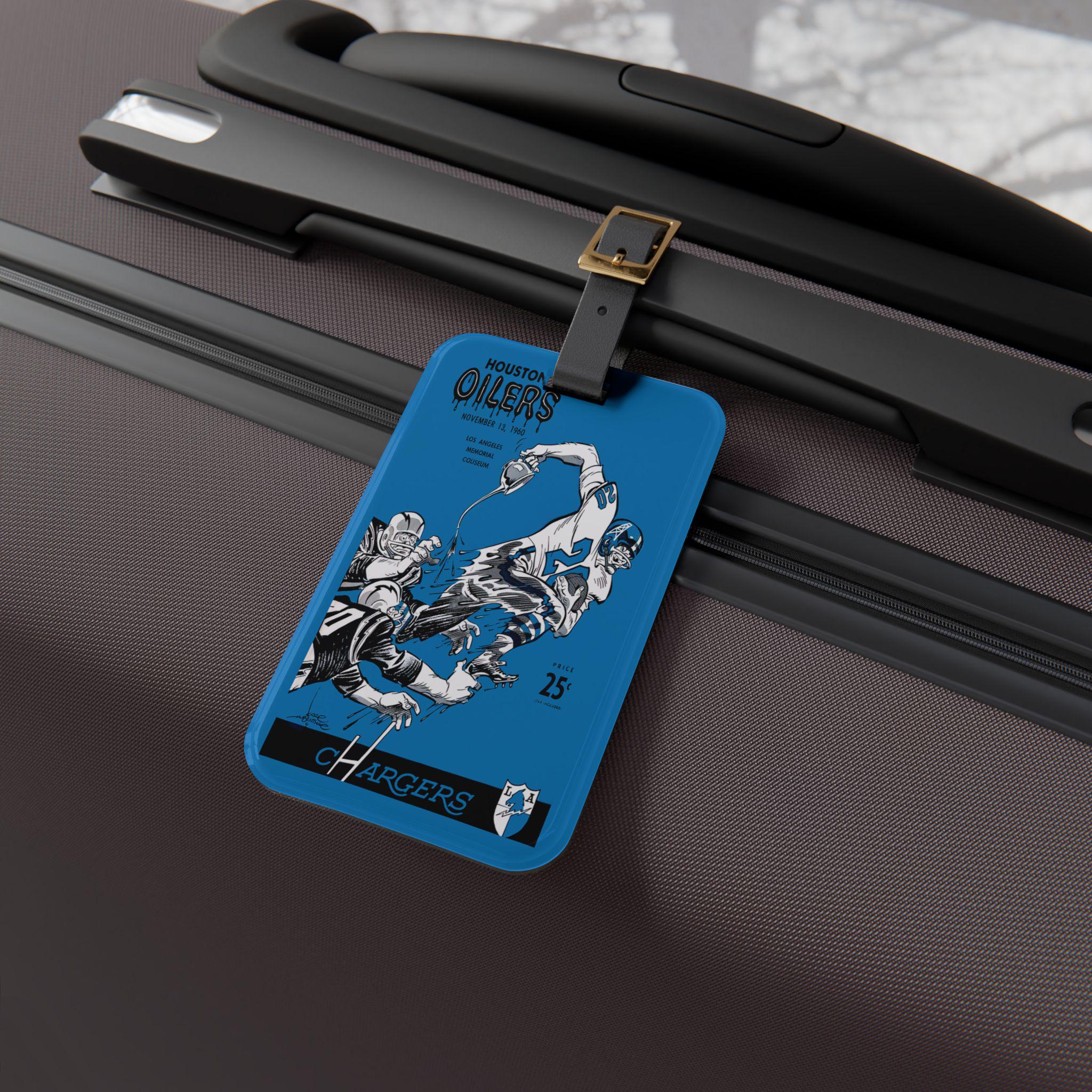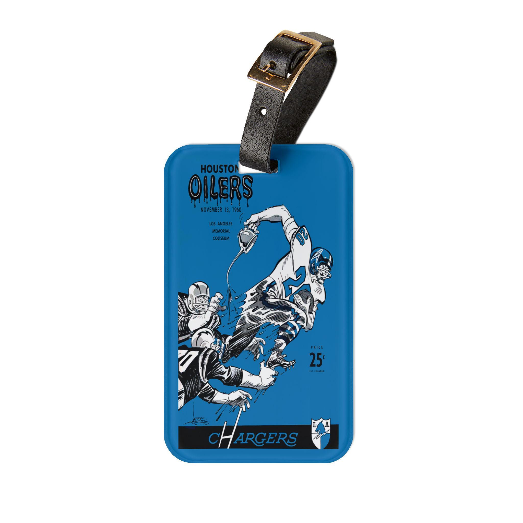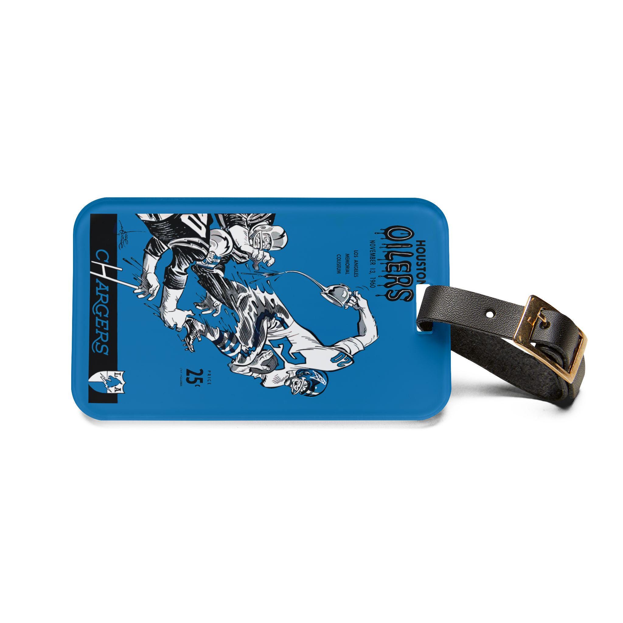 Carry a slice of vintage football history on your bag. This luggage tag channels the grit and flair of a 1960 Chargers vs. Oilers matchup — weathered rivalry, bold team colors, and a retro scoreboard energy. Slip it onto a weekend duffel or commuter roller to add character and easy ID. The acrylic face holds the design sharp and glossy, while the leather strap feels broken-in and reliable. On the back, a hidden card pocket keeps your contact details tucked away but accessible. It’s the kind of small detail that nods to old-school fandom and starts conversations at baggage claim or on the train.